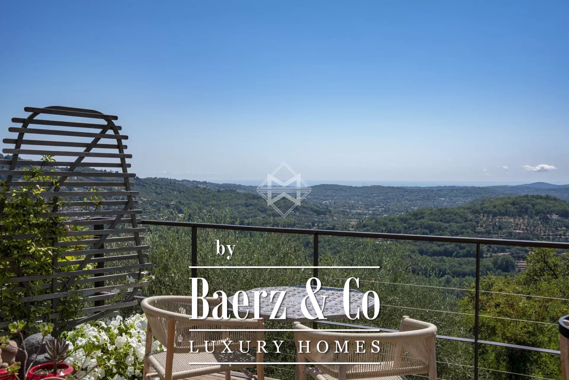 Set in an estate in a dominant position, this property offers you a breathtaking spectacle from the very first moment: a 180° panoramic view embracing the hills, with the Alpine peaks as a backdrop, and the changing reflections of the Mediterranean all around you. A living tableau, to be admired every day as a privilege. Quietly located just a few minutes from the village of Châteauneuf de Grasse and its amenities, this villa has been refurbished with refinement, blending contemporary elegance with Provencal charm. The saltwater swimming pool, heated for your comfort, stretches out into the light, bordered by a garden where every flower and plant has been thought of and designed with taste and passion. The terraced grounds, delicately planted with century-old olive, citrus and fig trees and