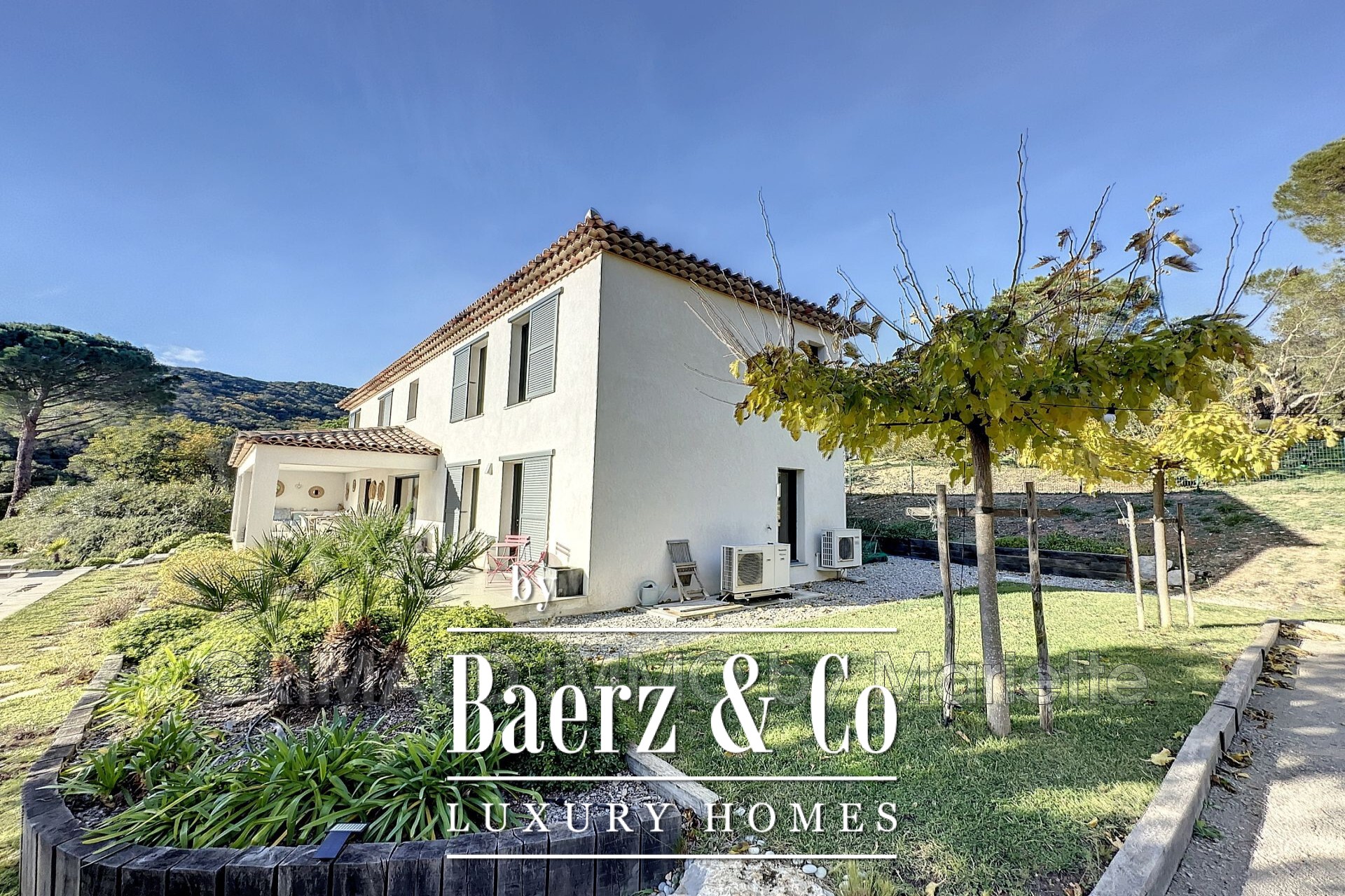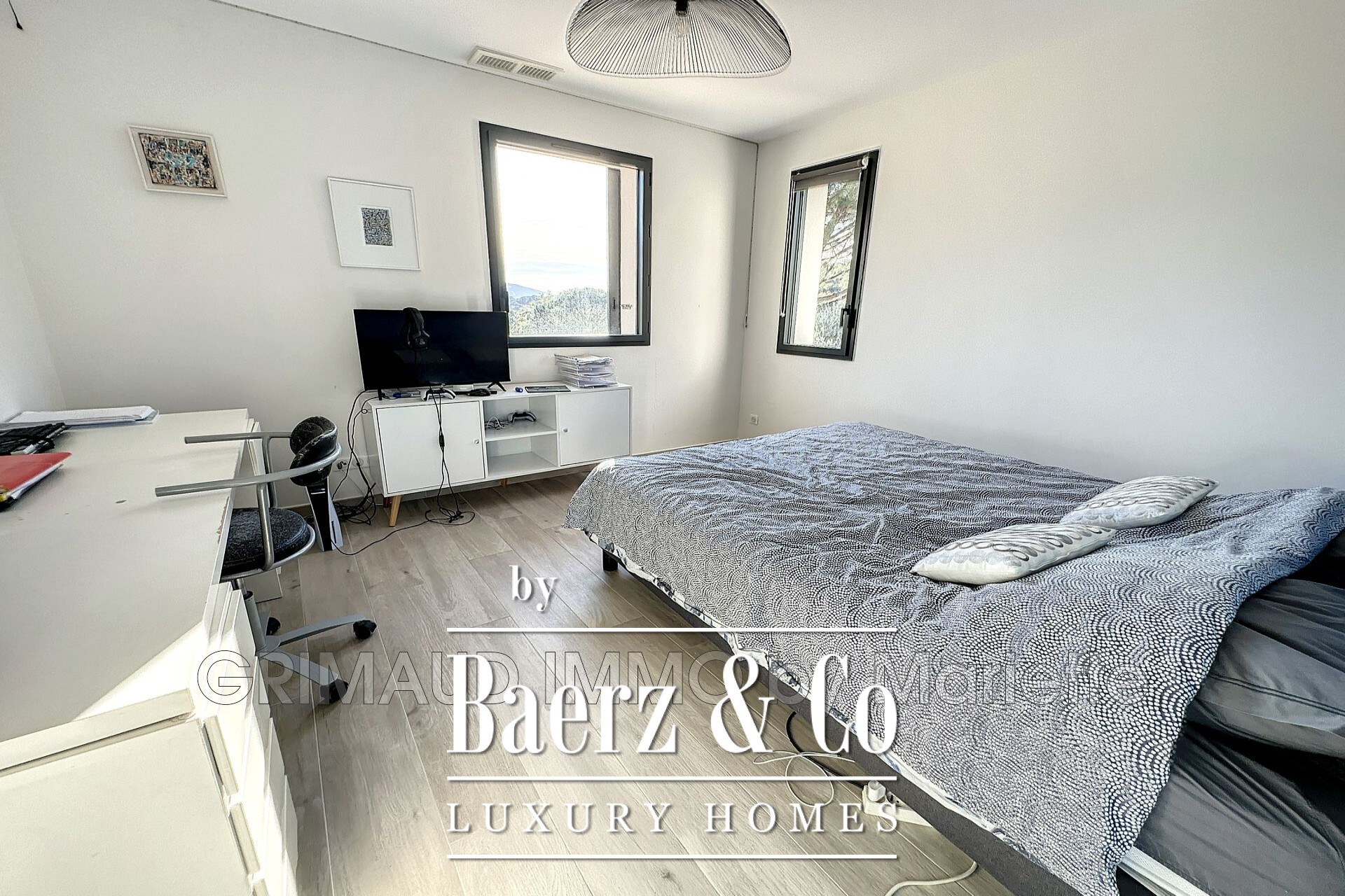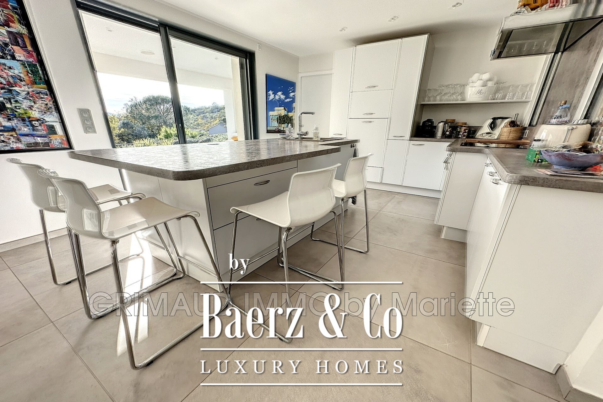 Villa Grimaud welcomes you to a life of refined calm, where contemporary design meets the enduring beauty of the French countryside. This villa Grimaud, built in 2018, is set on a level 2,500 m² plot, marrying privacy with effortless access to local amenities. Upon entering, a generous hallway leads to an inviting living space anchored by a fireplace, flowing to a dining area and a fully equipped kitchen enhanced by a practical pantry.