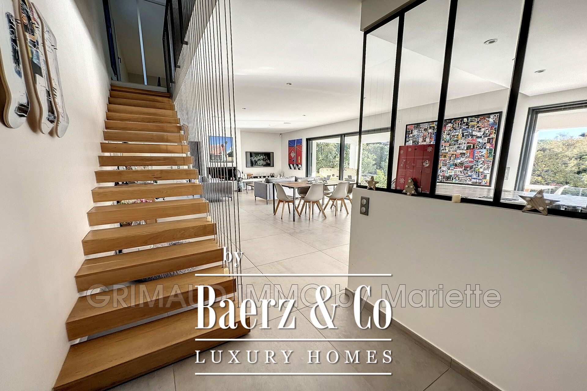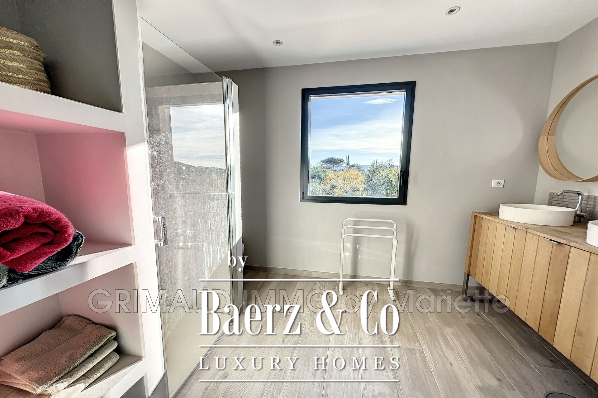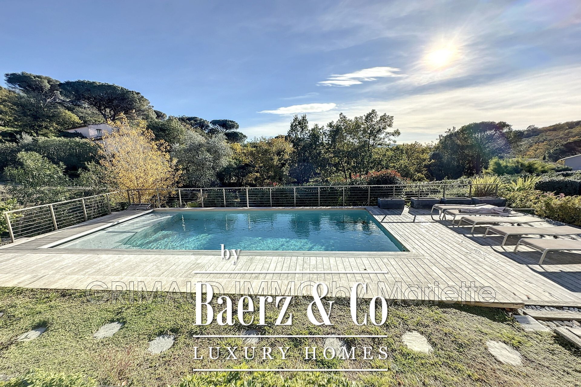 Outdoors, expansive landscaped grounds incorporate a heated pool, pétanque court, and a garage, balancing sociable spaces with serenity. This luxury villa for sale in Grimaud is a rare union of tranquility and modernity, offering 195 m² of living space where each feature supports a rhythm of relaxed, contemporary living.