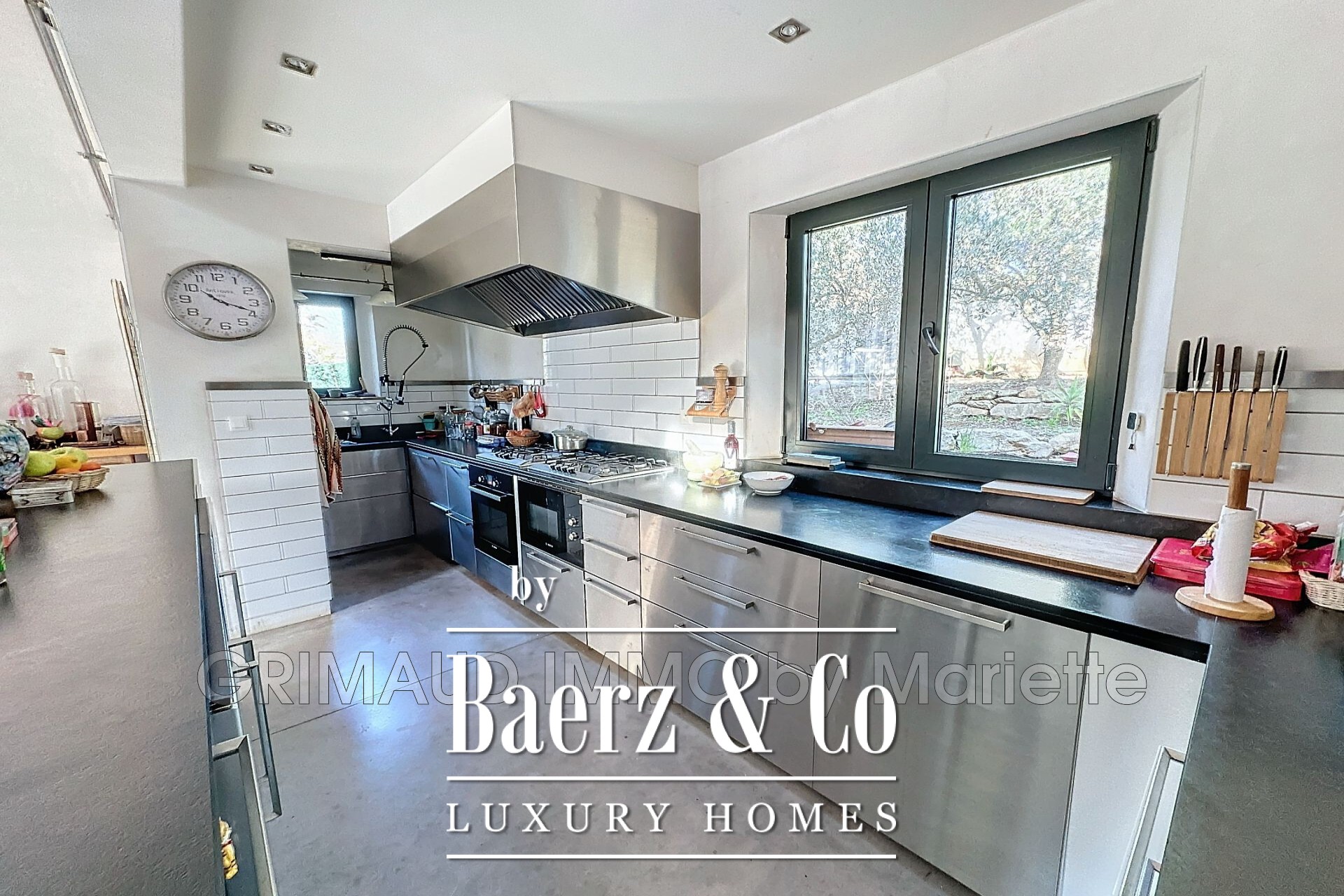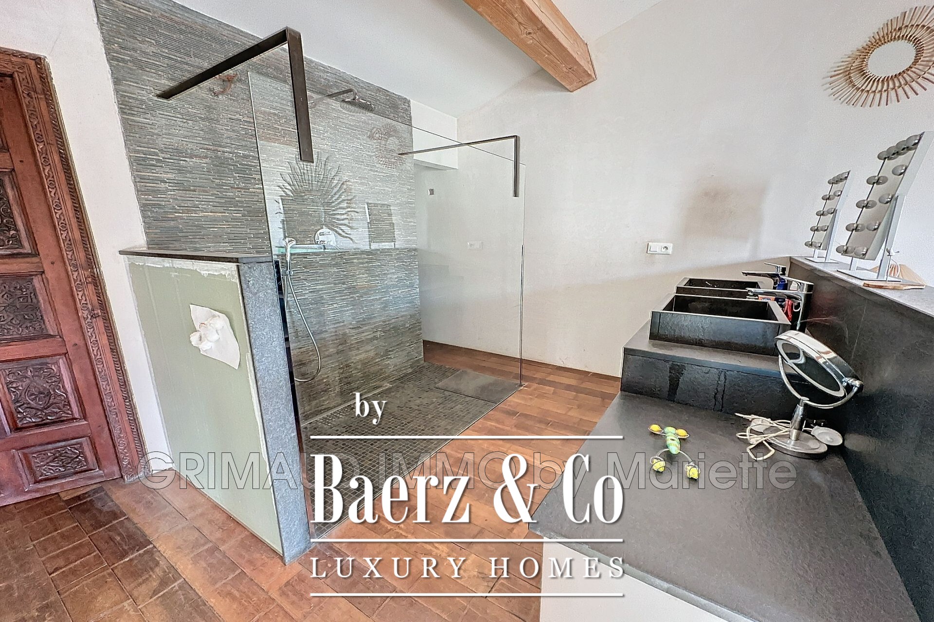 Designed for understated hospitality, four independent bedrooms with en suite bathrooms and an additional kitchen are separated from the main living area by two private entrances, allowing for guest accommodation or discreet holiday rentals. A large parking area, garage, and carport ensure convenience for owners and guests alike. There is scope for refinement through planned upgrades such as a 20x3 m swimming pool, veranda, and enhancements to heating and climate control. The property’s enduring appeal lies in its balance of seclusion and connectivity, with the spirit of Grimaud village always close at hand. This villa for sale in Grimaud is poised for both private enjoyment and flexible entertaining, framed by southern light and wooded tranquility.