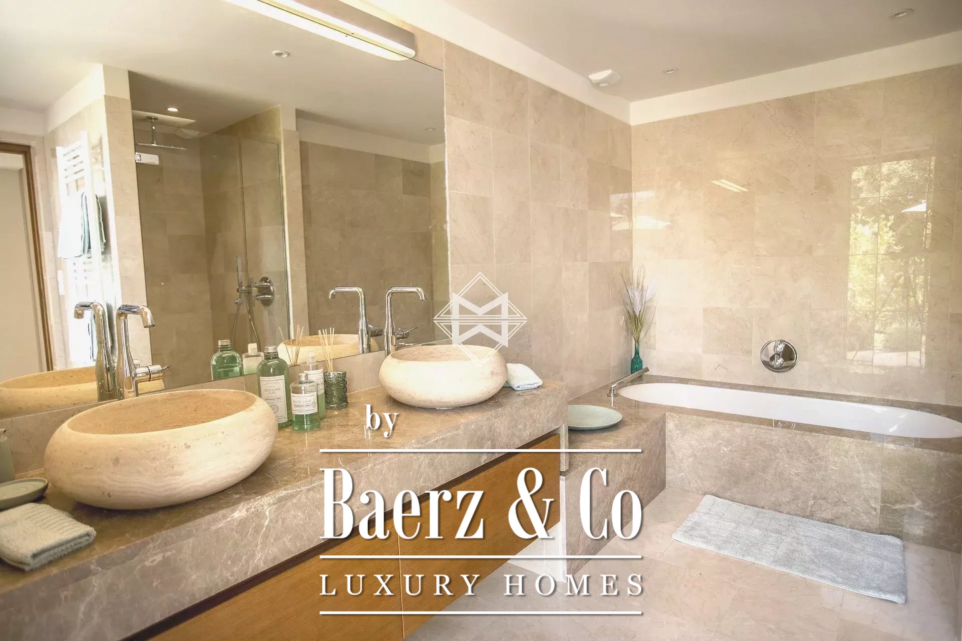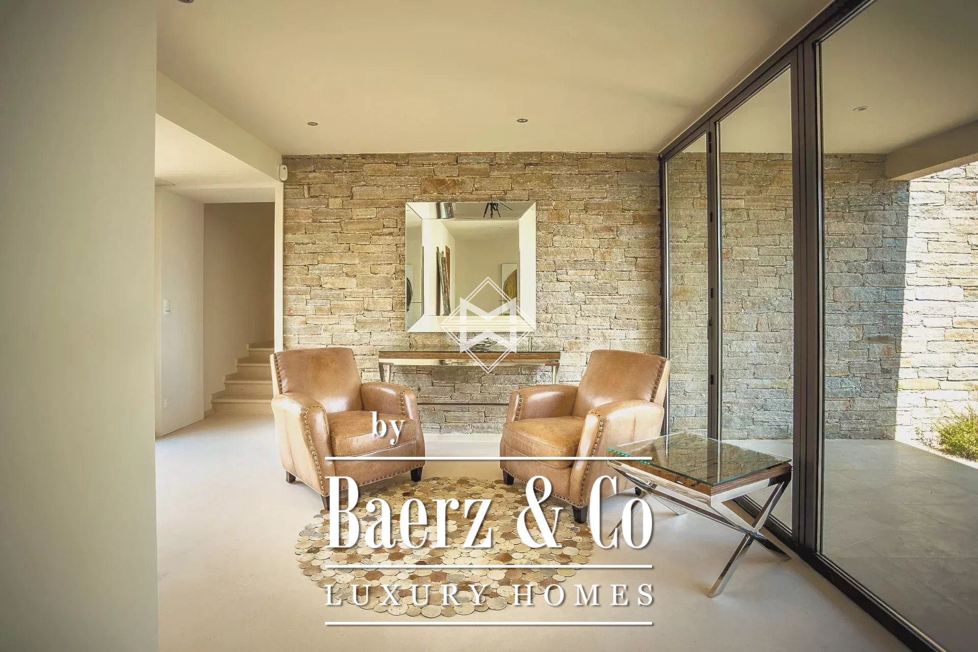 Security and privacy are assured by an alarm system, surveillance cameras, and electric gates. Moments from the Golf de Beauvallon, and with amenities such as a garage, parking, and outdoor lighting, this luxury villa for sale in Grimaud offers a balance of serene environment and discreet sophistication, appealing to those who value authentic quality and a deep connection to nature.