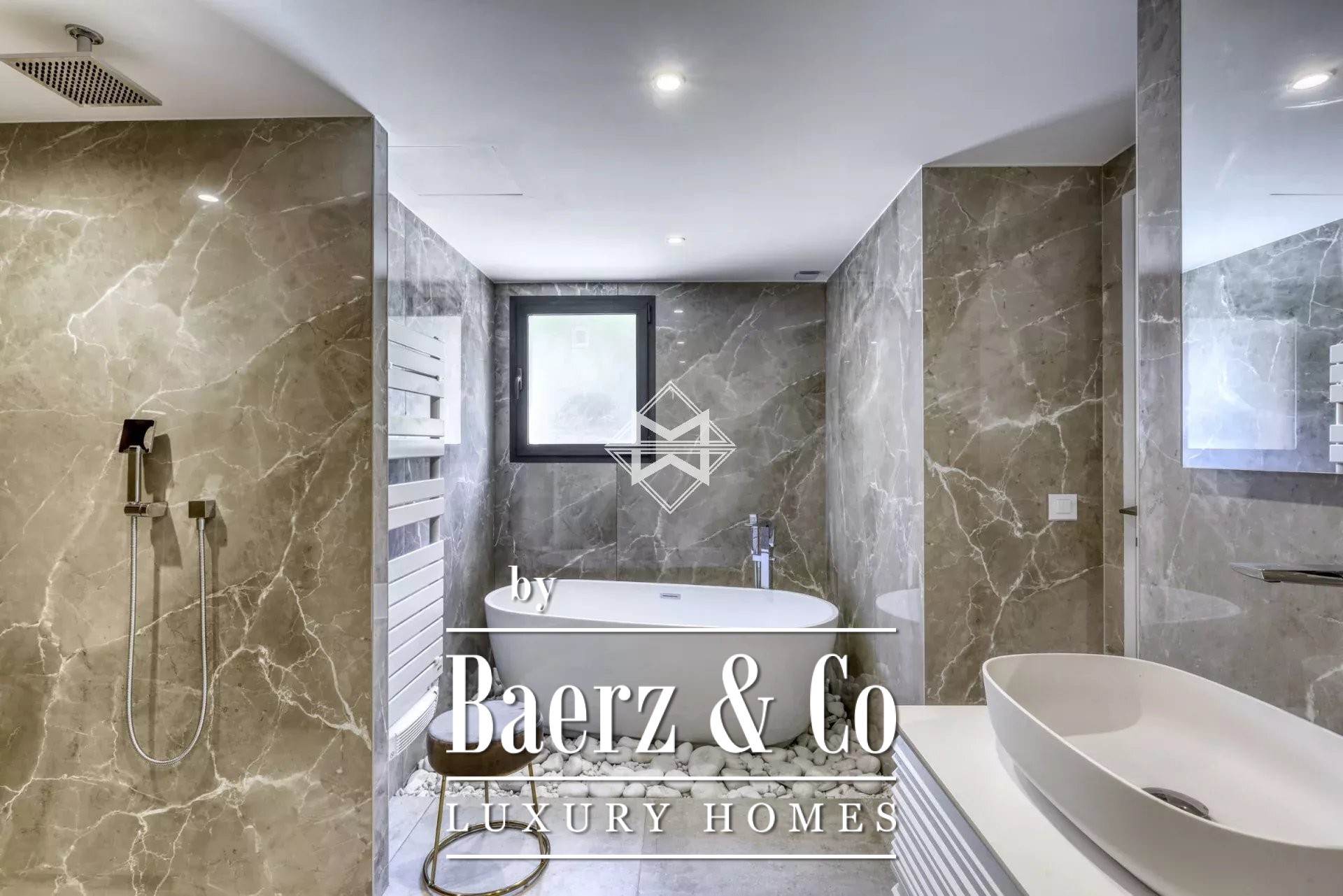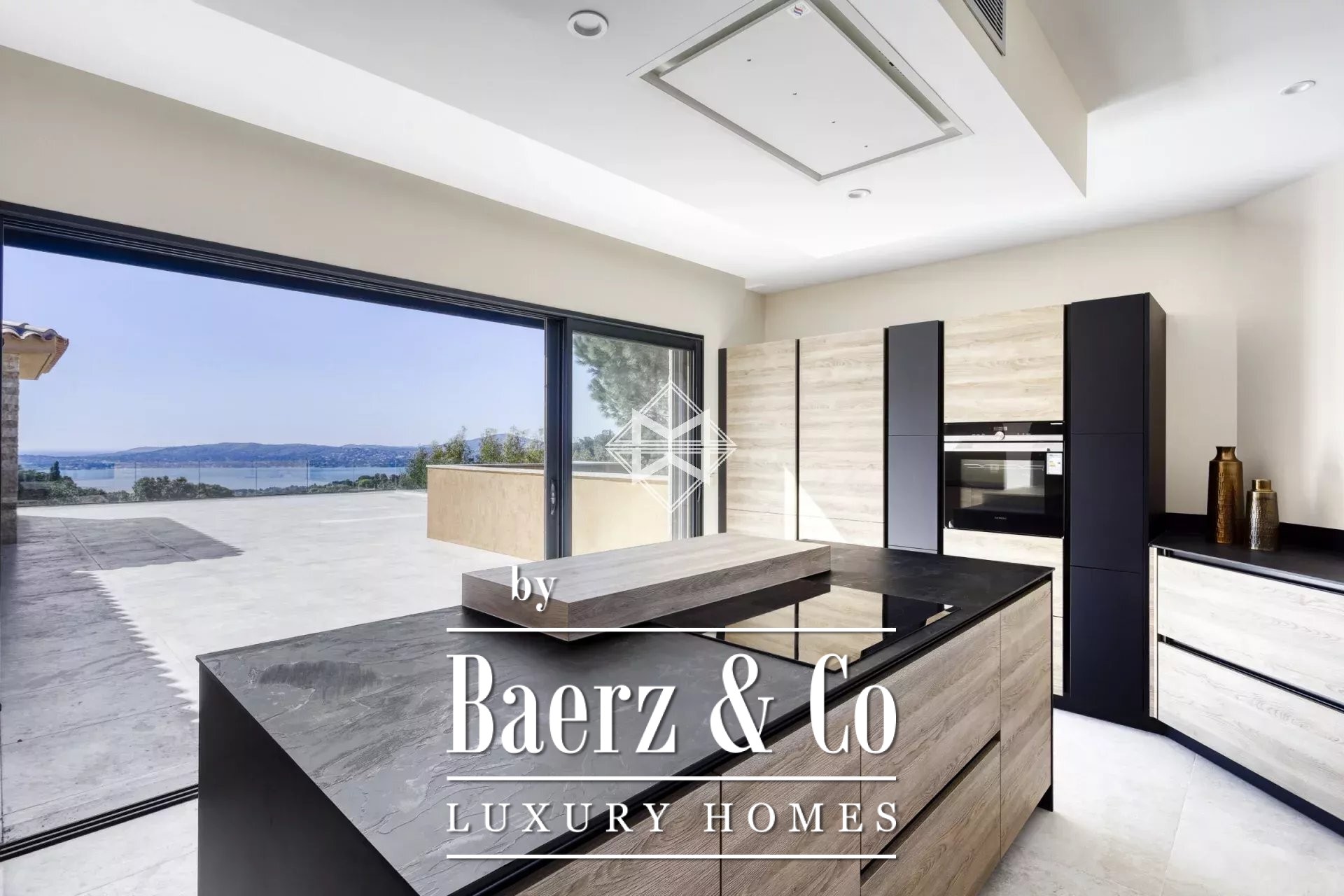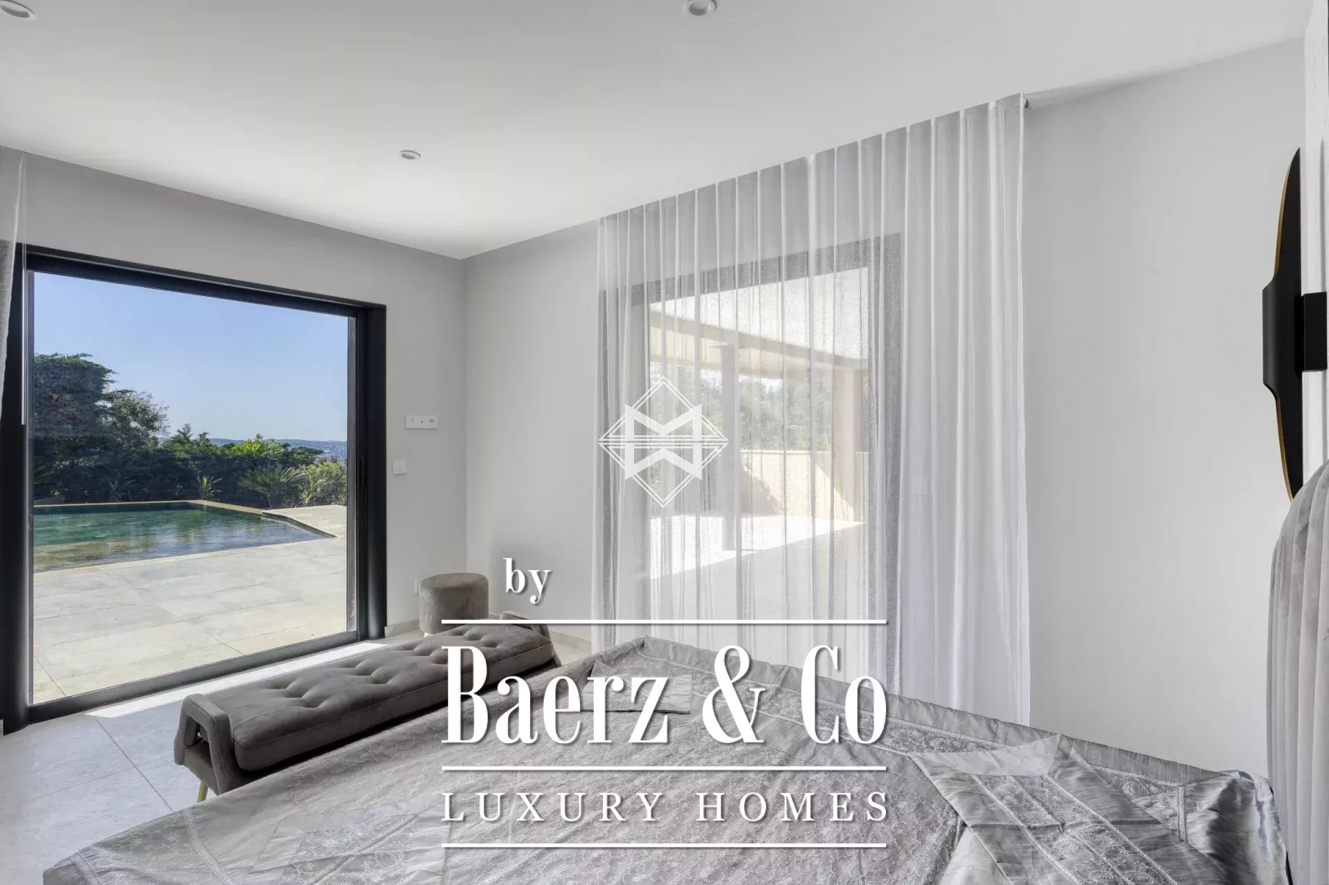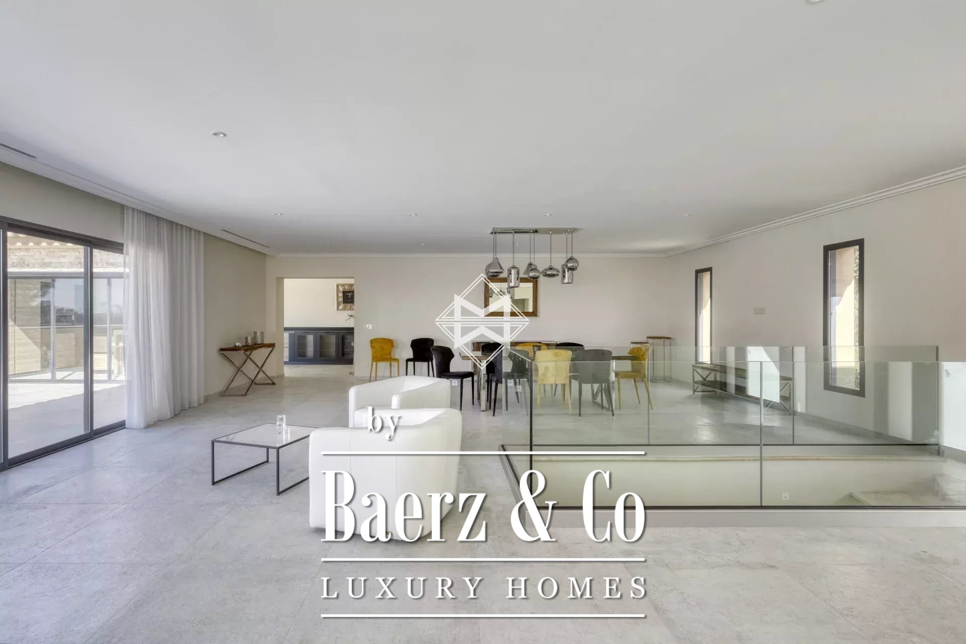 Villa Grimaud with panoramic sea view anchors itself within the secure Beauvallon Bartole domain, set high on the hills above the Gulf of Saint-Tropez. This thoroughly renovated property, completed in 2021, encompasses 352 m² of bright, contemporary interiors layered across two expansive levels. Large, open volumes define the living spaces, with five suite bedrooms and a separate apartment catering to both privacy and comfort.
