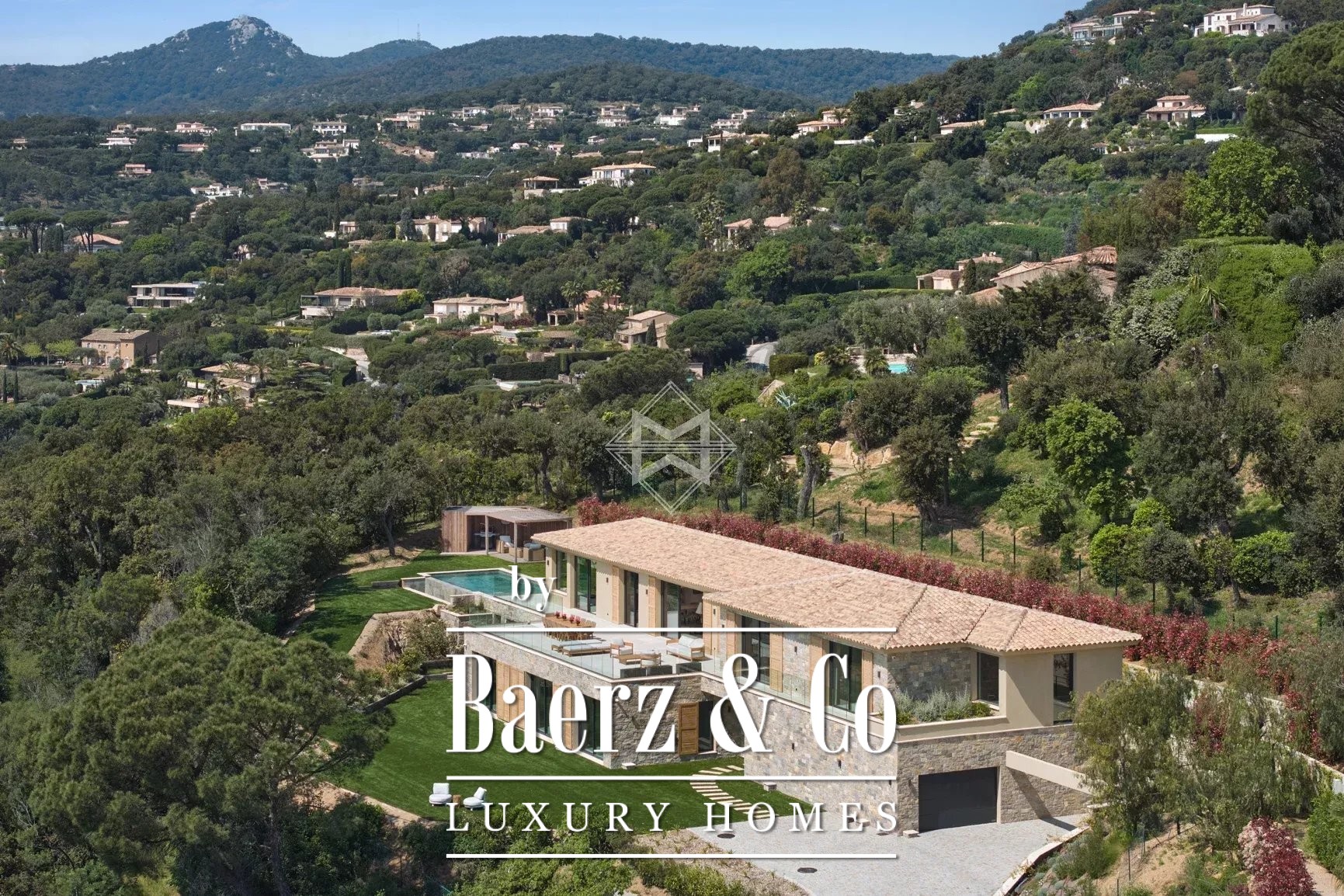 Nestled in one of the most sought-after residential areas of Grimaud, this contemporary villa boasts a breathtaking panoramic view over the sea and the Gulf of Saint-Tropez.