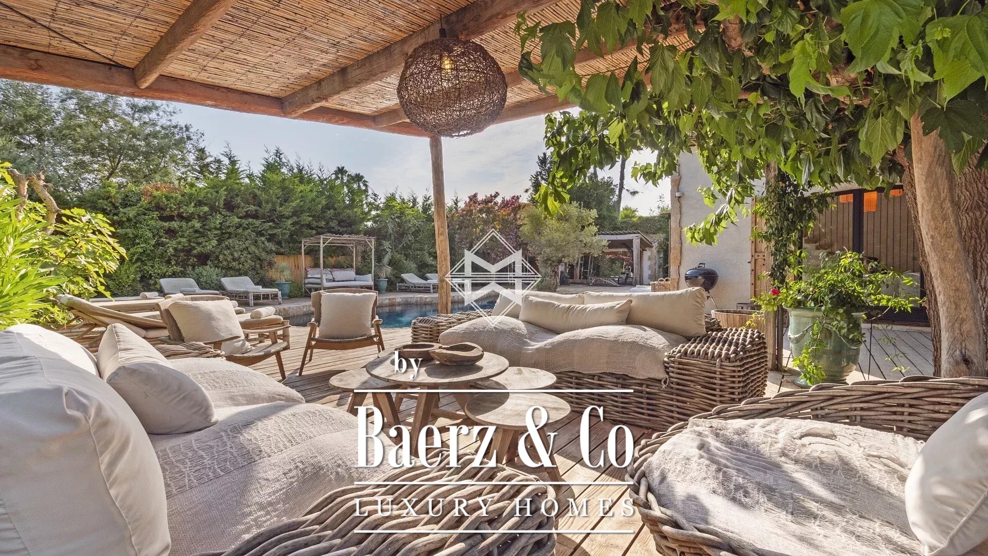 Located in a private estate in Grimaud, this stunning 241 m² villa is set on a lush 1886 m² plot, offering an idyllic setting for a holiday combining comfort and elegance.