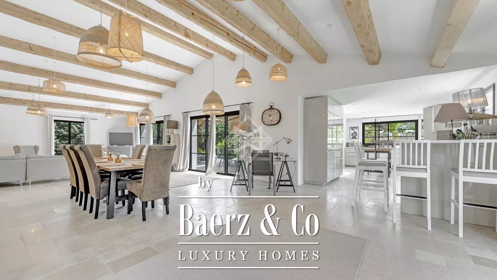 Nestled within a private and secure estate in Grimaud, just a 6-minute drive from the beaches, this stunning villa offers a dream setting for a holiday on the French Riviera. Designed to comfortably accommodate up to 12 guests, the house features 6 spacious bedrooms, each with its own en-suite bathroom, ensuring both comfort and privacy for everyone. The living areas include a cosy lounge dedicated to reading and relaxation, as well as a large, light-filled living room with a dining area and open-plan kitchen — ideal for sharing special moments with family or friends.