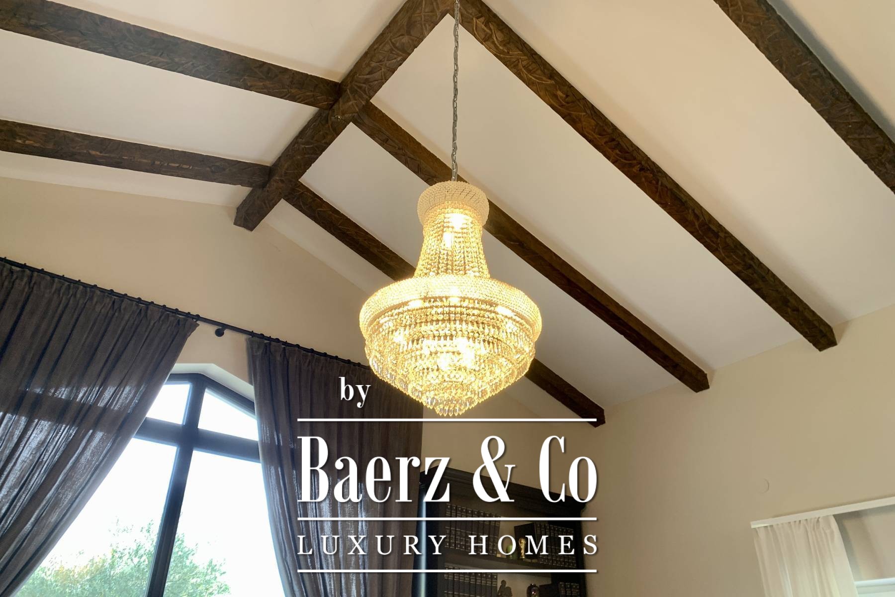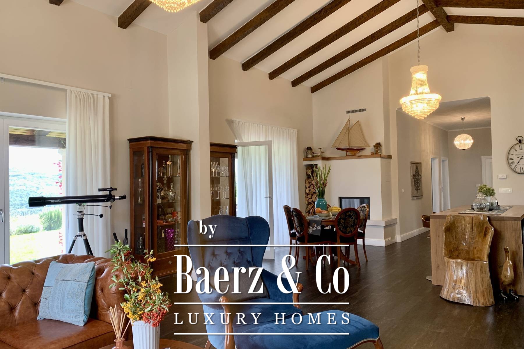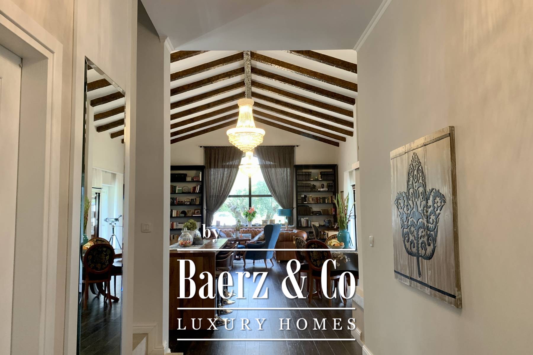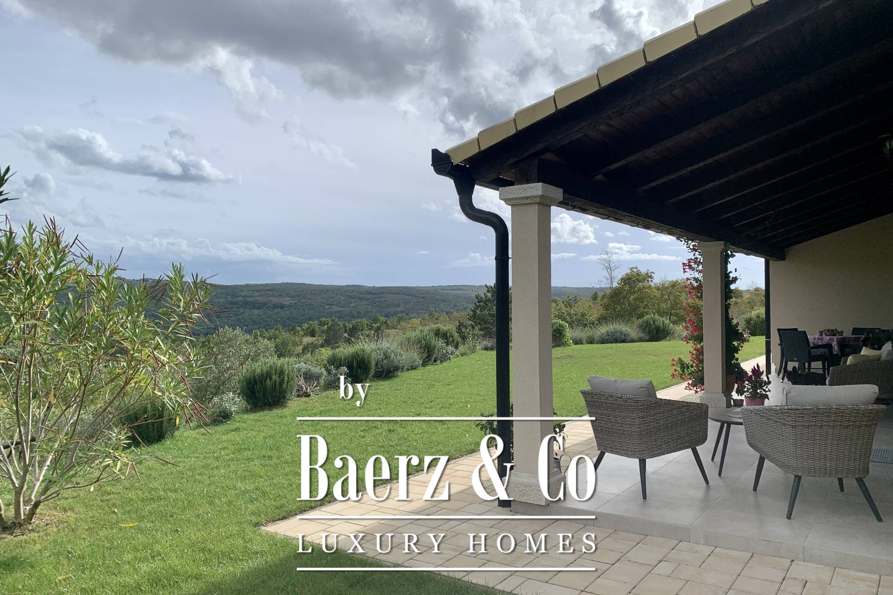 space bathroom that has both a shower and a lying bathtub. - walk-in wardrobe Every room in the house can have a television, and a UTP cable for the Internet has been installed. Sockets are located on every wall. Natural materials were used: wood, stone. Ceramics are Italian of top quality and designer signature. The glass is three-layered. The house is sold furnished. All furniture is included except for personal items of sentimental value - and even two high-value hand-cut crystal chandeliers from a Las Vegas store where Michael Jackson shopped. The yard is fully landscaped, with a seasonal pool heated by water from solar collectors, landscaped lawns with ornamental plants and old olive trees. Two private parking lots are covered and there is room for two more cars. The design of the villa fits perfectly and blends in with the surroundings. Premium materials were used for the construction and special attention was paid to the quality of the construction because the house was built for the owners. The property is perfect as a holiday home to pamper yourself and your family or as a rental investment. Perfect for escaping the city, yet everything is so close. If you want peace and privacy, this is the right property for you.
