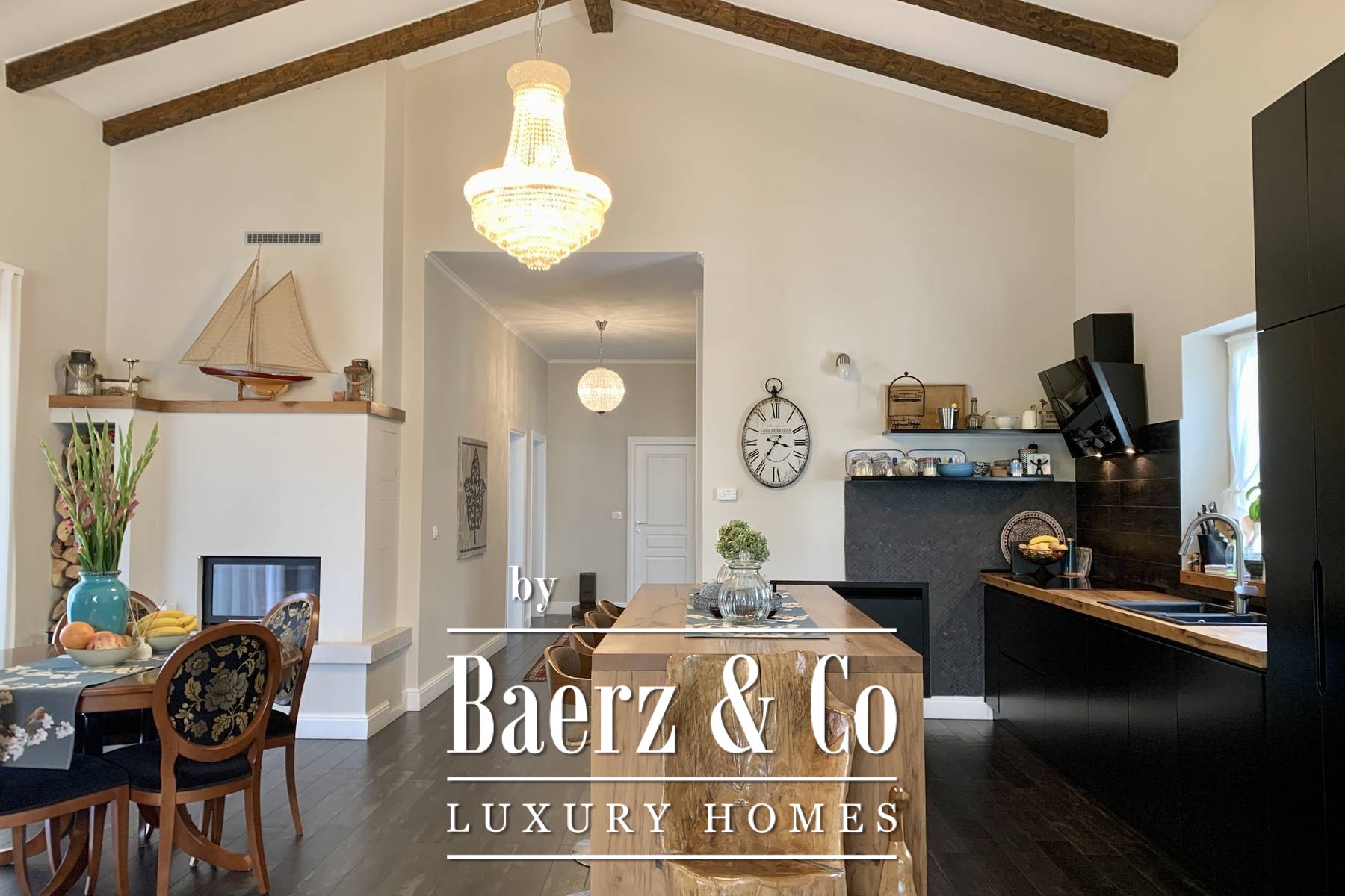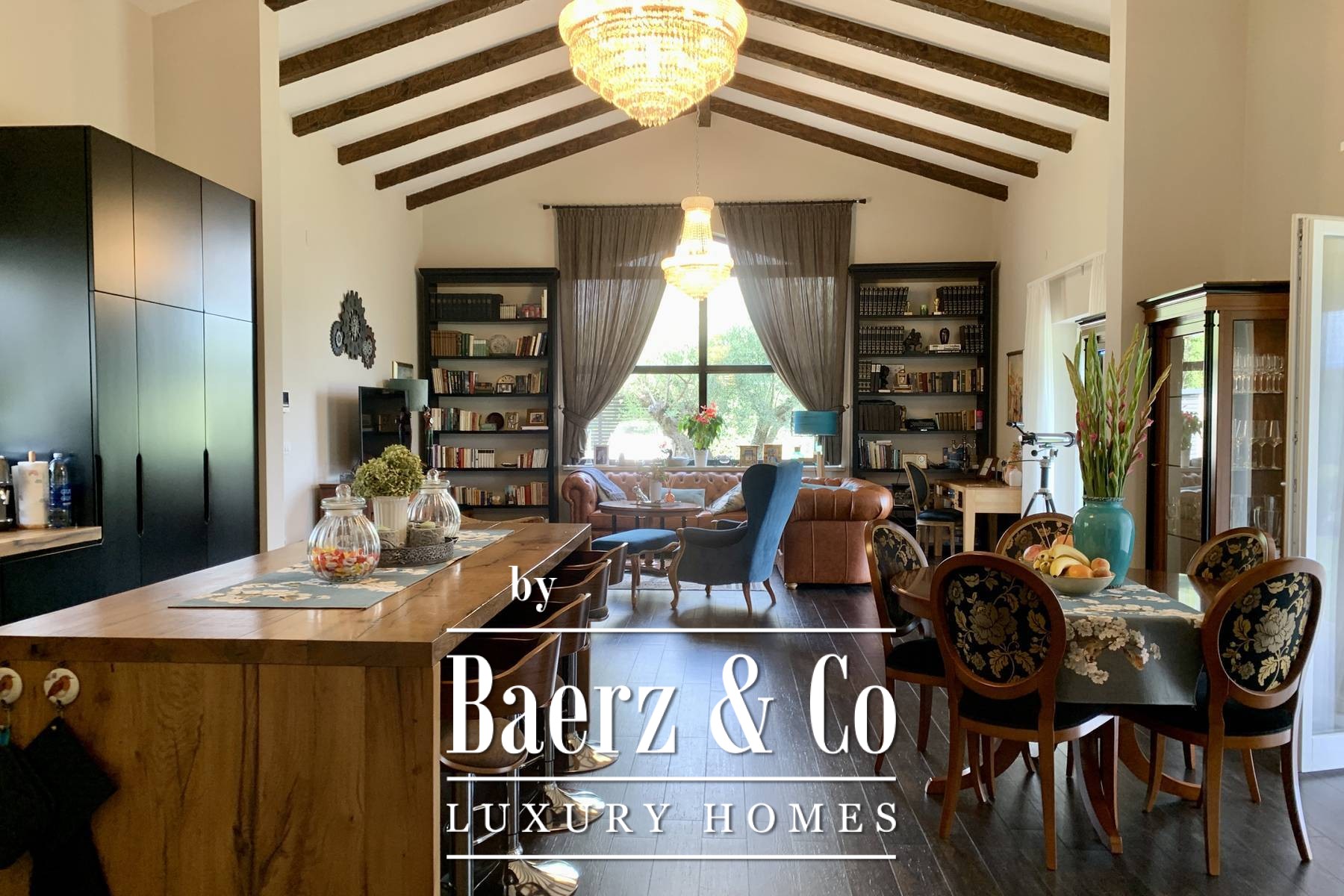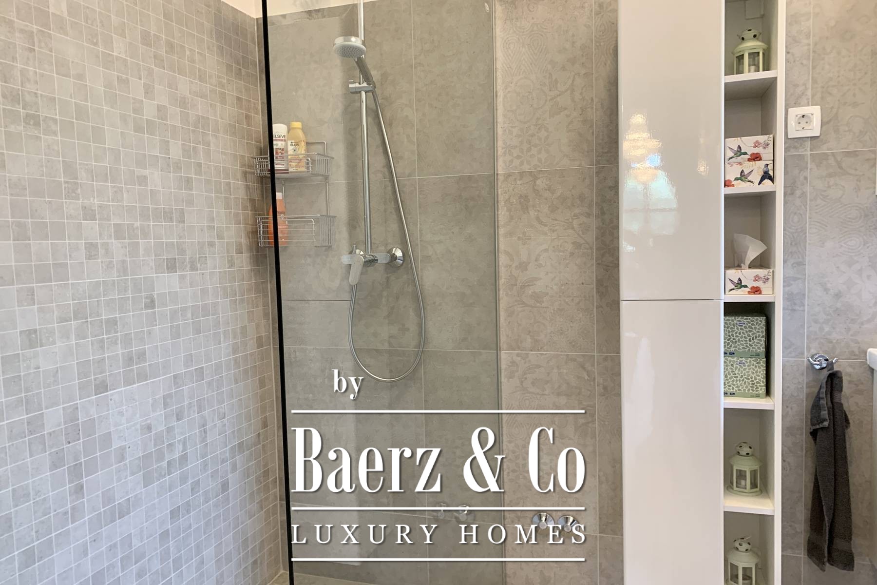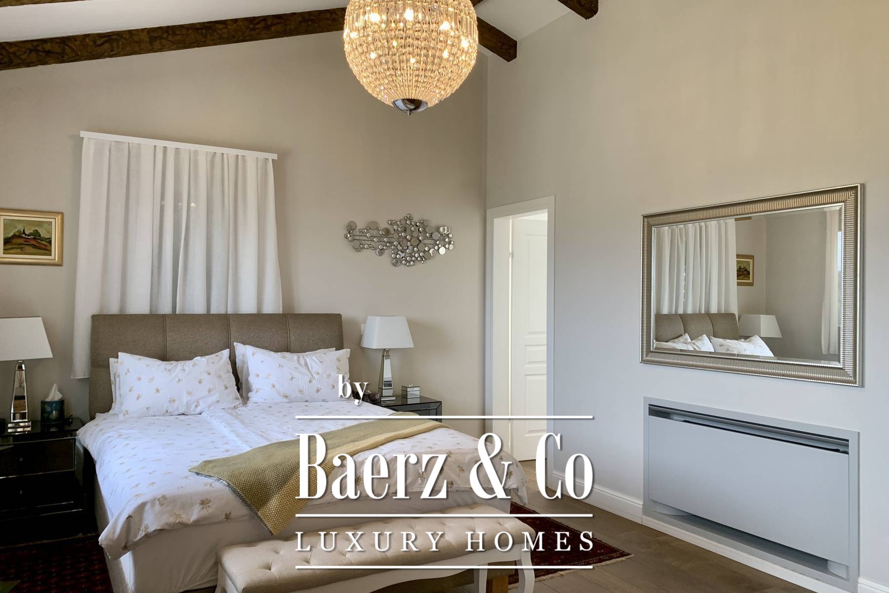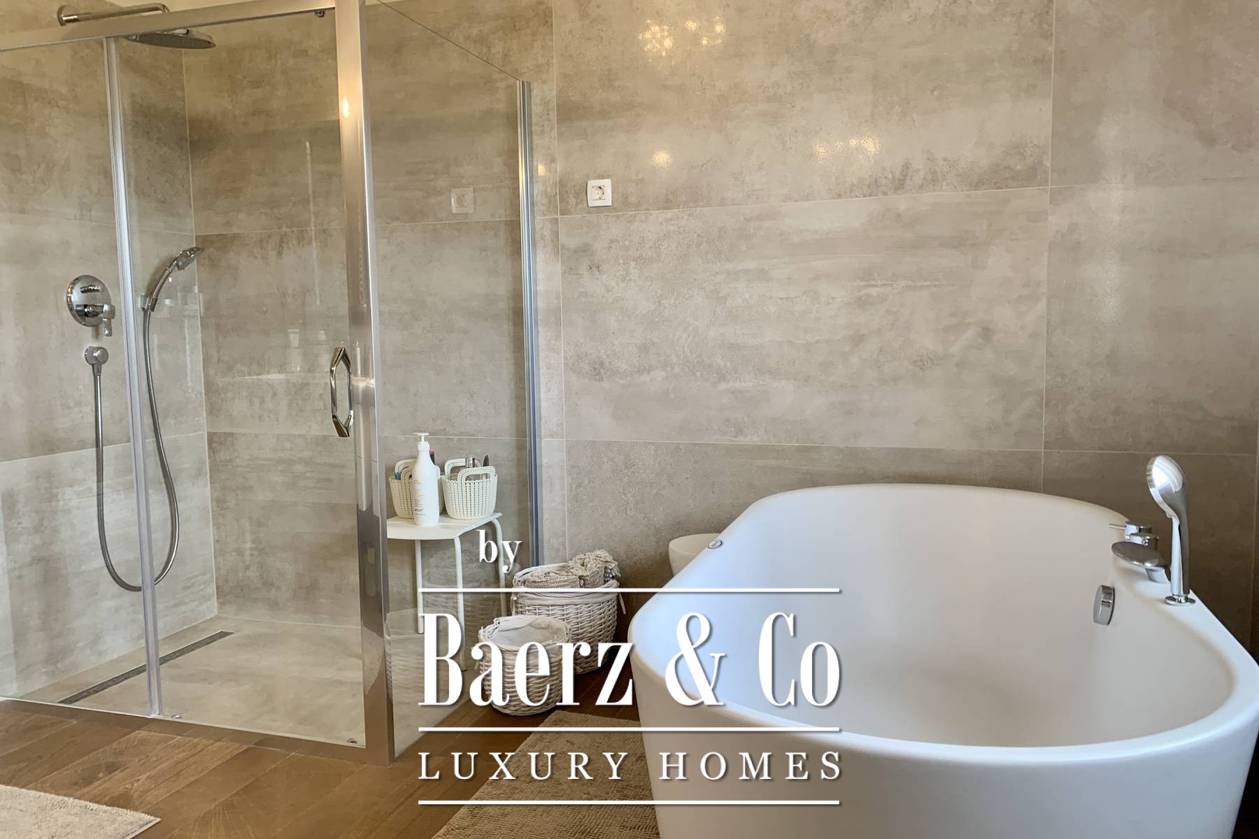 space bathroom that has both a shower and a lying bathtub. - walk-in wardrobe Every room in the house can have a television, and a UTP cable for the Internet has been installed. Sockets are located on every wall. Natural materials were used: wood, stone. Ceramics are Italian of top quality and designer signature. The glass is three-layered. The house is sold furnished. All furniture is included except for personal items of sentimental value - and even two high-value hand-cut crystal chandeliers from a Las Vegas store where Michael Jackson shopped. The yard is fully landscaped, with a seasonal pool heated by water from solar collectors, landscaped lawns with ornamental plants and old olive trees. Two private parking lots are covered and there is room for two more cars. The design of the villa fits perfectly and blends in with the surroundings. Premium materials were used for the construction and special attention was paid to the quality of the construction because the house was built for the owners. The property is perfect as a holiday home to pamper yourself and your family or as a rental investment. Perfect for escaping the city, yet everything is so close. If you want peace and privacy, this is the right property for you.