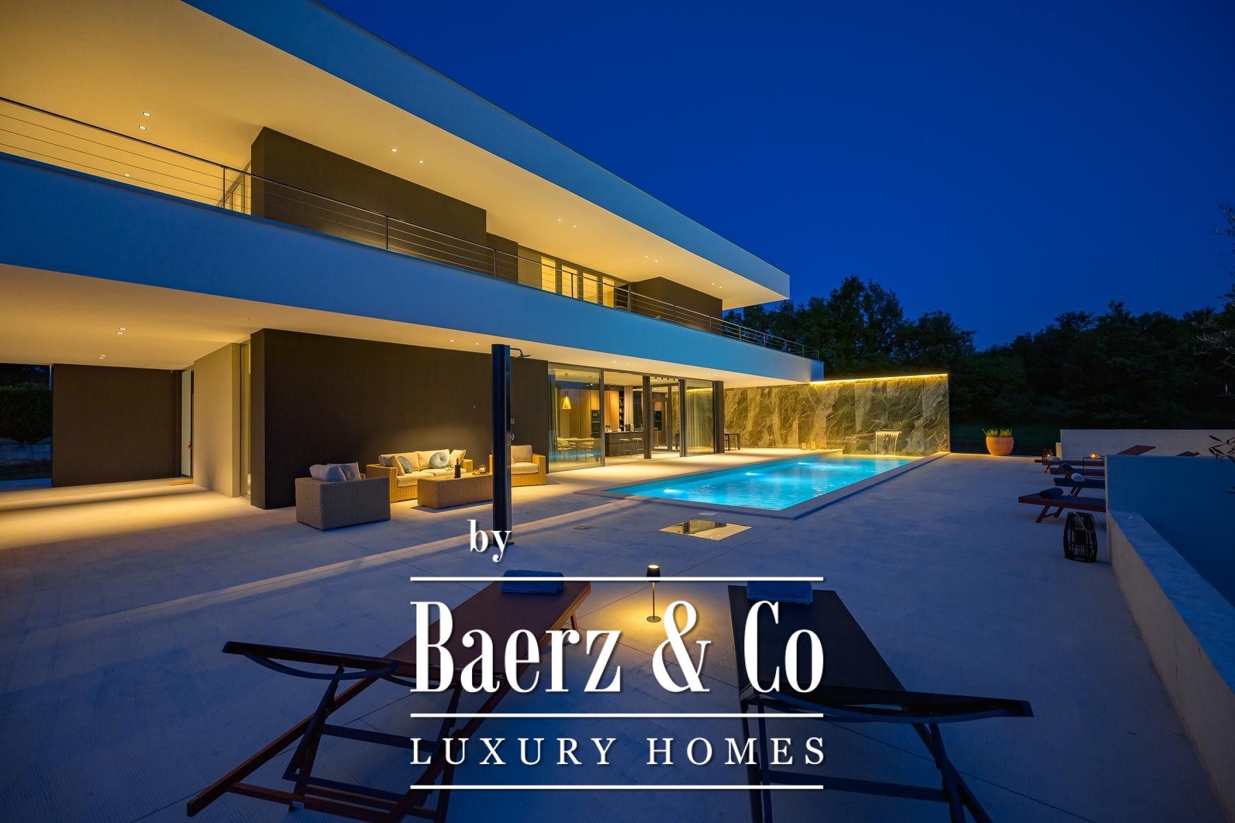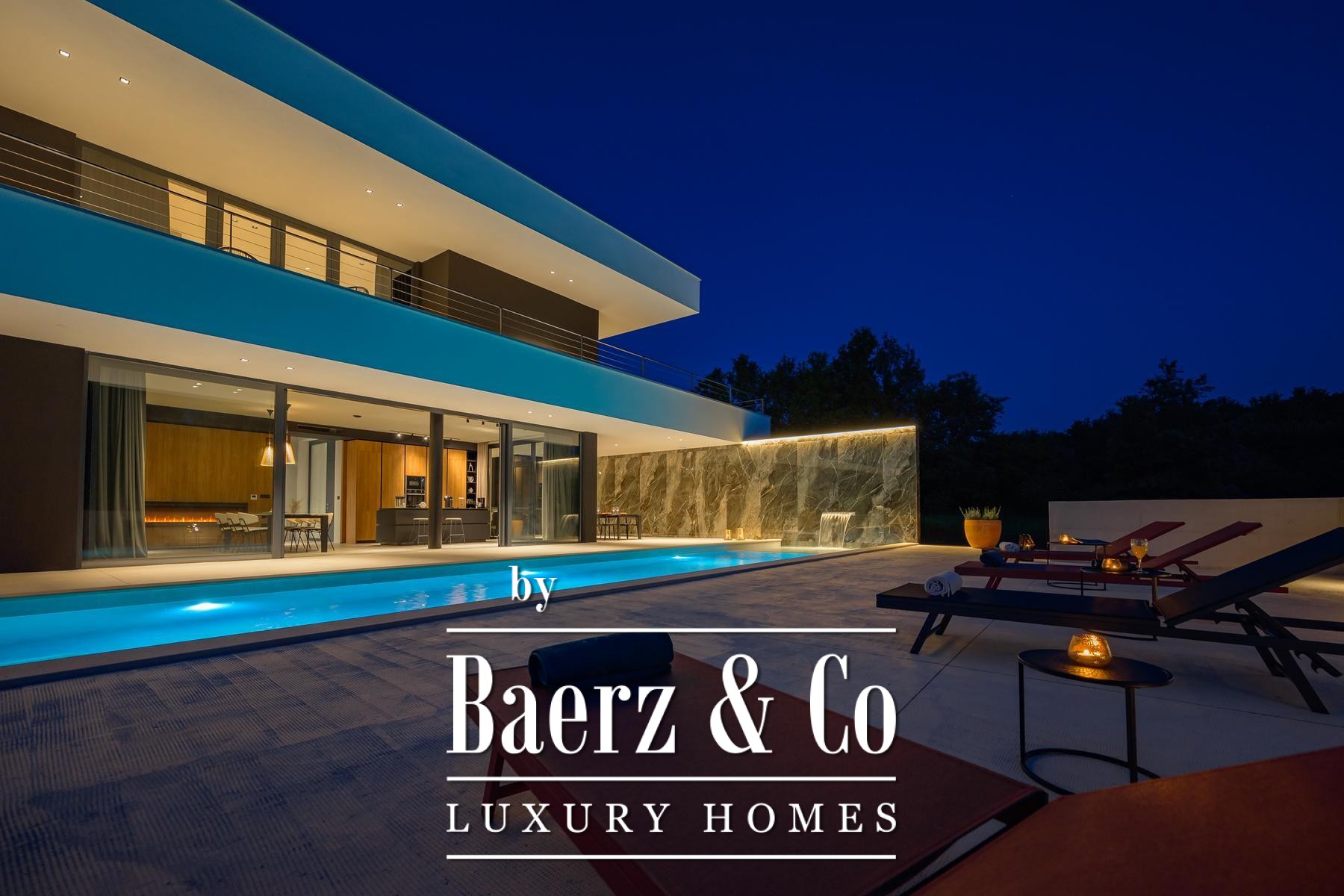 Villa Grožnjan highlights Istria’s quiet grandeur, combining architectural clarity with purposeful luxury. This villa in Grožnjan is newly built, offering 300 m² of living space set on a 2,170 m² plot, shaped by Studio 92 and punctuated by interiors from Calligaris Italia. The main level presents an open living area with Italian leather furnishings, a chef’s kitchen fitted with Nef appliances, and a seamless flow to a 222 m² covered terrace. The terrace expands to a saltwater pool, 15 metres in length and edged by a fully equipped outdoor kitchen, fostered for refined gatherings.
