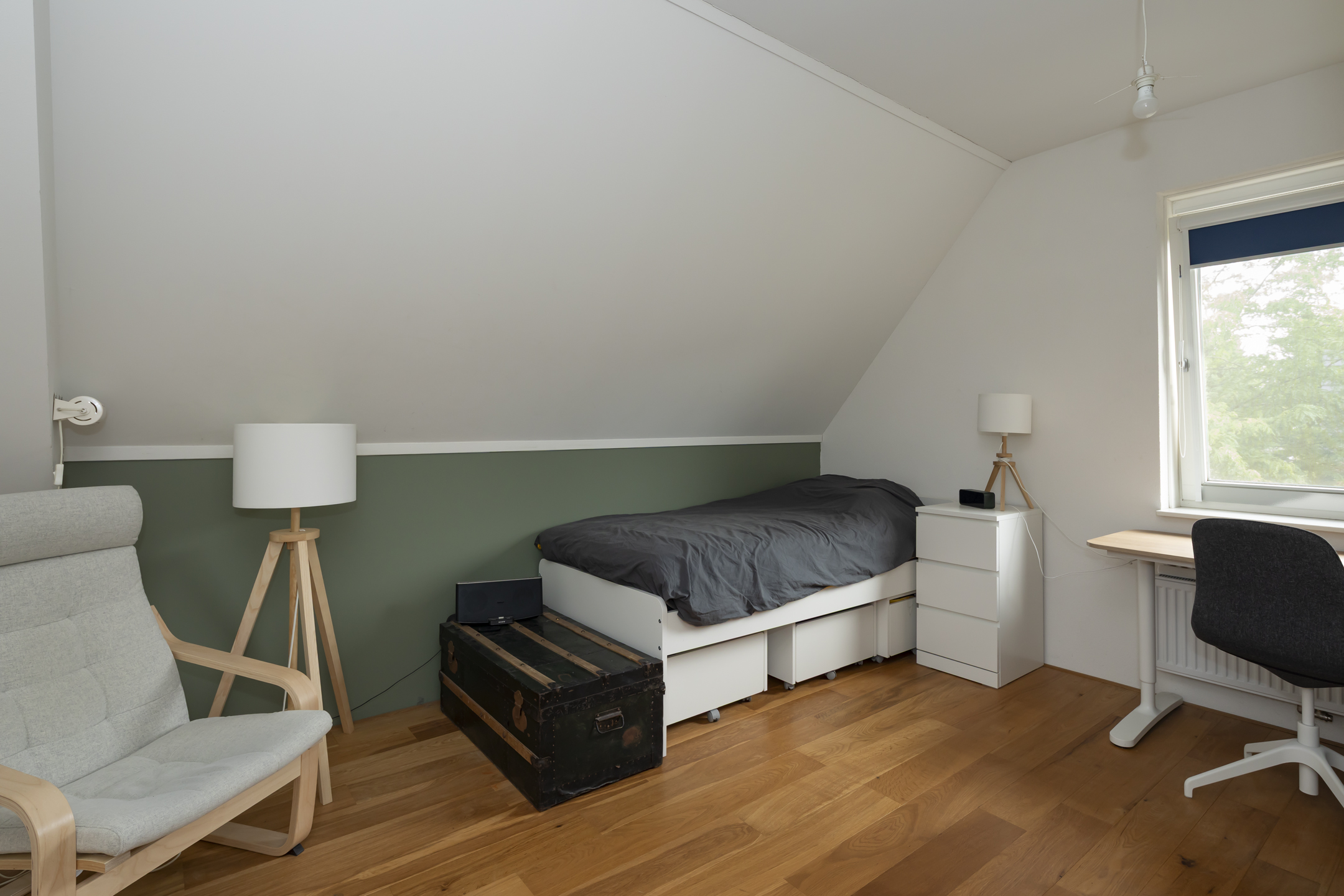 This pleasant, practical space offers space for all your non-daily necessities. The attic storage extends the entire length of the house, approximately 11.5 meters.