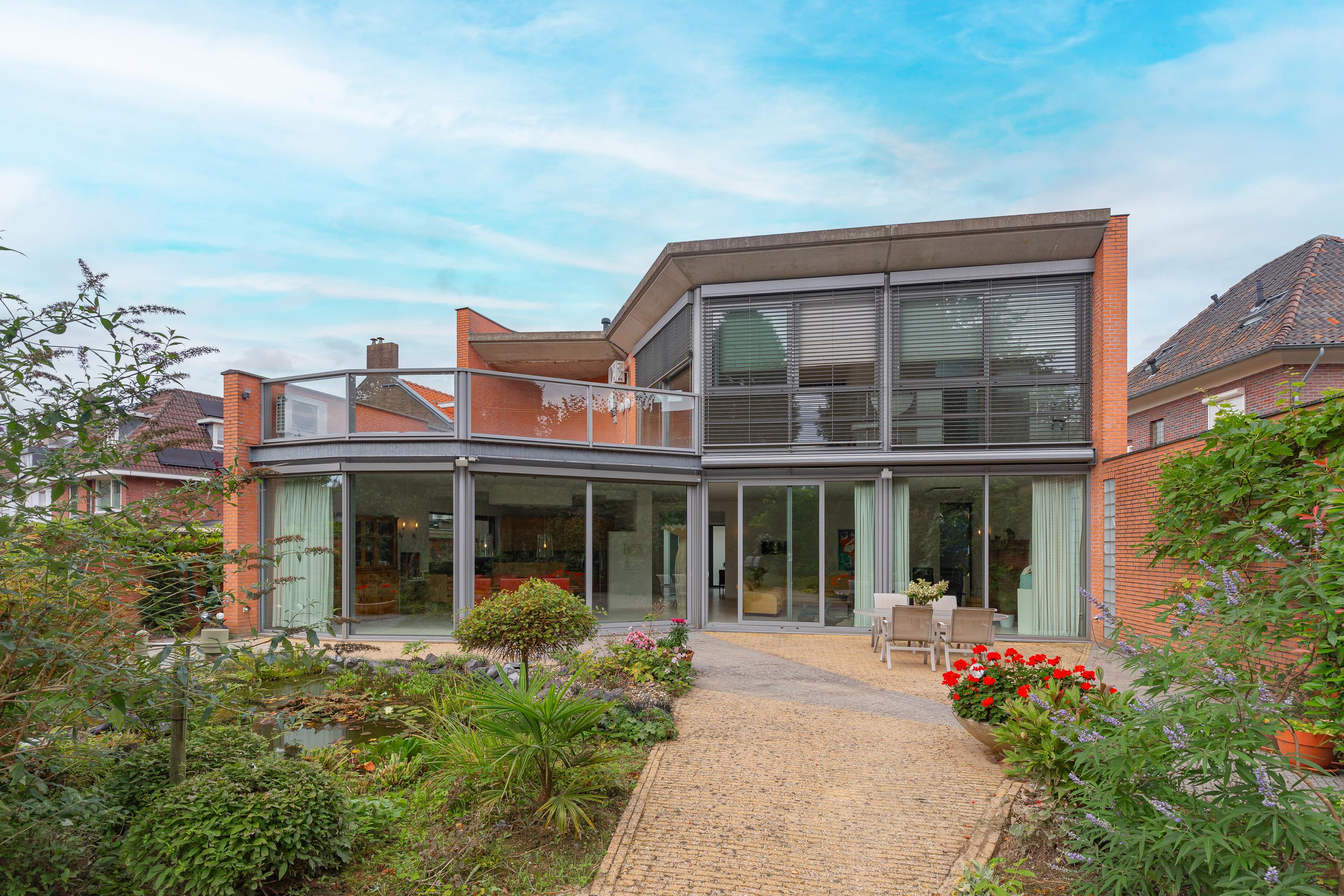 A great location, just steps away from downtown with (secondary) schools and nature within walking distance in Heerlen South we offer under architecture built detached villa, to a design by architect Frans de Leij. The villa was built in 2000 and finished with durable and high quality materials. The front facade of the house has 15 centimeters thick marl stone.