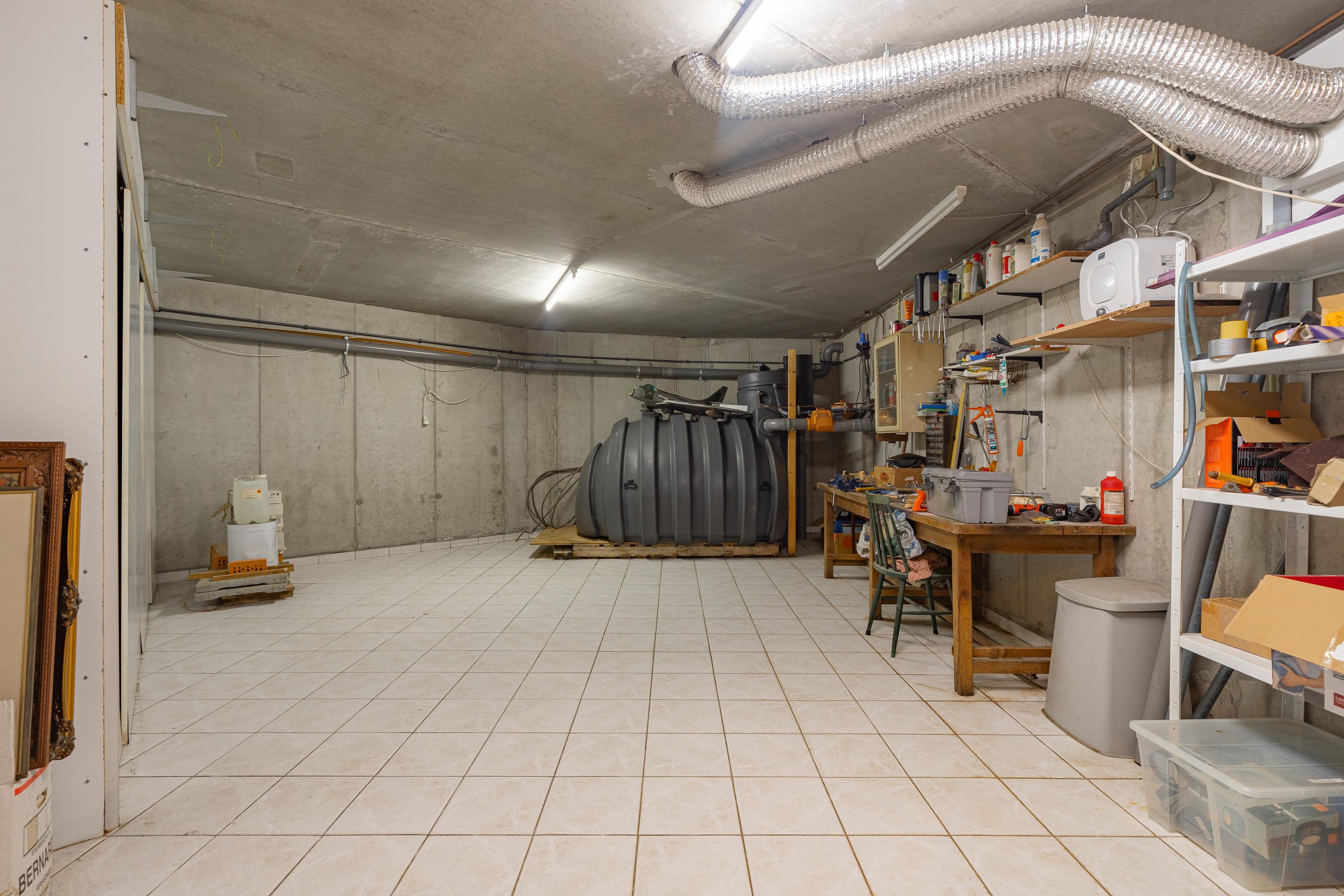 The villa is fully equipped with a basement. The paved driveway provides access to the spacious garage. This is equipped with a wide electrically operated sectional door. The construction is on the outside completely poured in concrete and therefore waterproof. A white tiled floor finish throughout the basement. Technical room with HR Nefit central heating system and distributor for underfloor heating. A gray water circuit with storage tank of 3500 liters tank for flushing the toilets, laundry equipment and water for the garden. Provisions basement, laundry room with daylighting and connection point for white goods.
