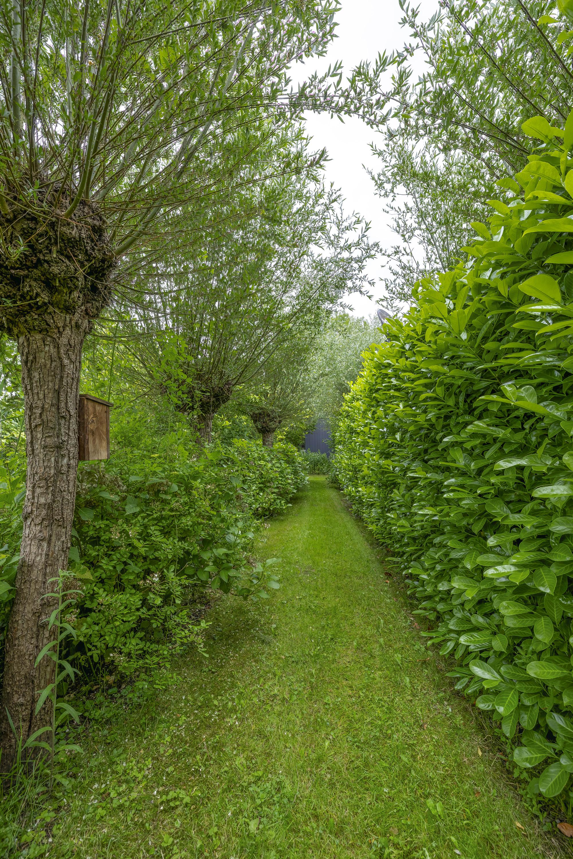 of the garden – a soothing spectacle that impresses all year round. Explore the garden via various paths and discover something new around every corner: from stately hedges to shady trees, a herb garden, a field of sunflowers with a stork's nest and a helicopter tip, and various borders. Enjoy the lawn, a beautiful willow lane, apple tree lane, water features, pear arbour, wisteria arbour and playful borders that together create an idyllic atmosphere.
