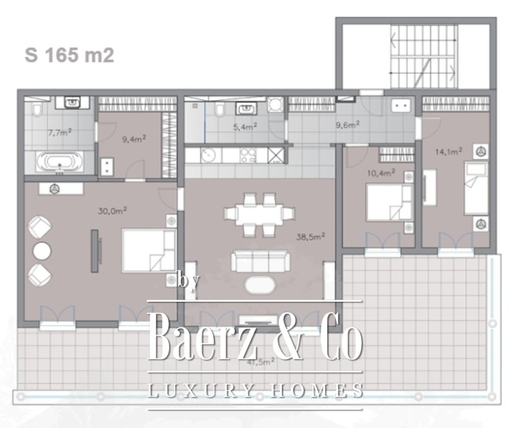 The location is a little above sea level, it has Wonderful air and natural surroundings. The apartment itself has 123,5m2, while its terrace has 41,5m2.