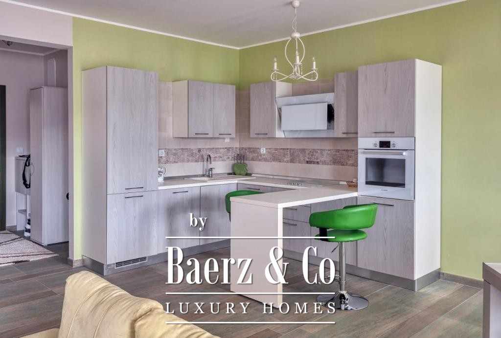 Structure of the apartment: hallway, living room with kitchen and dining table, 2 bedrooms, 2 bathrooms, a wardrobe and 2 terraces. It has a sea view and the view of mountains around it. The apartment is fully furnished and ready to move in.