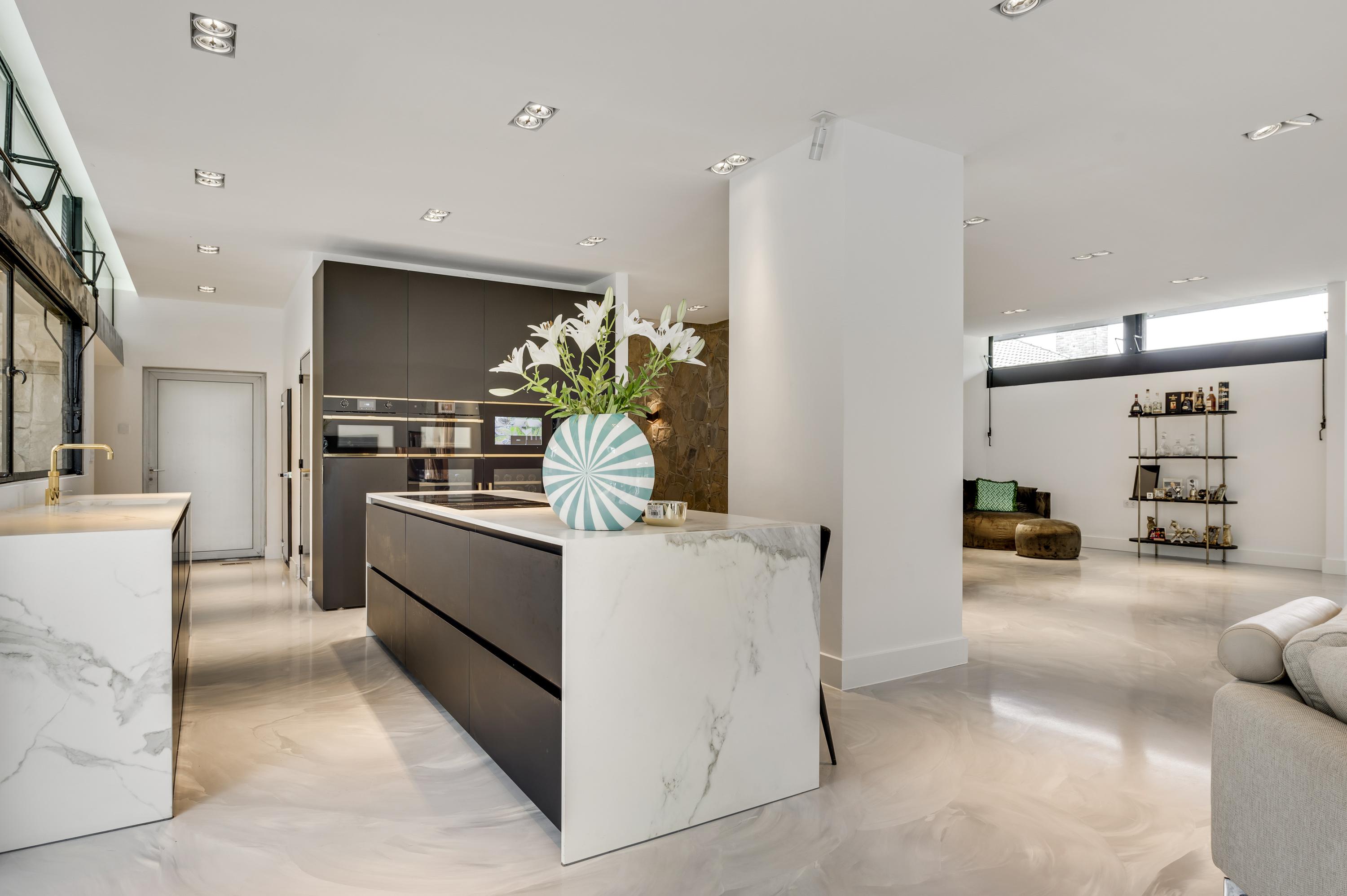 You enter the property through the stately entrance gate with intercom. You can park your car in style under the double carport or in the indoor double garage. The covered entrance leads to the spacious reception hall, a fitting entrance for this impressive villa.
