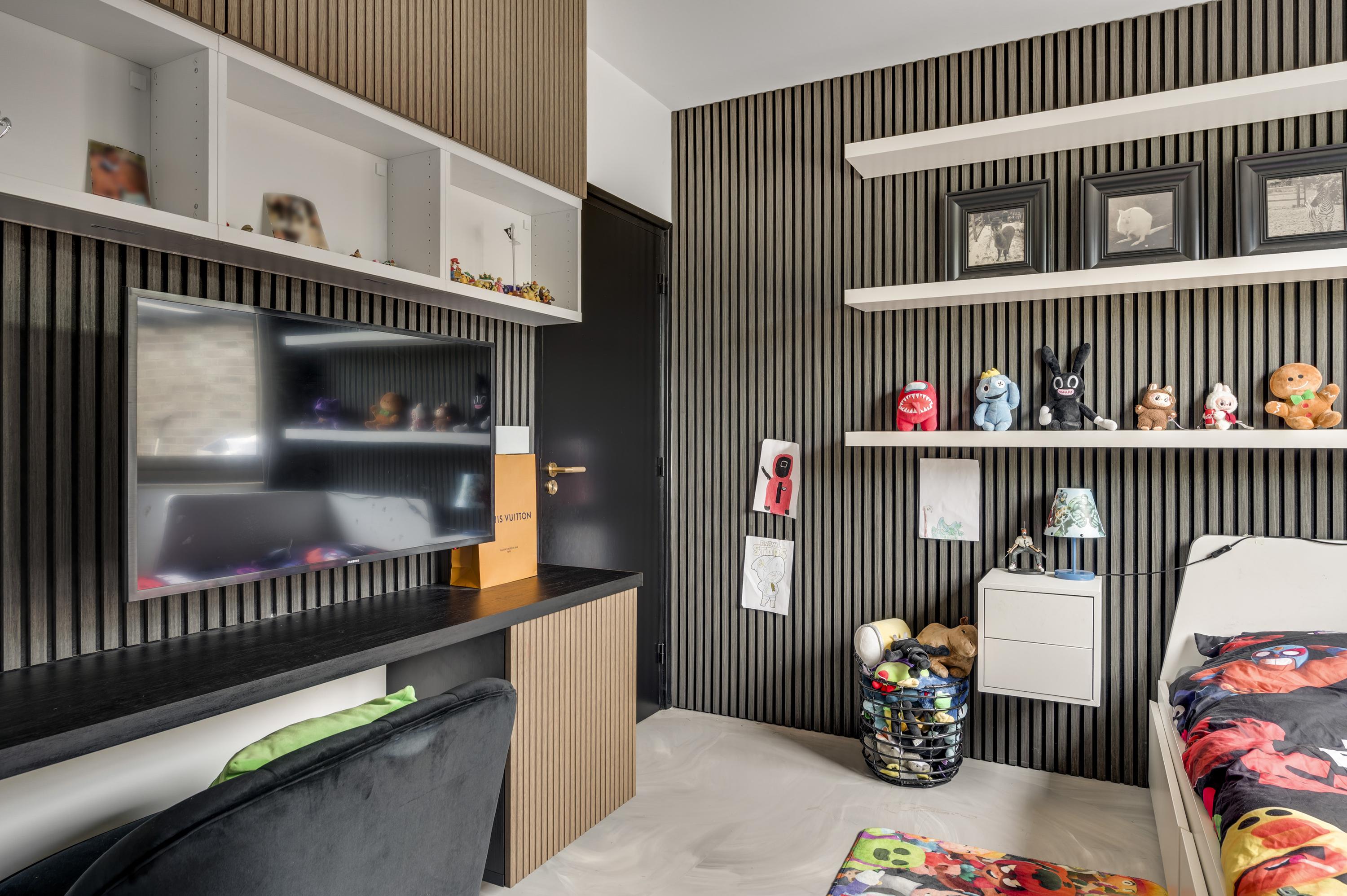 The south wing of the house features a spacious living room with large windows and a cozy fireplace. The modern open kitchen (2020) forms the heart of this wing, complete with high-quality built-in appliances. Adjacent to this is a multifunctional room, ideal as a home office, playroom, or library.
