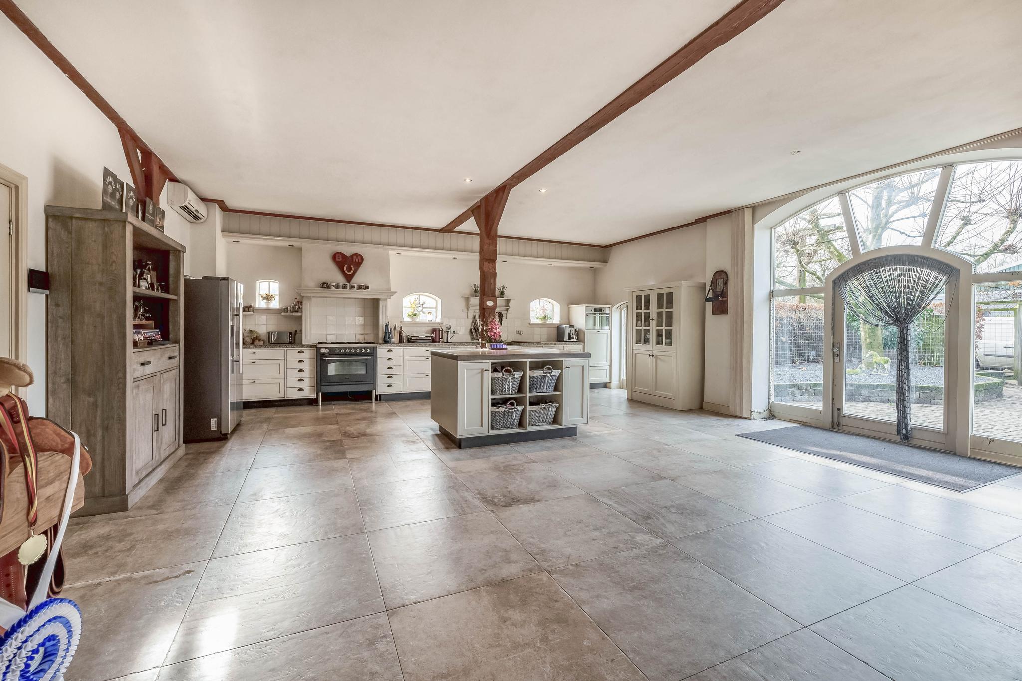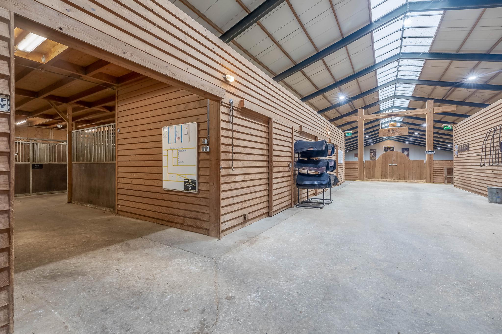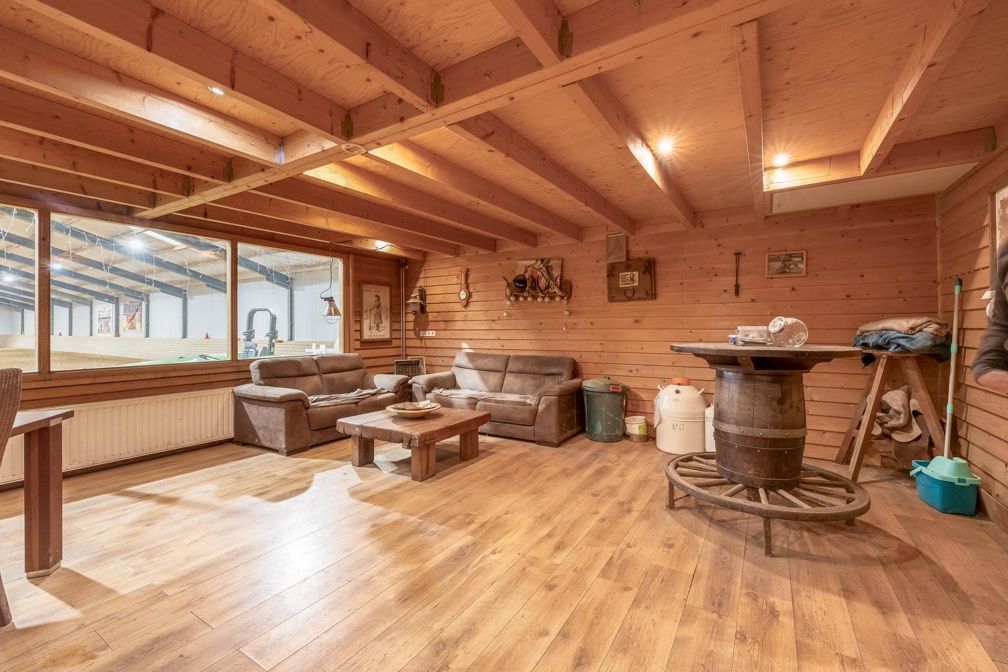 The accommodation currently has 16 horse stalls, divided over 2 stable units (7 and 9 stalls). These spacious stalls have partially galvanised, partially plastic front walls with sliding doors and a rubber tile floor. Some of the stalls have an outside hatch. The wooden finish in the canteen/reception area creates a pleasant atmosphere. A large window offers a direct view of the indoor arena. There is also a kitchen unit with a sink and storage space.