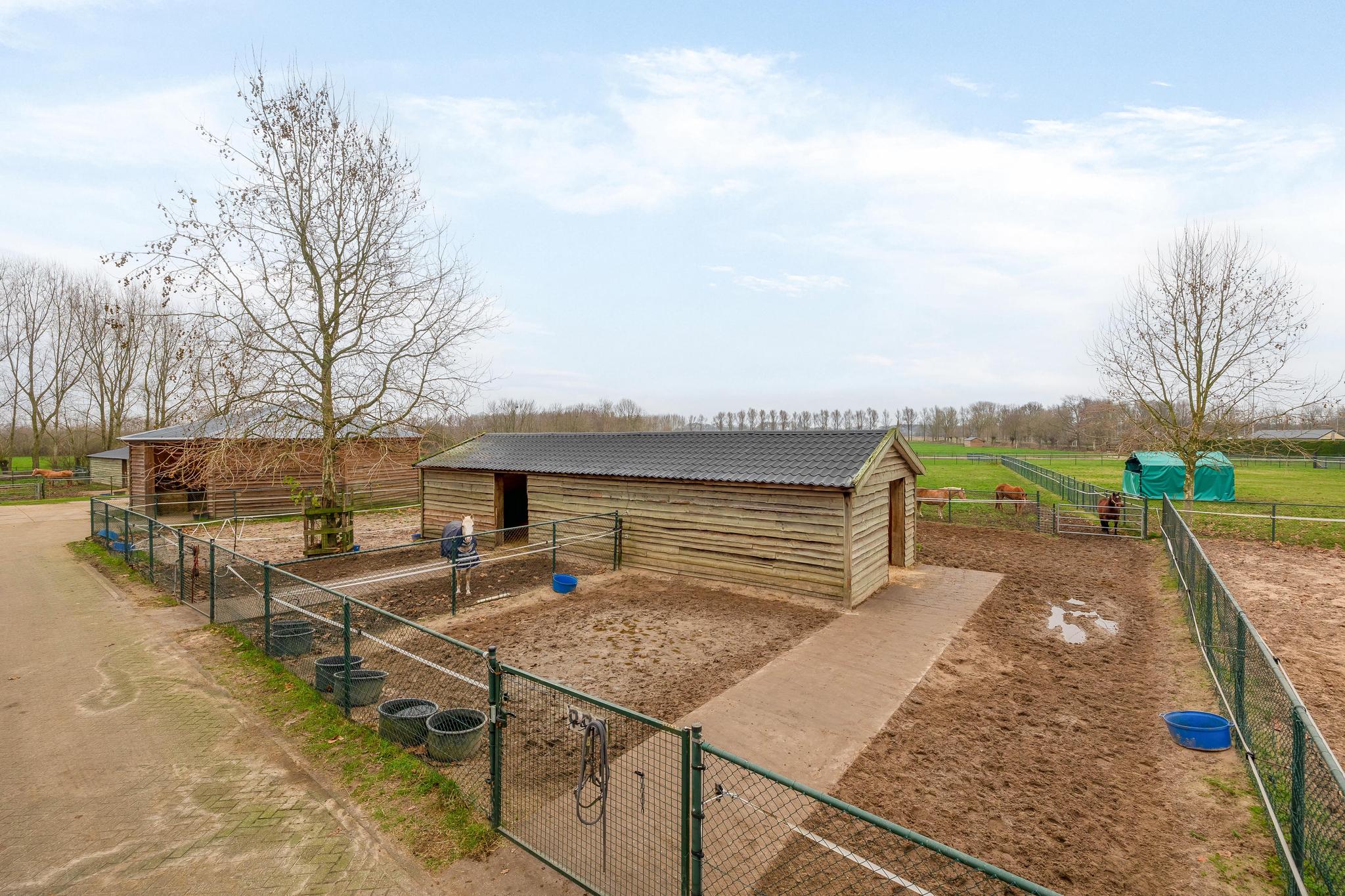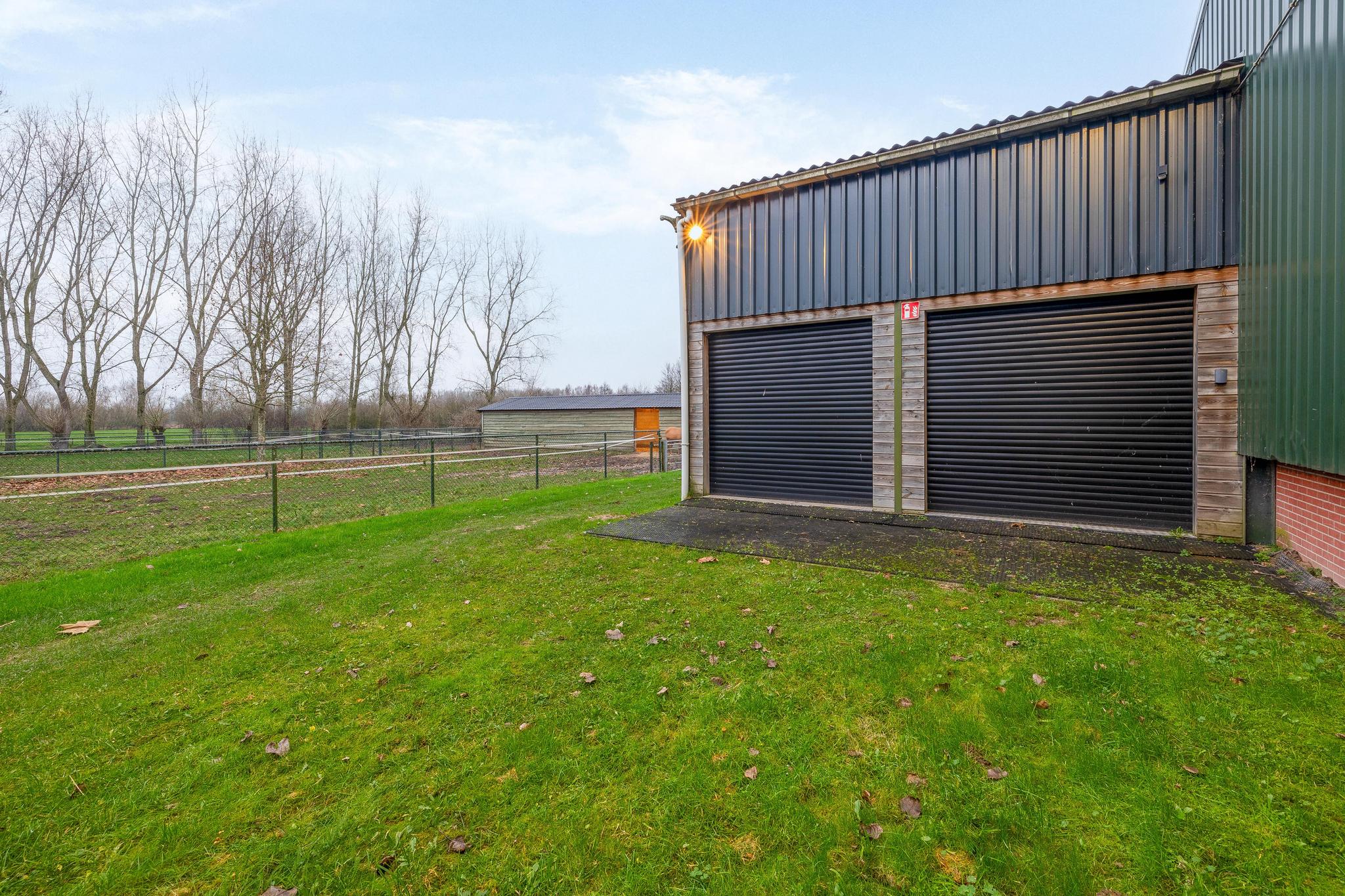 There is also a deep manure container on the site for the storage of manure. The complex has access to a chalet that can be used as accommodation for interns, grooms, guests or informal carers. The chalet has a living room with an open kitchen, a bedroom and a bathroom. The plot and the associated pastures are completely fenced with wire fencing. Access to the plot is via a Heras sliding gate with a video doorbell system. The entire plot and the inner stables/hall are monitored by a camera system (20+ cameras). It is possible to expand the plot area by approx. 2.7 ha of pasture. This farmland is optionally offered for sale and is located directly adjacent to the current plot.