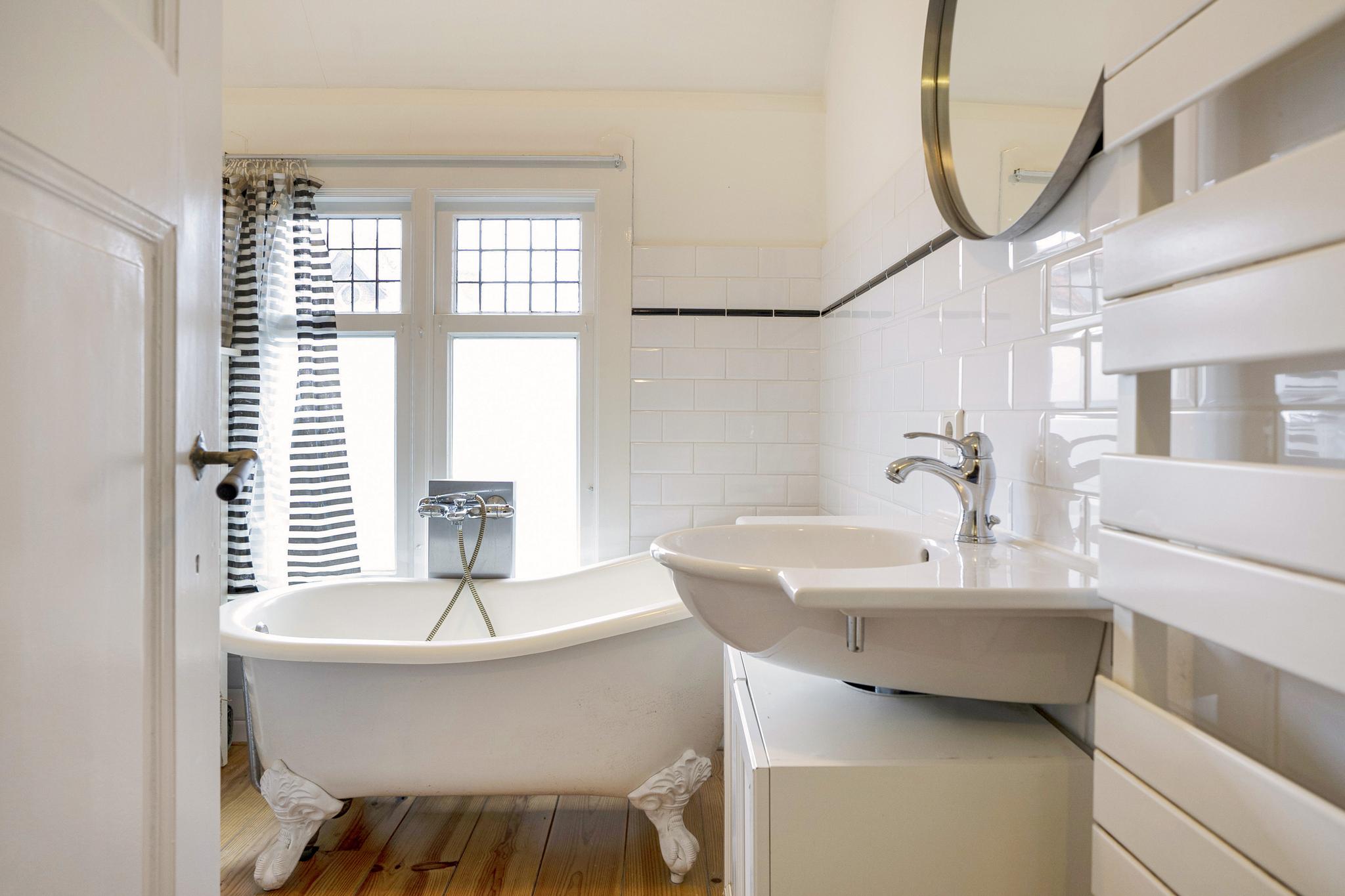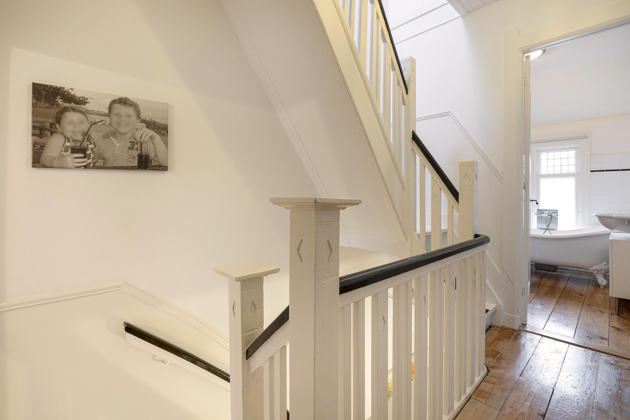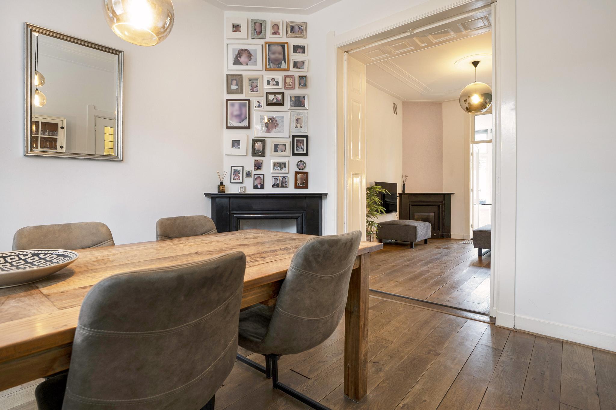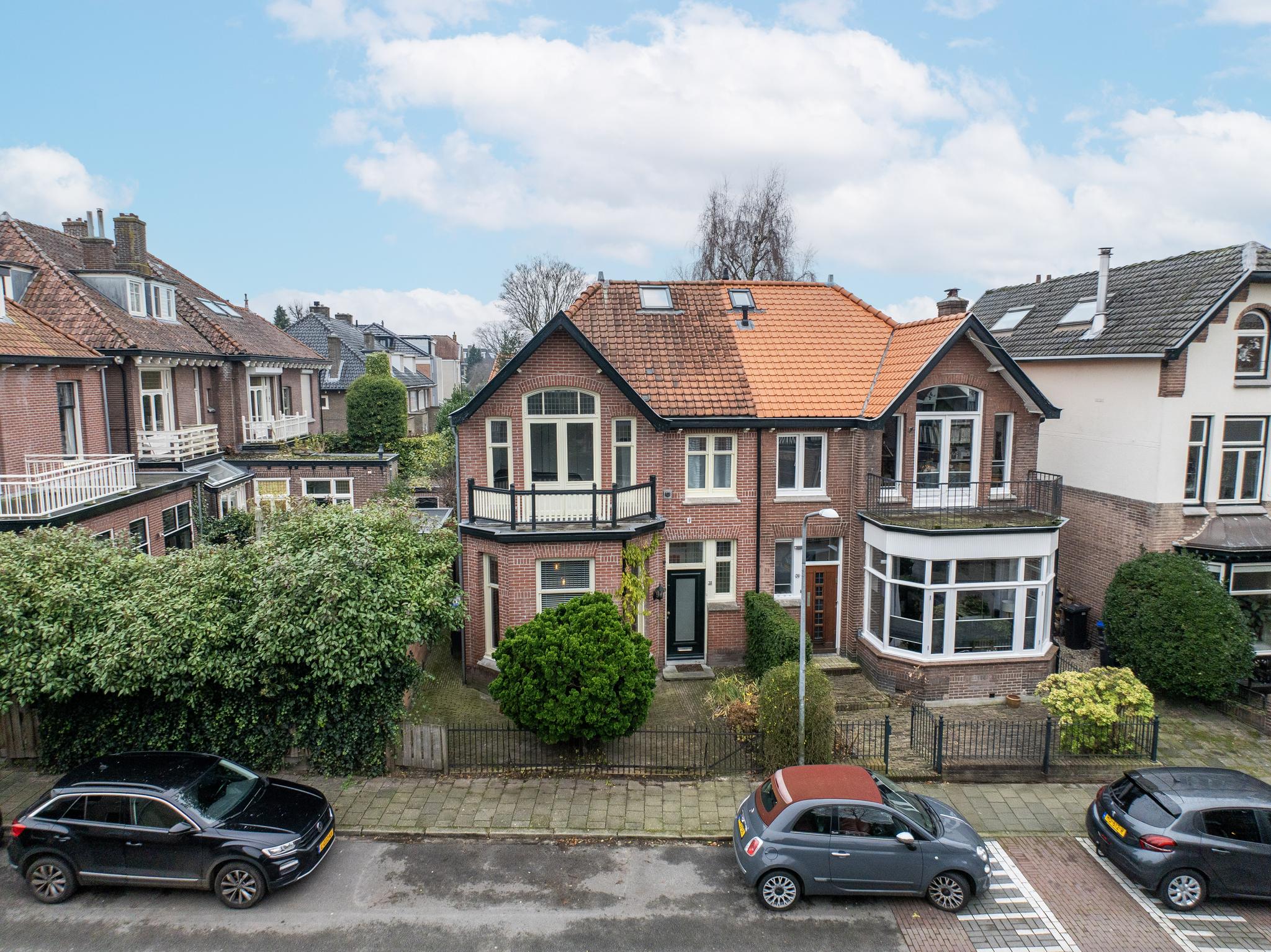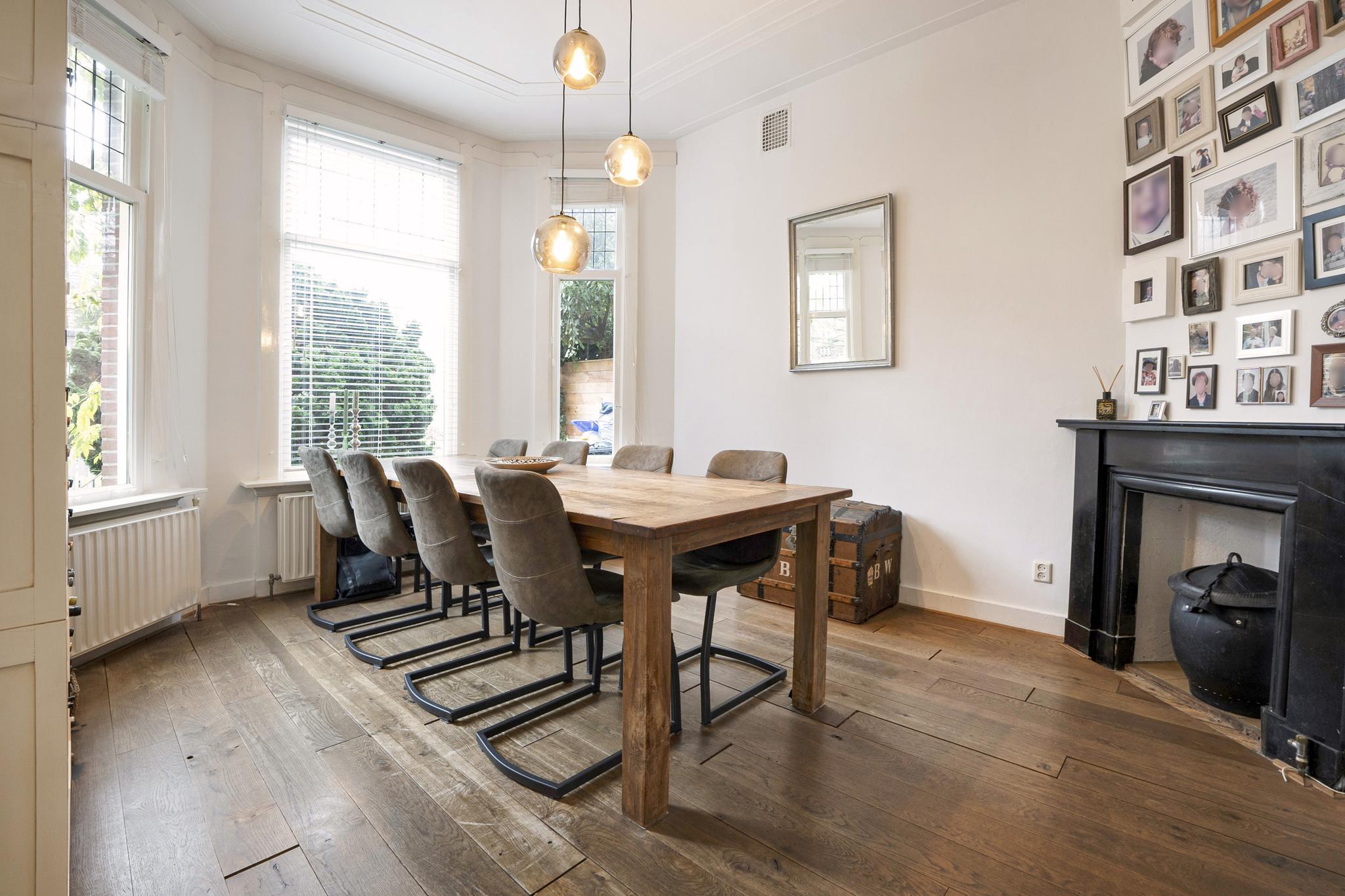 In a quiet and sought-after street near the centre of Hilversum, this charming semi-detached town house from 1910 with ample parking space is now for sale. The location offers the best of both worlds: close to the city, yet with the peace and freedom of a green, tranquil neighbourhood. The house strikes a perfect balance between historical charm and modern comfort. With original features from the early 20th century, including high ceilings, stained-glass doors, a living room with en-suite doors, black marble fireplaces, sash windows, and an impressive staircase, this is a unique home that seamlessly blends past and present.