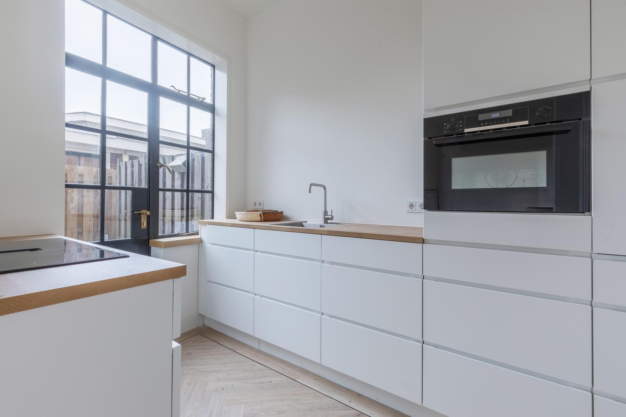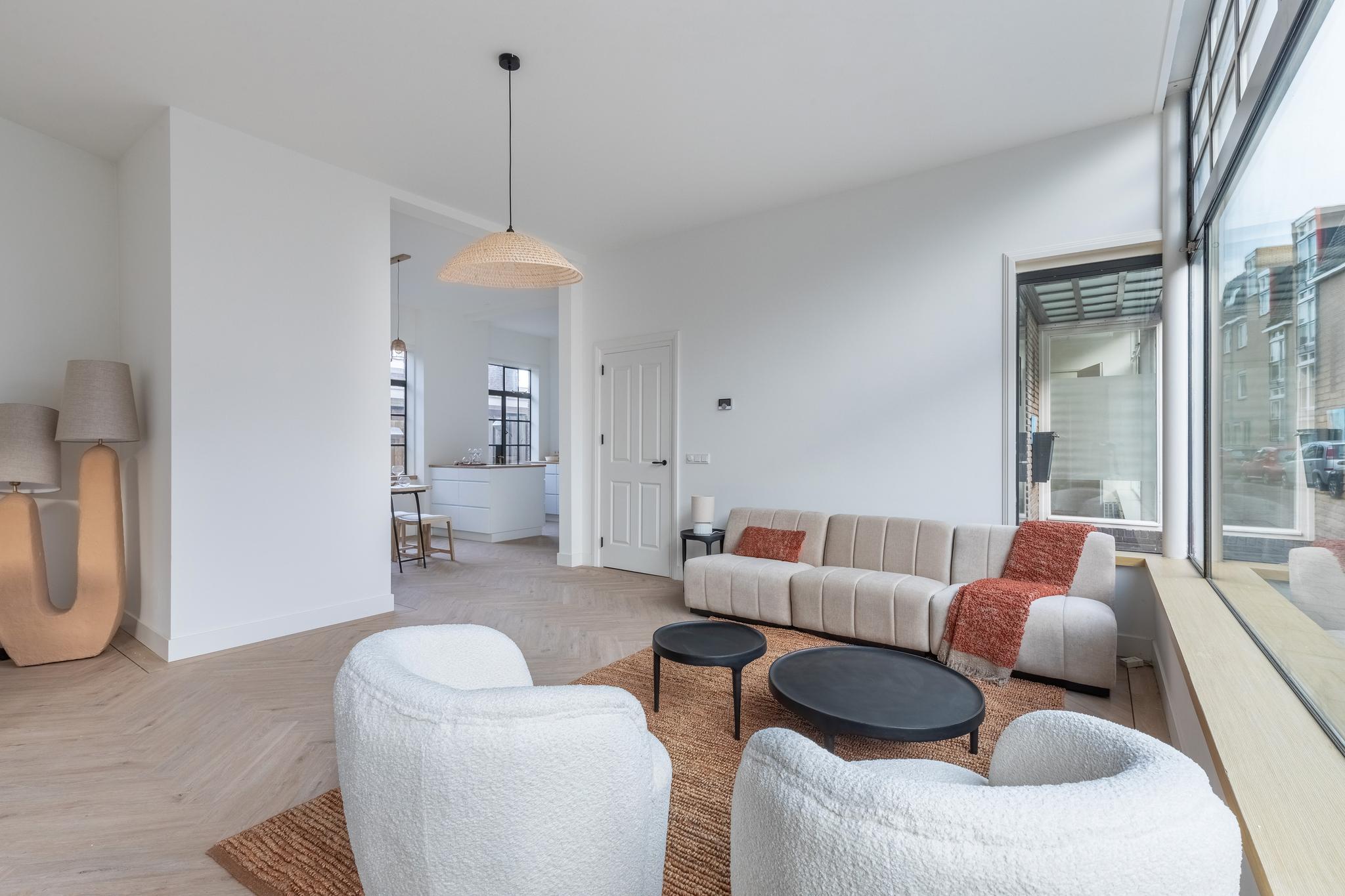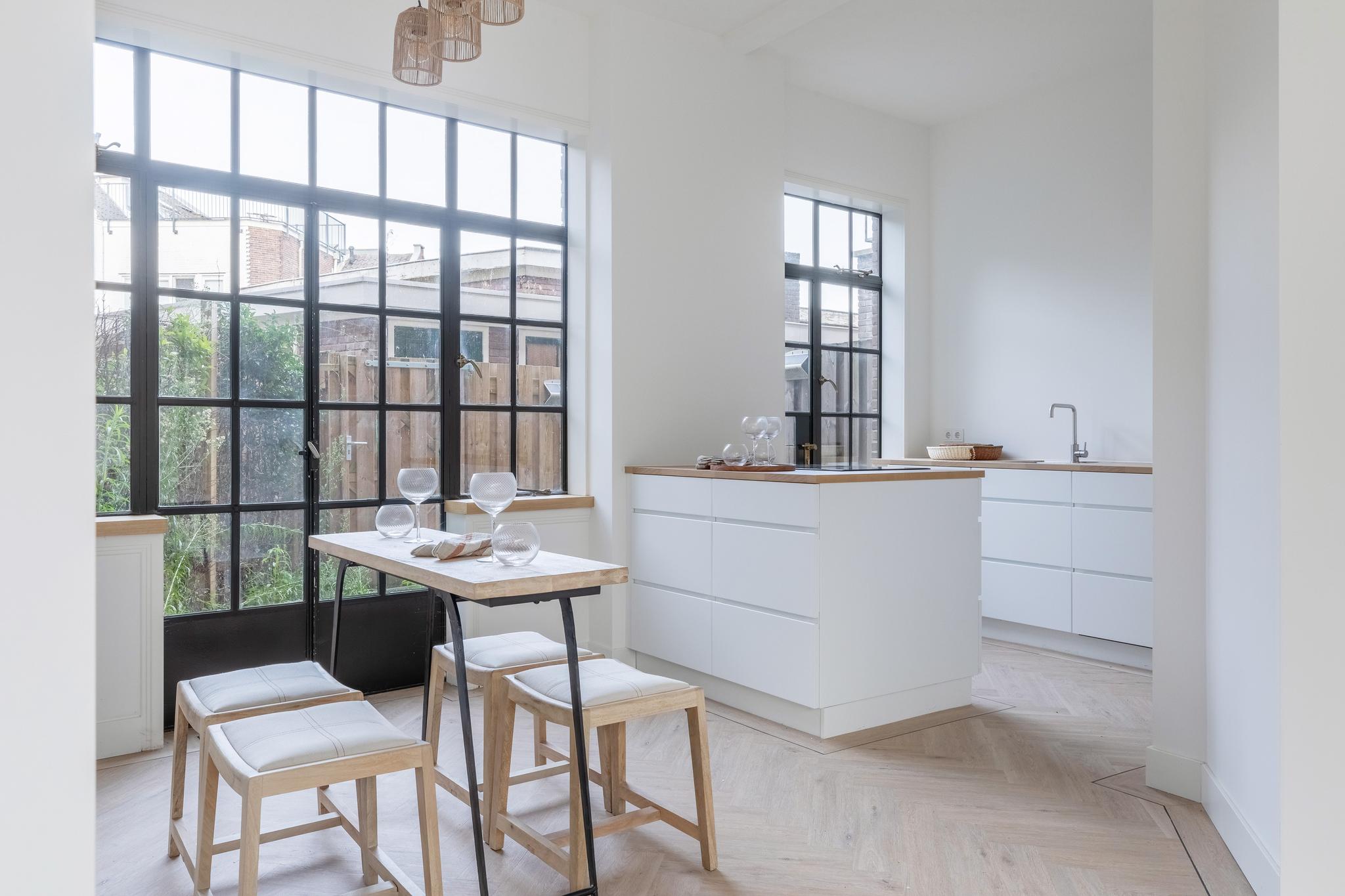 riante woonkamer welke grenst aan de open keuken wat samen een mooi geheel vormt. De keuken is uitgerust met hoogwaardige inbouwapparatuur waaronder een inductiekookplaat, combi- oven, vaatwasser en koel-/vrieskast. De woonkamer met bied veel lichtinval door de grote raampartij. Vanuit de keuken geven openslaande deuren toegang tot de gezellige stadstuin.