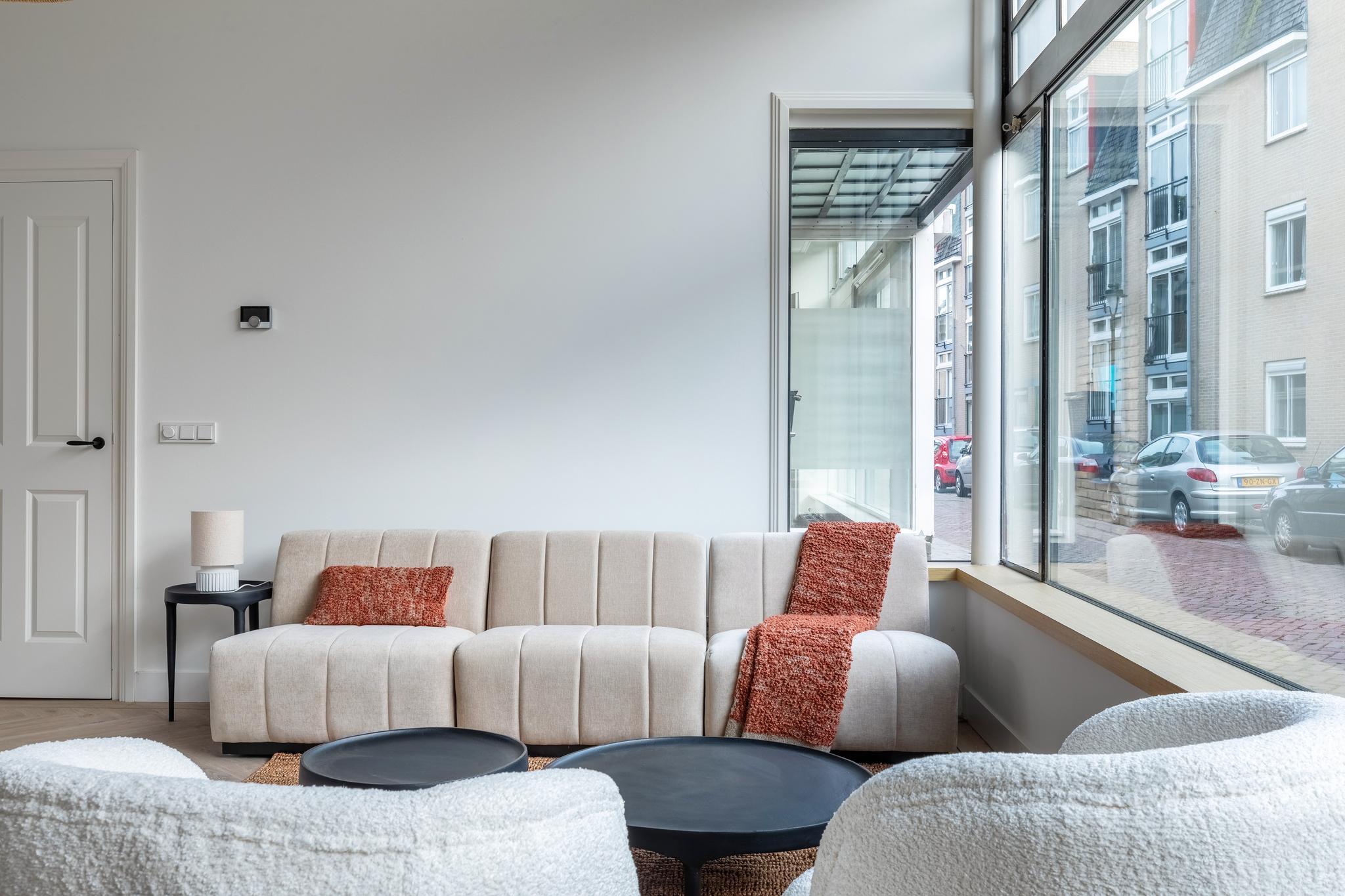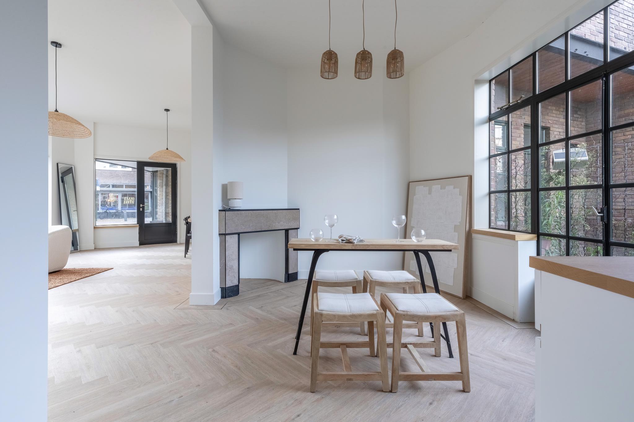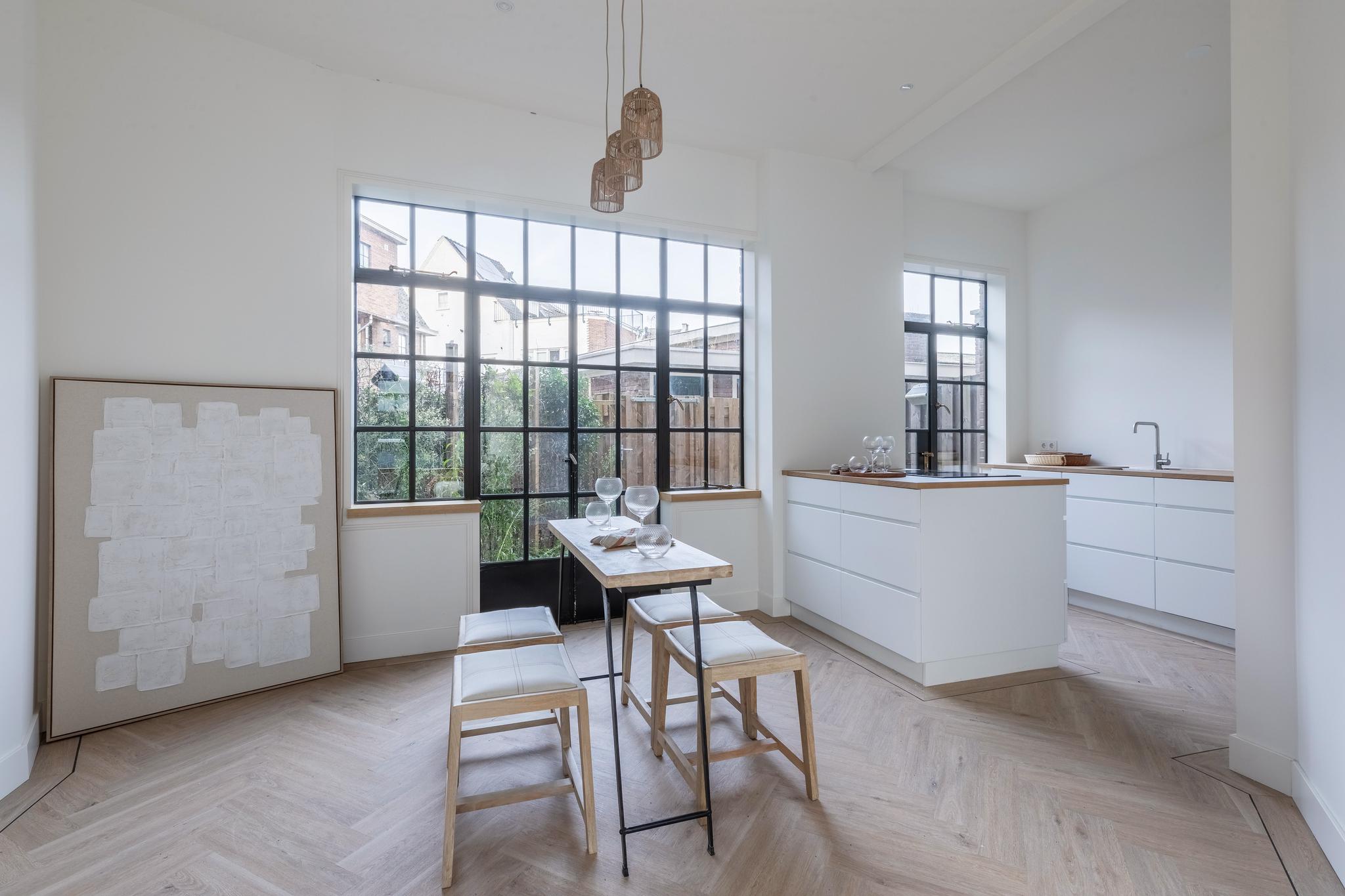 riante woonkamer welke grenst aan de open keuken wat samen een mooi geheel vormt. De keuken is uitgerust met hoogwaardige inbouwapparatuur waaronder een inductiekookplaat, combi- oven, vaatwasser en koel-/vrieskast. De woonkamer met bied veel lichtinval door de grote raampartij. Vanuit de keuken geven openslaande deuren toegang tot de gezellige stadstuin.