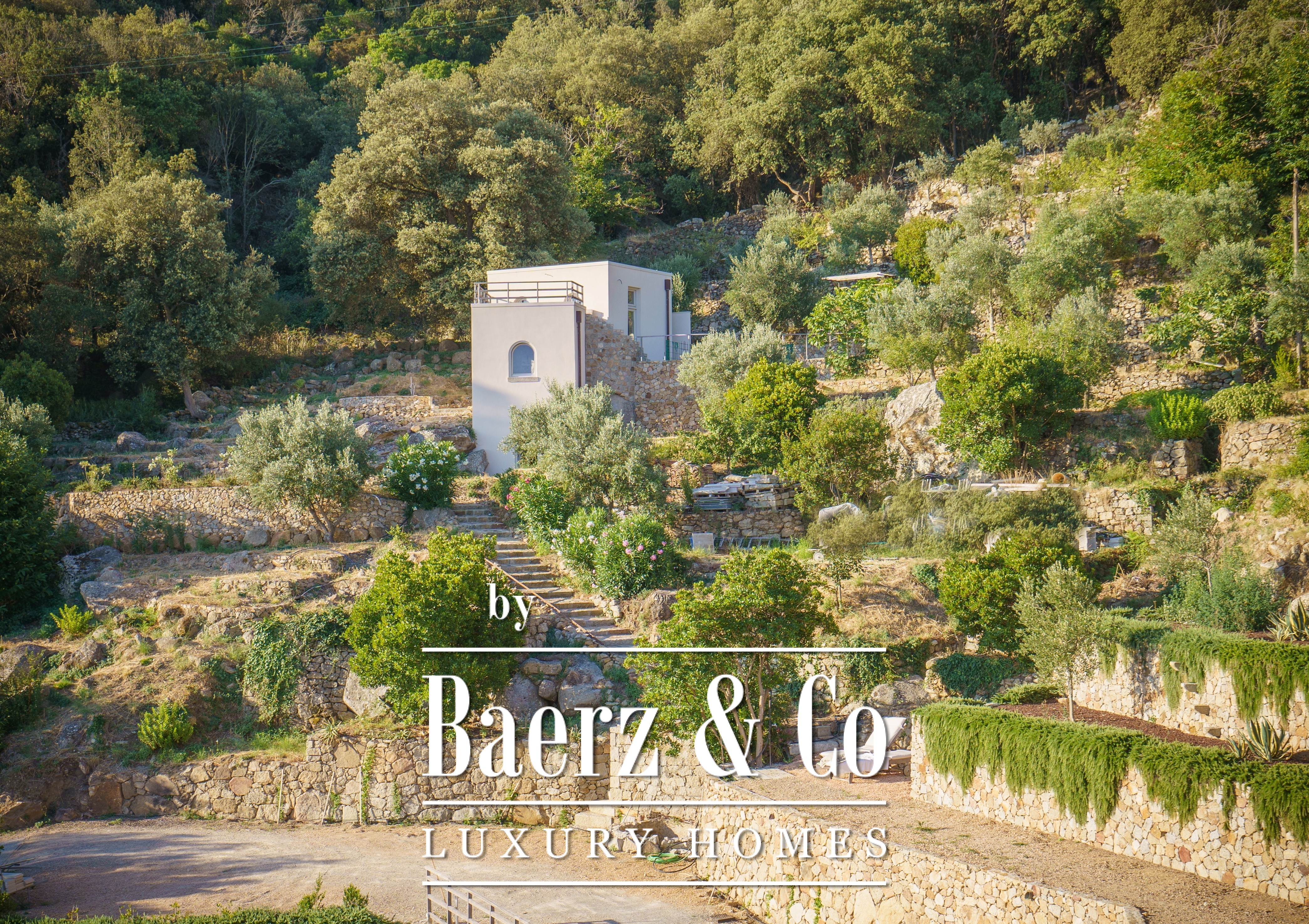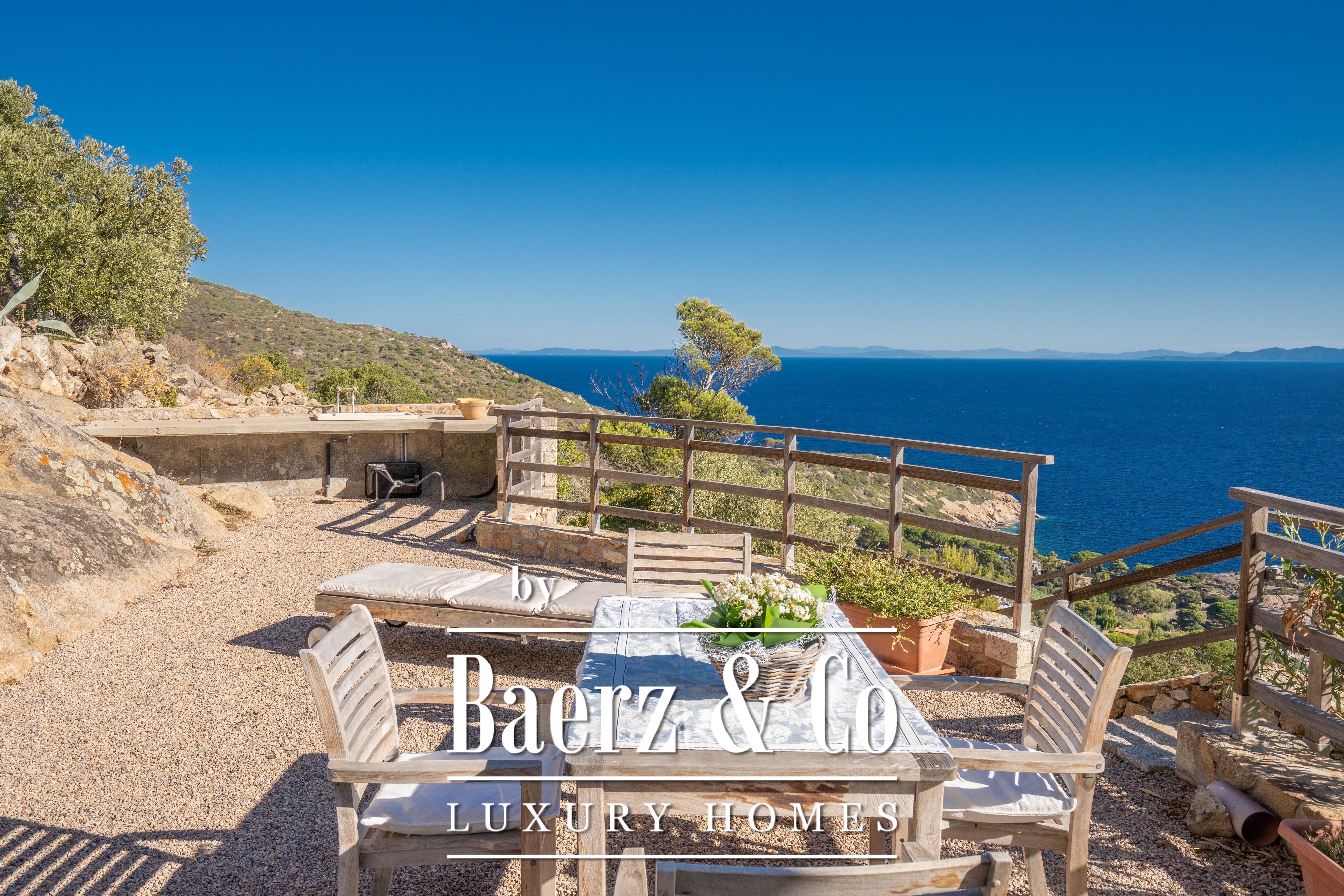 Villa Isola del Giglio with sea and mountain views is a real estate complex set on the east coast of the island, presenting 470 m² of living space. This distinctive property comprises a main villa linked by a walkway to an adjacent structure, together hosting four apartments. A fifth apartment stands independently in the gardens, newly completed in 2022. All five apartments are appointed with a double bedroom and private bath, and select living areas offer additional sofa accommodations. In total, the villa hosts up to 18 guests across carefully delineated interiors.