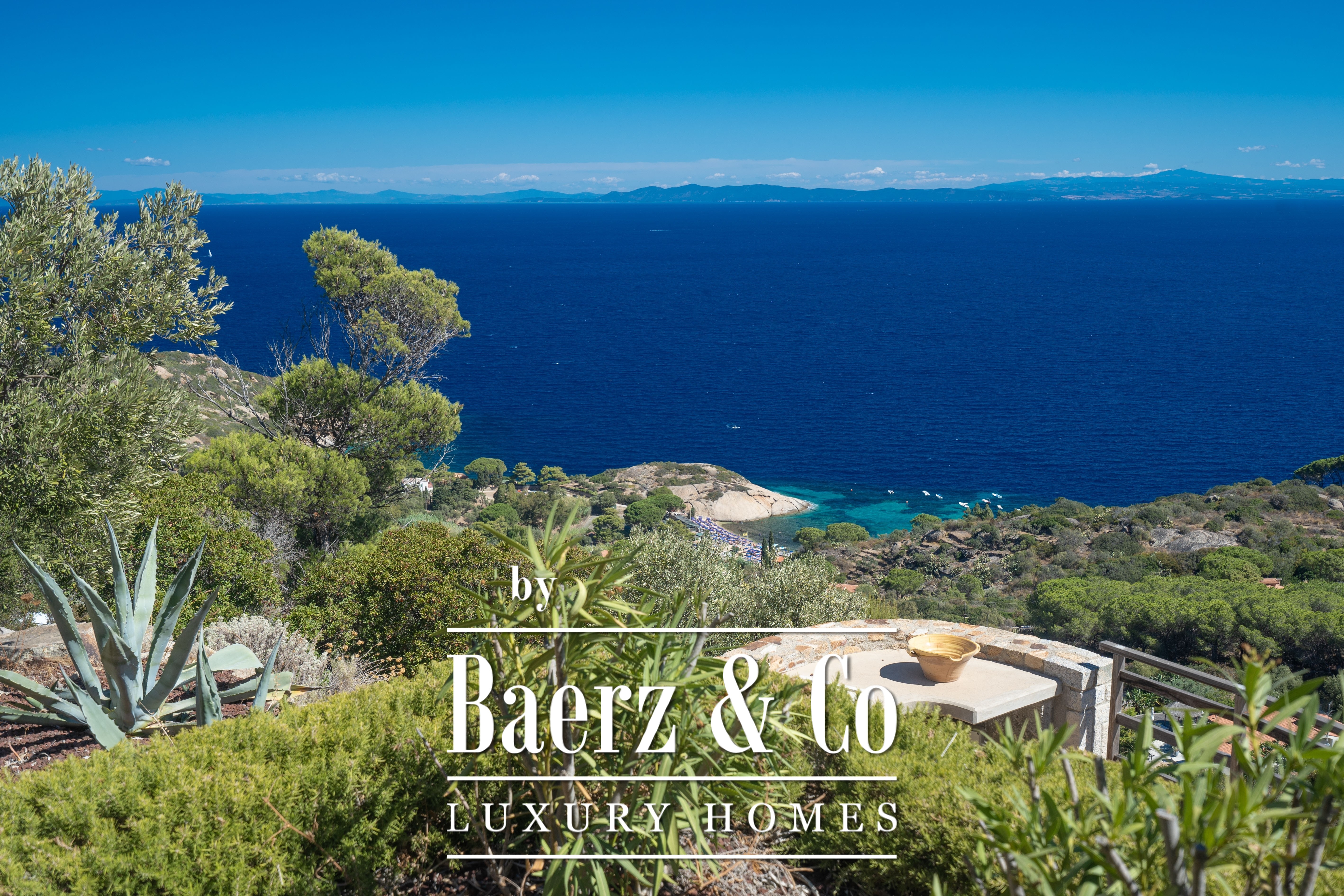 The original villa, designed in the 1950s by a noted architect, was restored in the early 2000s to preserve both authenticity and architectural integrity. Terraced gardens, Mediterranean vegetation and thriving olive groves envelop the 9,000 m² plot, affording calm and privacy. The main terrace looks out to vistas that trace the turquoise sea, Arenella beach, Monte Argentario and the island of Giannutri.