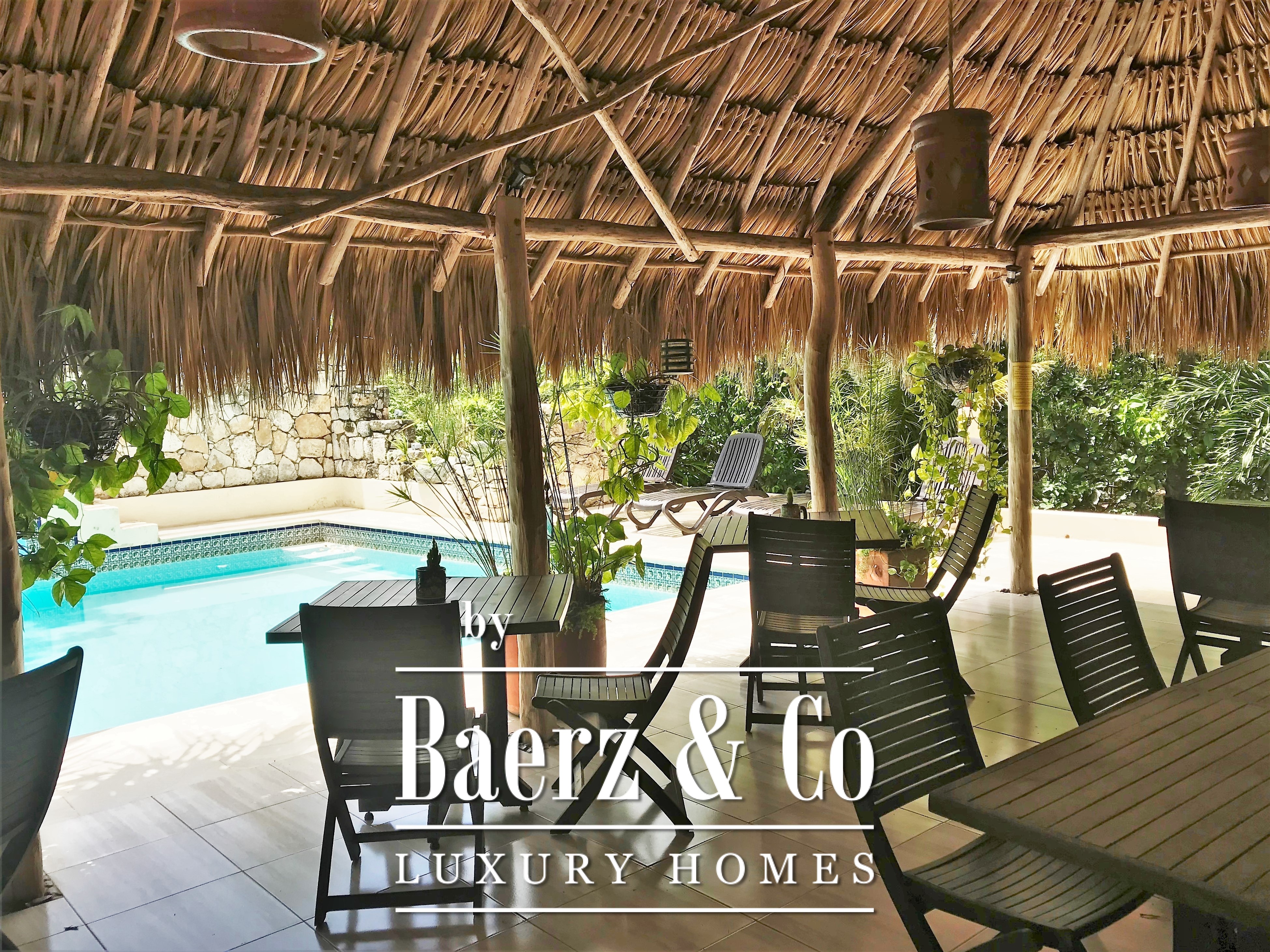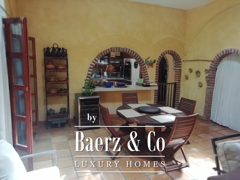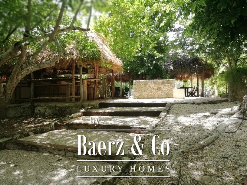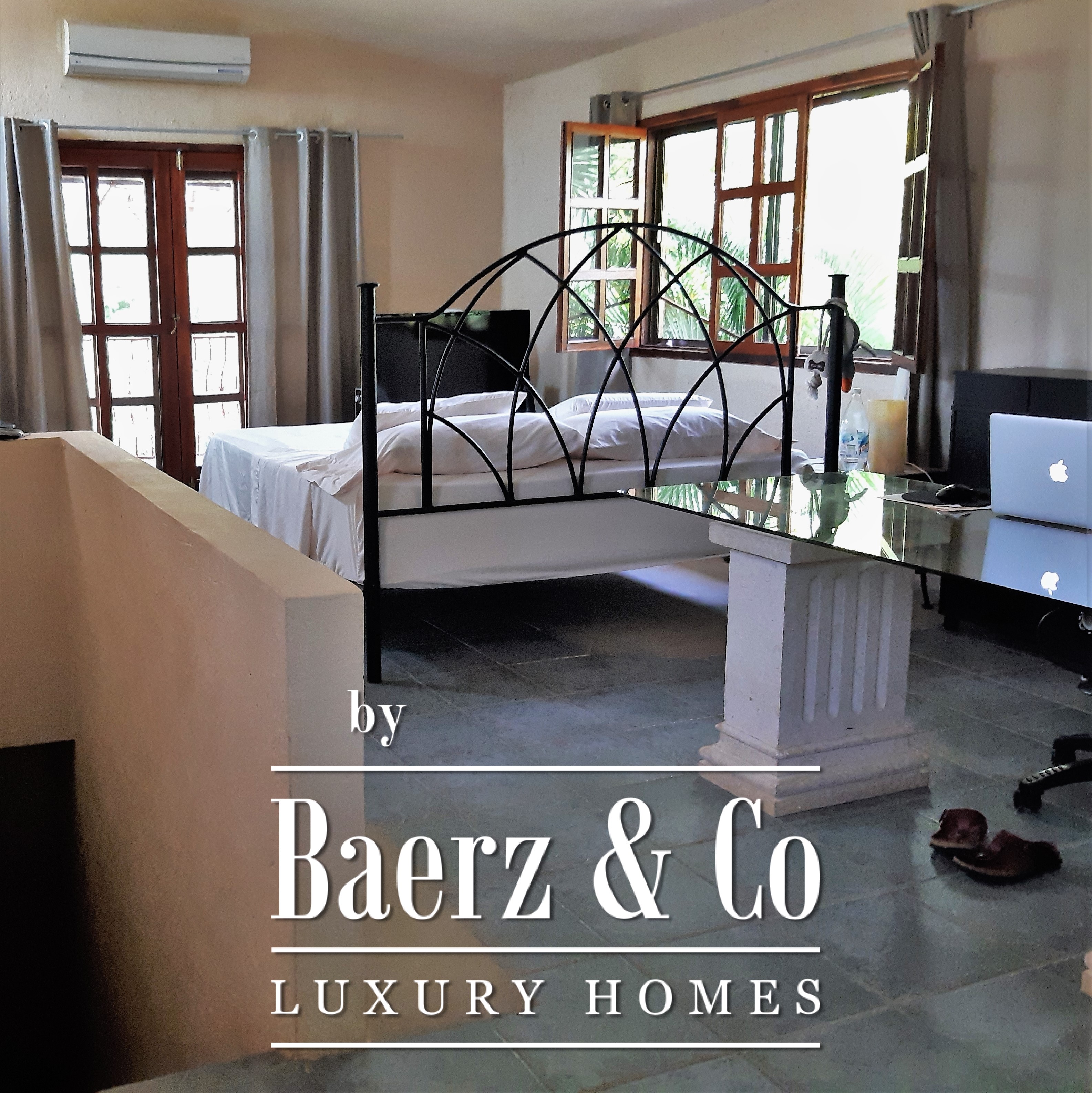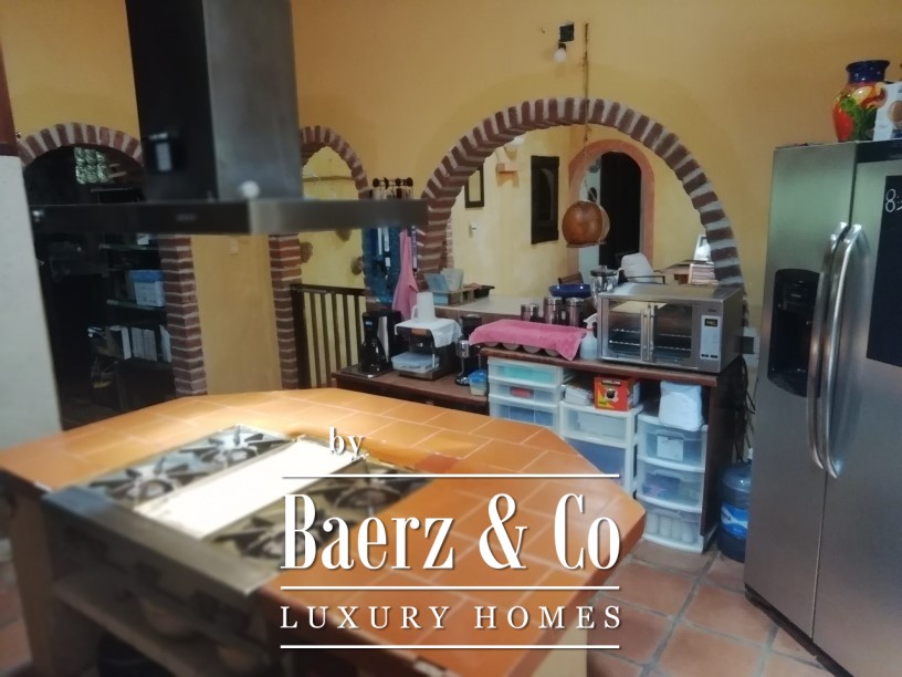 There is another fully equipped one bedroom house with nice living area, full kitchen, and huge bath that can be used for long-term rentals. The palm thatched palapa covers the lounge and bar that sits next to the huge, beautiful pool. The lush, natural, tropical garden is full of exotic fruit trees and beautiful plants. There are also six horse stables that can be easily converted to more rooms, a gallery, a spa, or whatever your imagination can dream up. A 13.6 KW solar system was recently added to cover the electricity for a large part of the property.