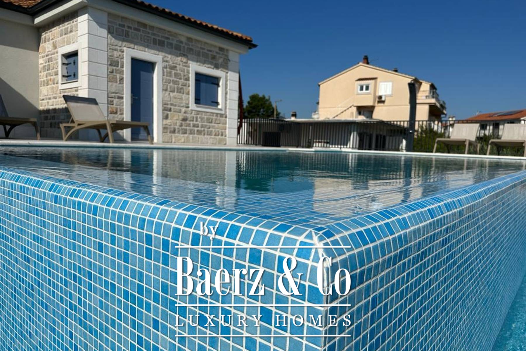 Townhouse Jelsa is a just completed residential building in Croatia offering both measured luxury and practical sophistication. The property spans 300 m² on an 819 m² plot, distinguished by its thoughtful division across two spacious floors. On the ground floor, a furnished apartment features a kitchen with dining room, living room, hallway, bathroom and two bedrooms, one with an en suite bath, lending privacy and comfort. The upper unit presents a refined flow with a hallway, kitchen and pantry, dining room, living room, bathroom and three bedrooms, two of which include their own bathrooms, extending privacy further.