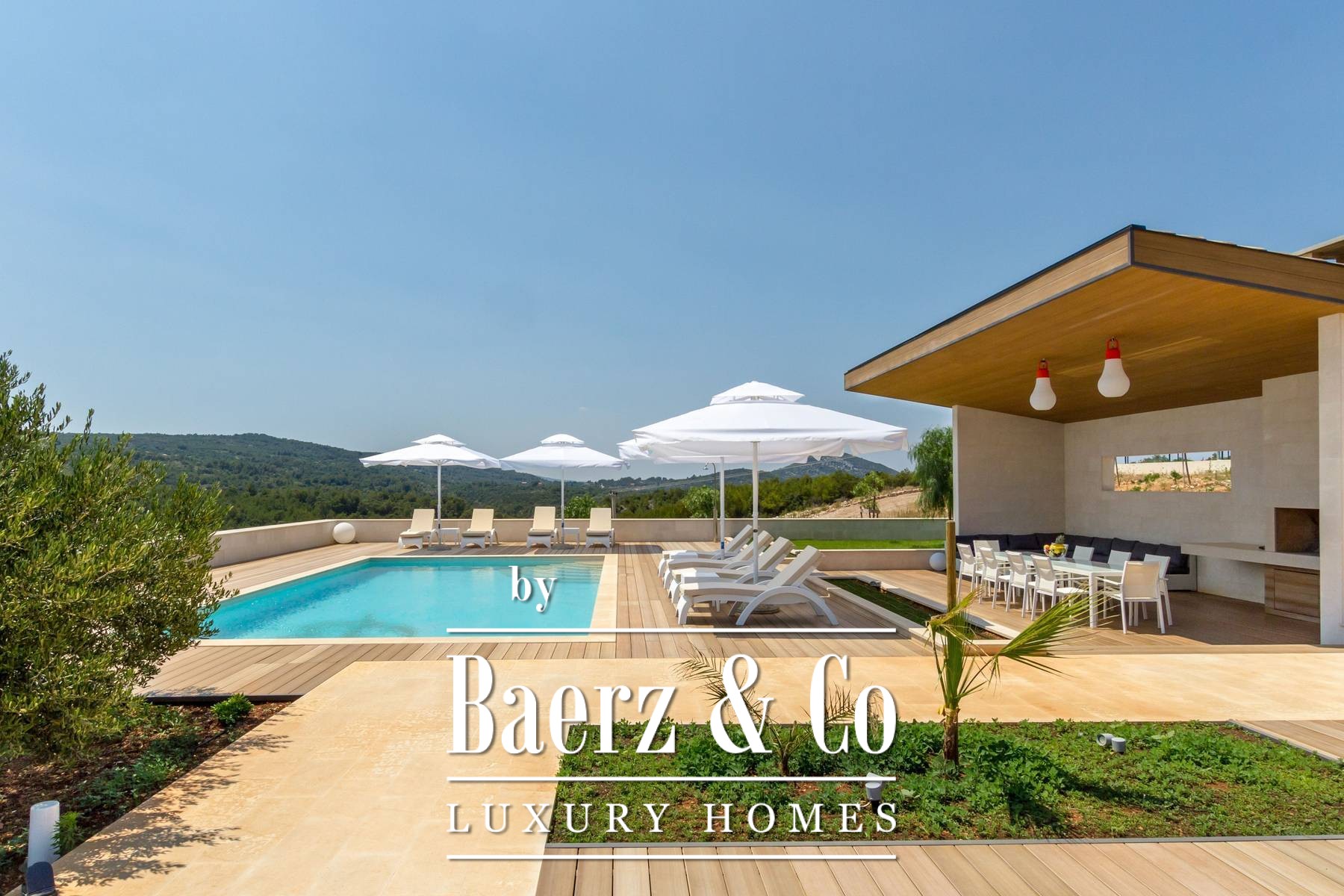 This amazing villa was built in 2014 and is located in a secluded location in the village of Zastražišće on the island of Hvar. It is positioned on a plot of 33,409 m2, while the total land area is 148,083 m2. In addition to complete peace, a view of the sea and untouched nature, it also offers an outdoor pool, tennis court, barbecue, hot tub, wine cellar, sauna and gym - in short, everything you could want for complete rest and enjoyment.The ground floor of the building consists of a living room, a kitchen with a dining room,
