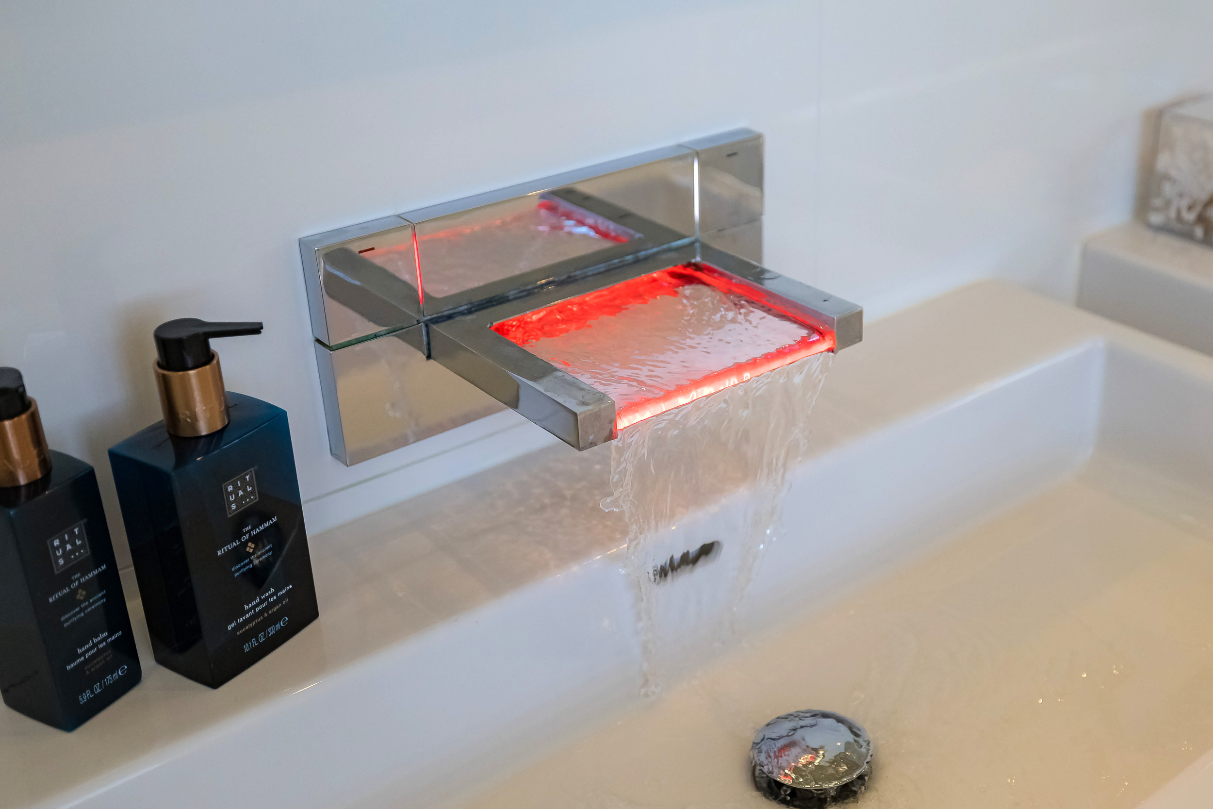 The live-in kitchen is a dream for the cooking enthusiast. Equipped with a central sink island and high-quality built-in appliances, this kitchen is perfect for cozy dinners or long evenings of dining.