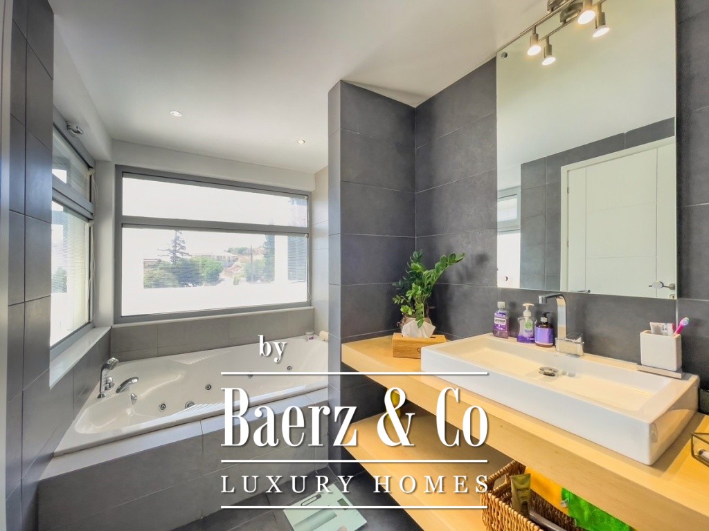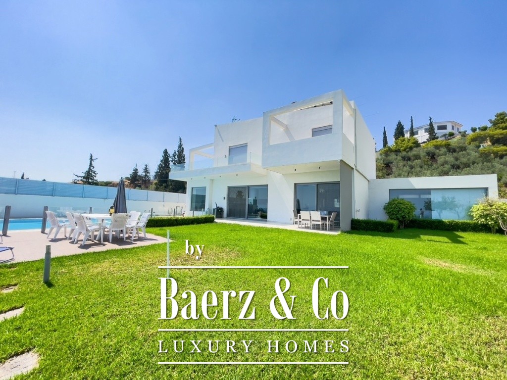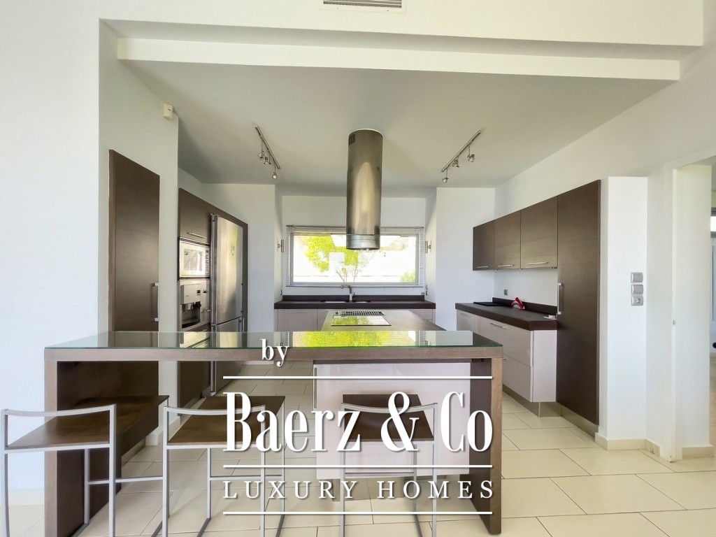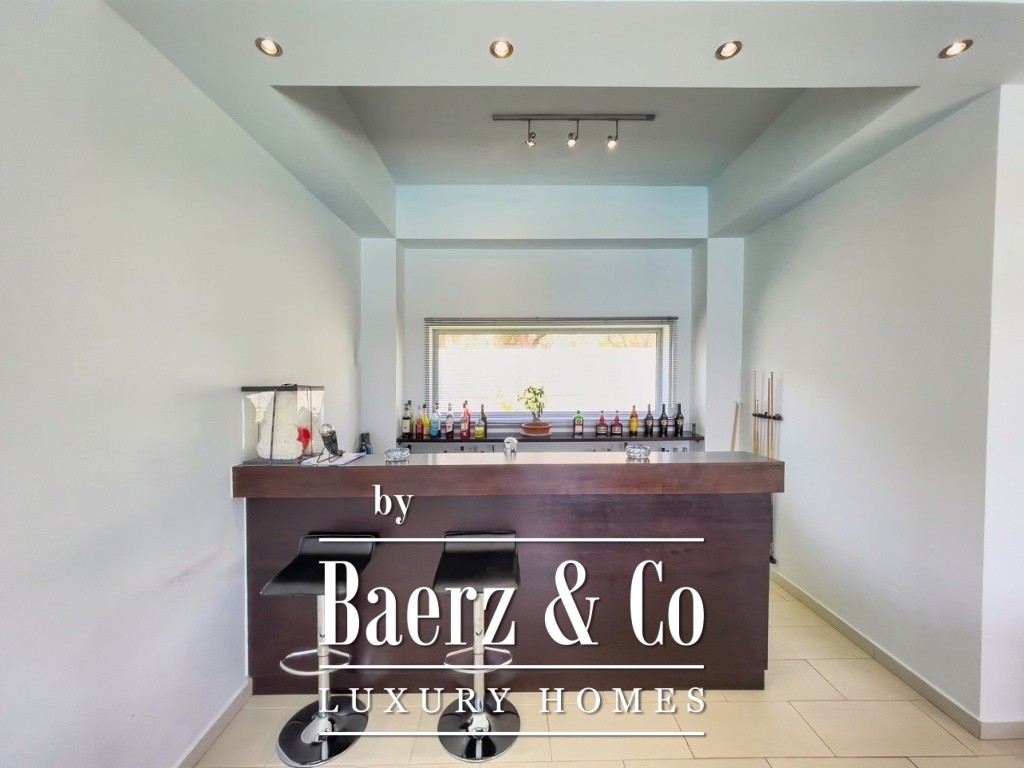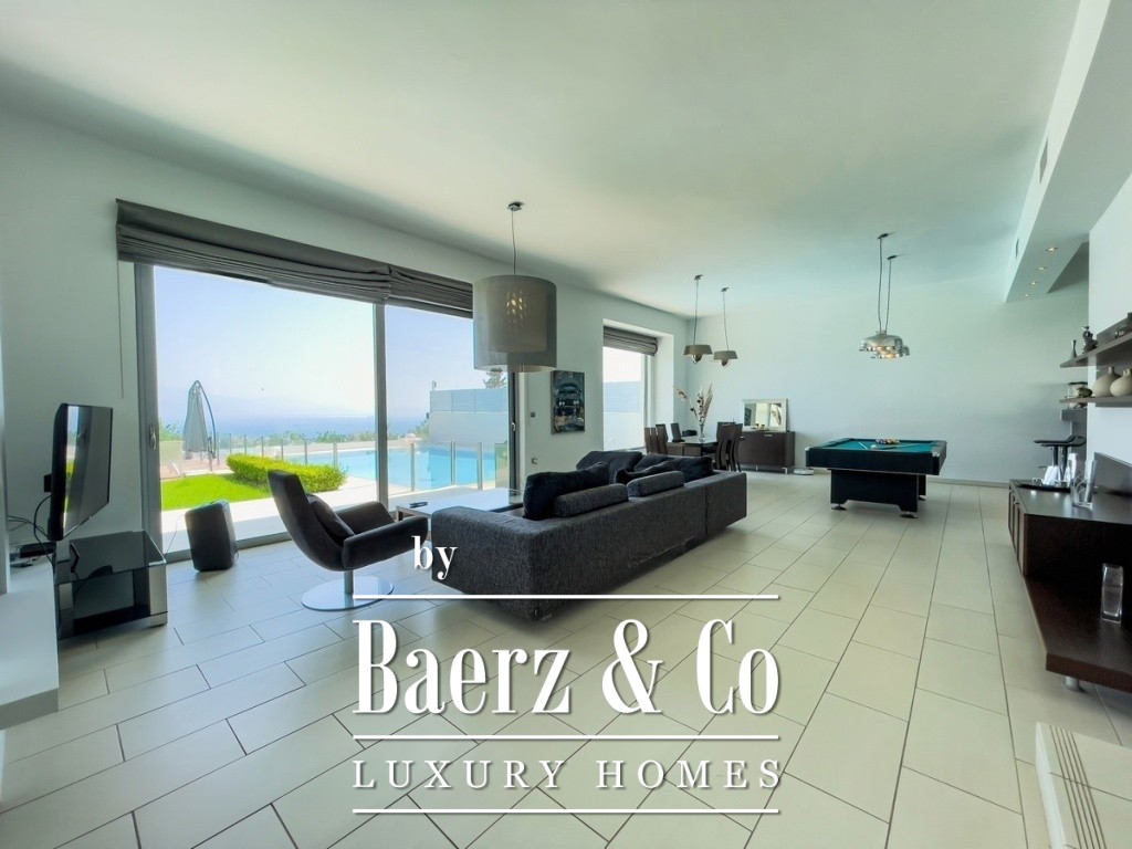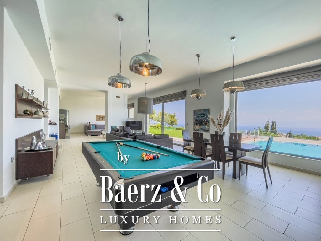 residence is equipped with aluminum window frames with double glazing, solar water heater and boiler connected to the central heating system, alarm, security doors, heated swimming pool 59m²/ft², Heating-Cooling: mixed underfloor system on the ground floor and on the 1st floor and radiators in the basement, central cooling system with air ducts and local units, smart home system for managing the whole house from a computer, Internet and tele voice in all areas (the networks end up in a central patch panel in the computer room), installation of 5kW photovoltaics, bar, billiards, jacuzzi, gym, energy fireplace, Petco kitchen with SMEG appliances and two covered parking spaces. This beautiful residence offers unobstructed views of the garden and the sea from almost all areas of the ground floor and first floor. It is only 1.7km/1mile from the center of Xylokastro, 900m/3000ft from the sea and only 1 hour and 30 minutes from Athens International Airport.