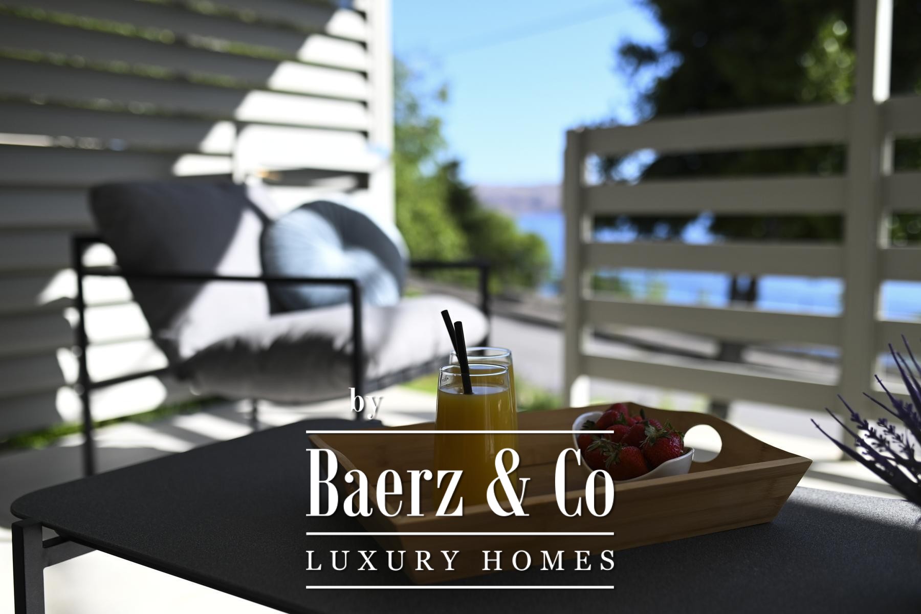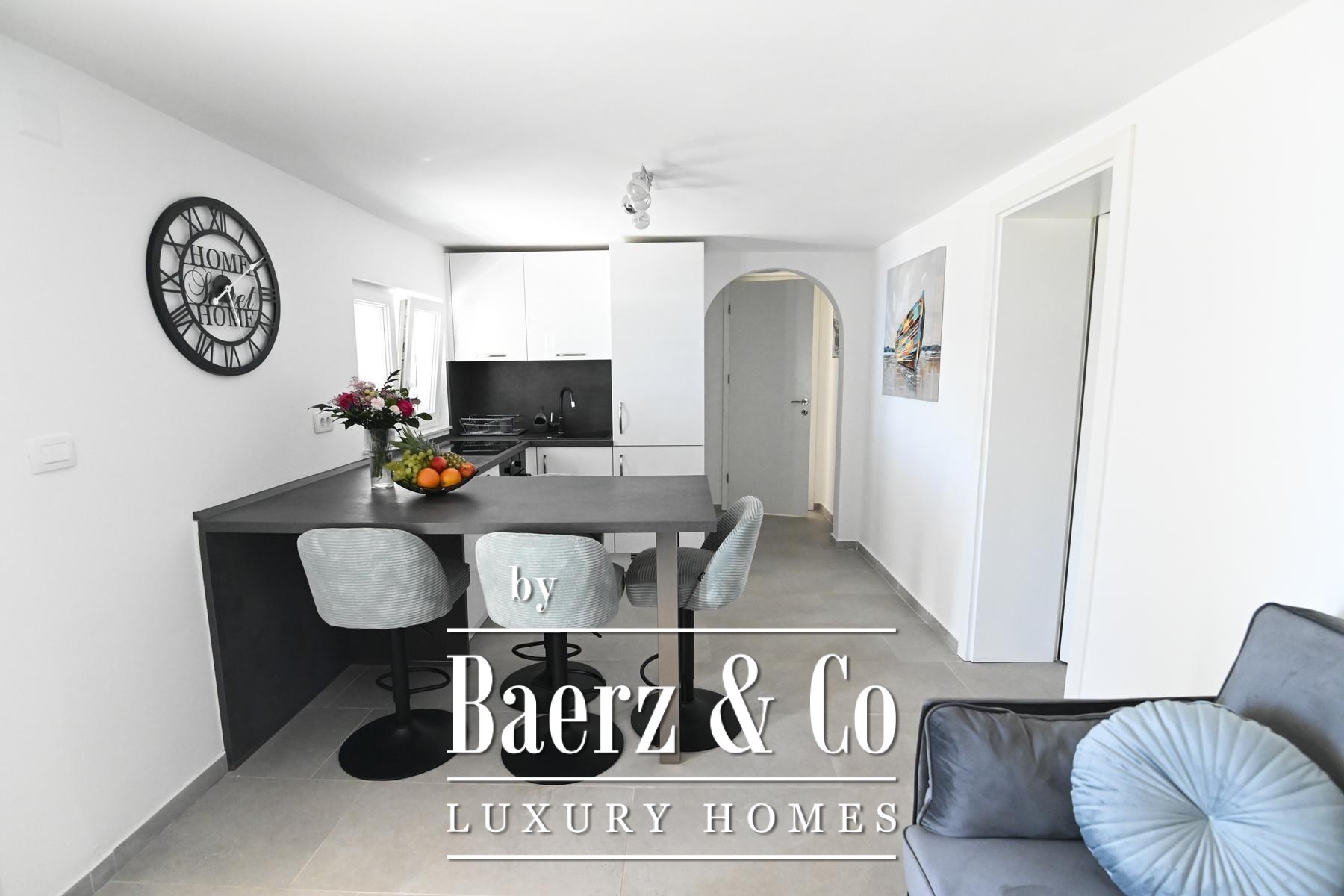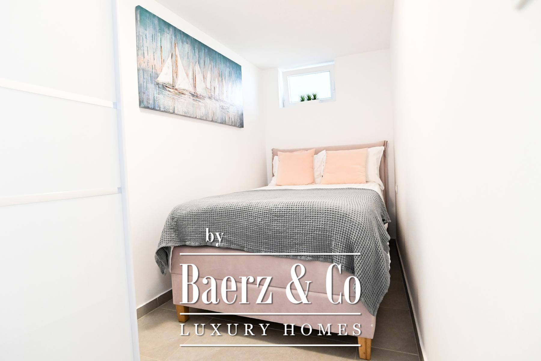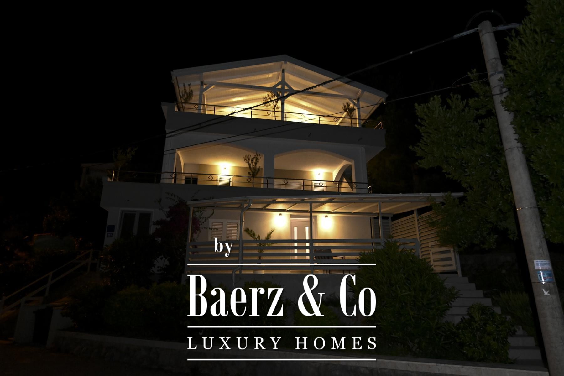 Outdoors, privacy is assured with secluded sunbathing zones and a saltwater pool, complemented by a wellness whirlpool on the upper terrace. A separate 40 m² apartment with its own entrance provides versatility for guests or extended family. Three private parking spaces and two built-in kitchens underscore practical luxury, while the villa’s proximity to the pebble beach creates an effortless transition from indoor calm to coastal rhythm.