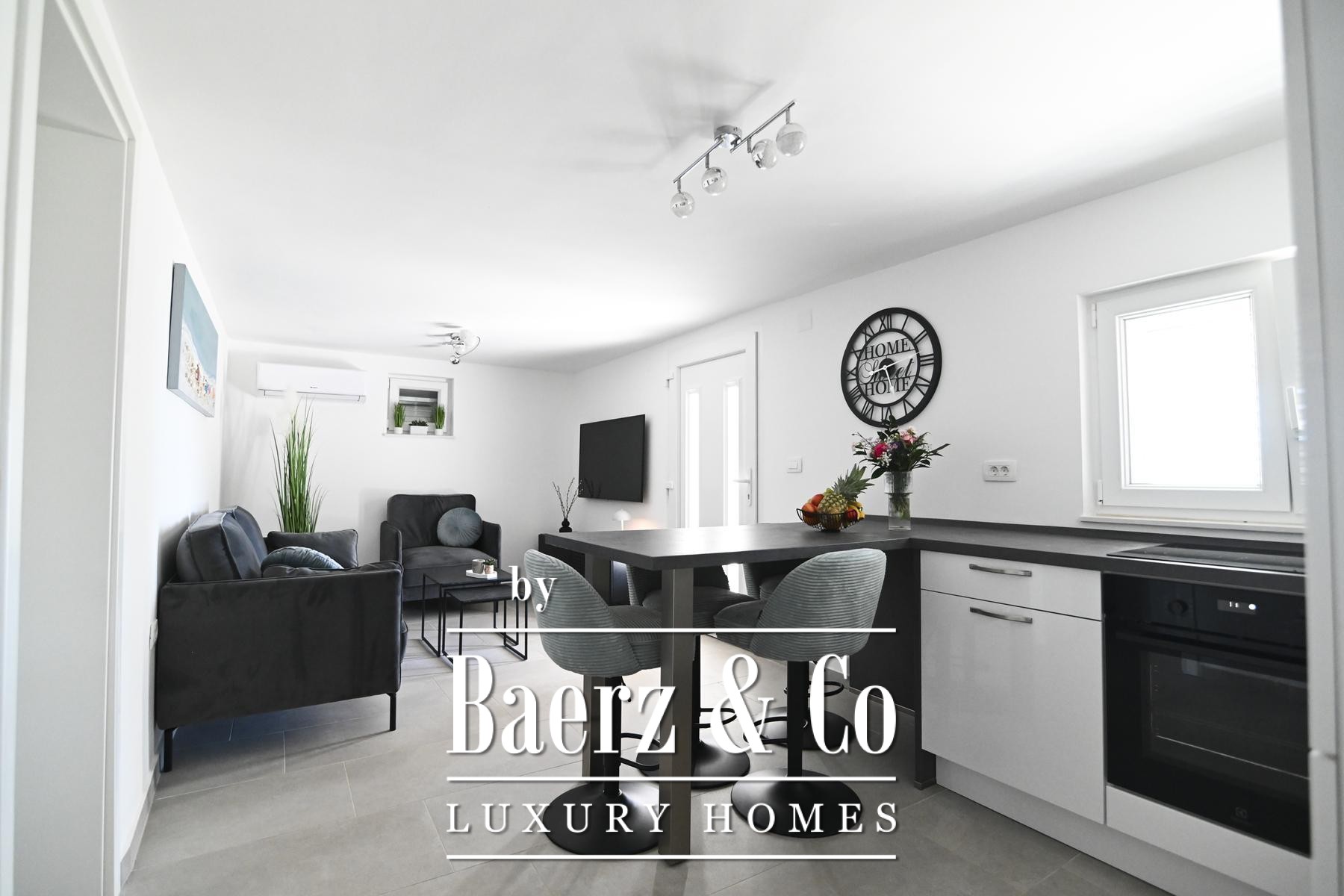 Townhouse Karlobag commands a prime setting just 20 meters from the Adriatic, seamlessly blending modern design with natural grandeur in North Velebit nature park. This villa spans 240 m², set on a 480 m² plot, offering five bedrooms and five bathrooms. The main residence invites you through private entrances to refined living areas, where expansive terraces frame views of the sea and Pag Island. Large-format ceramics, new facades, and contemporary finishes follow a comprehensive renovation completed in 2020, elevating the architecture and comfort.