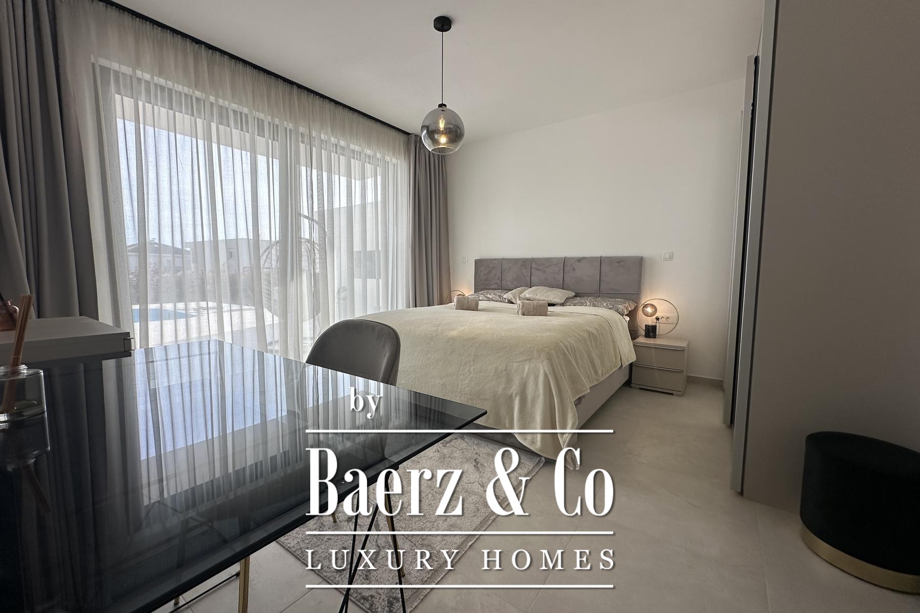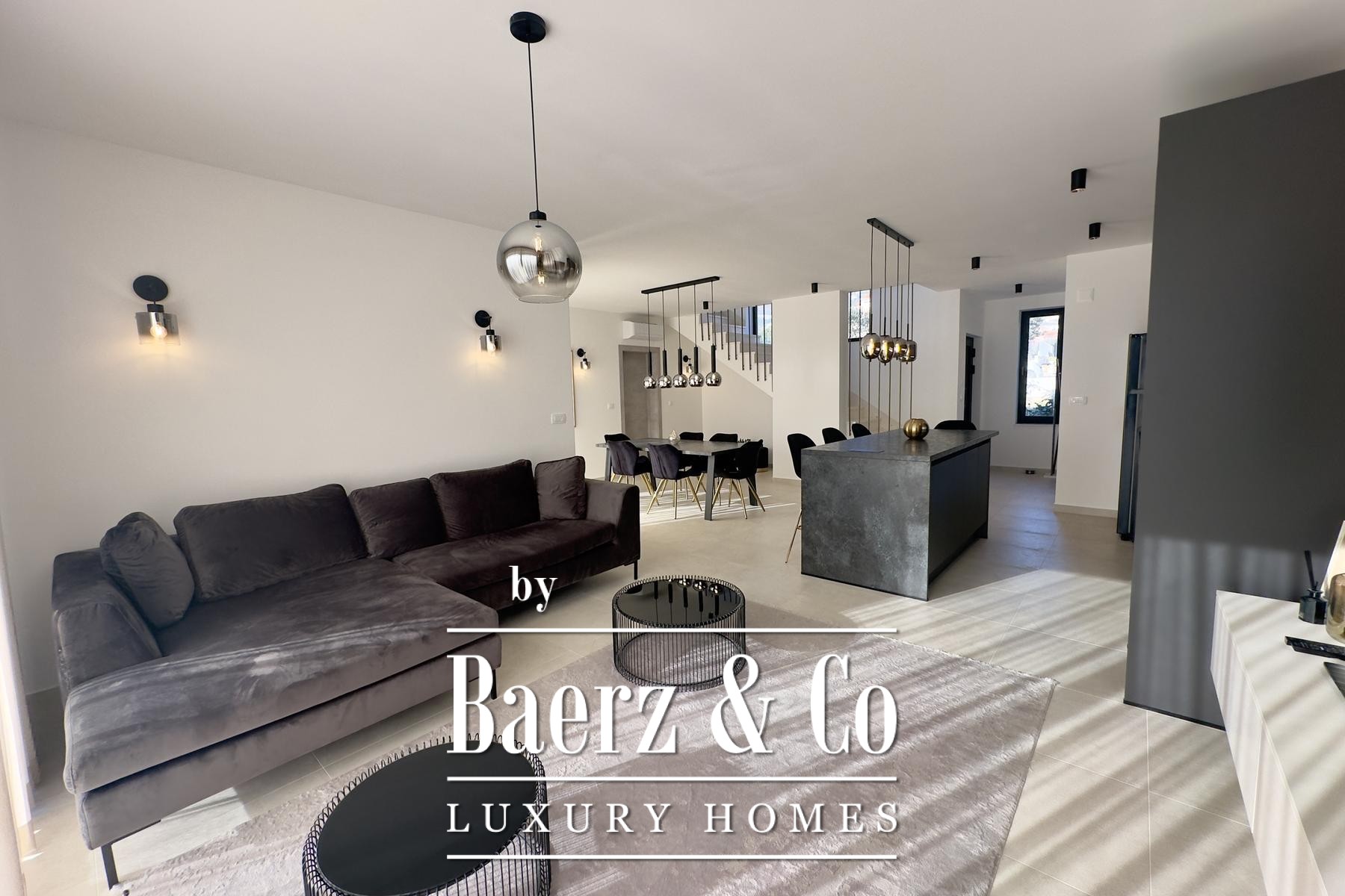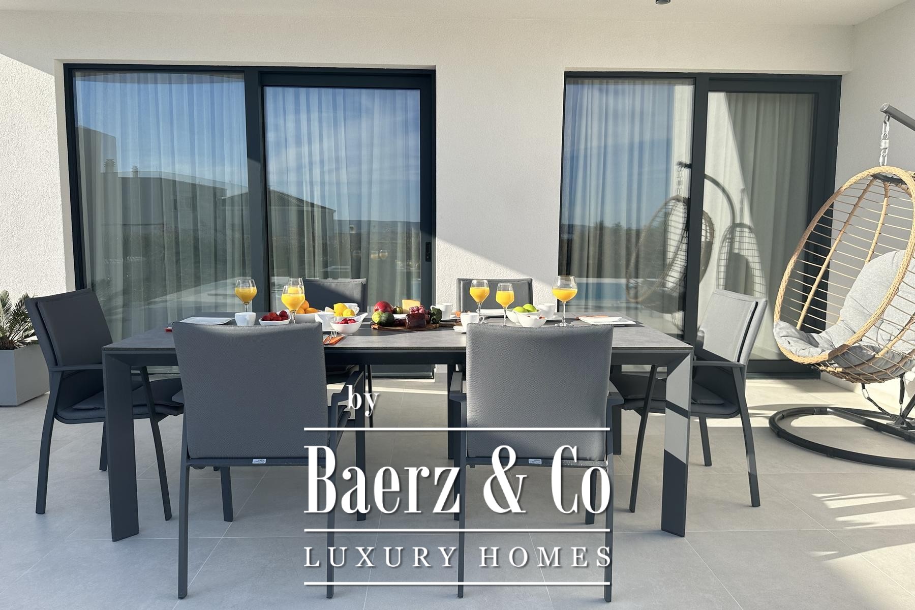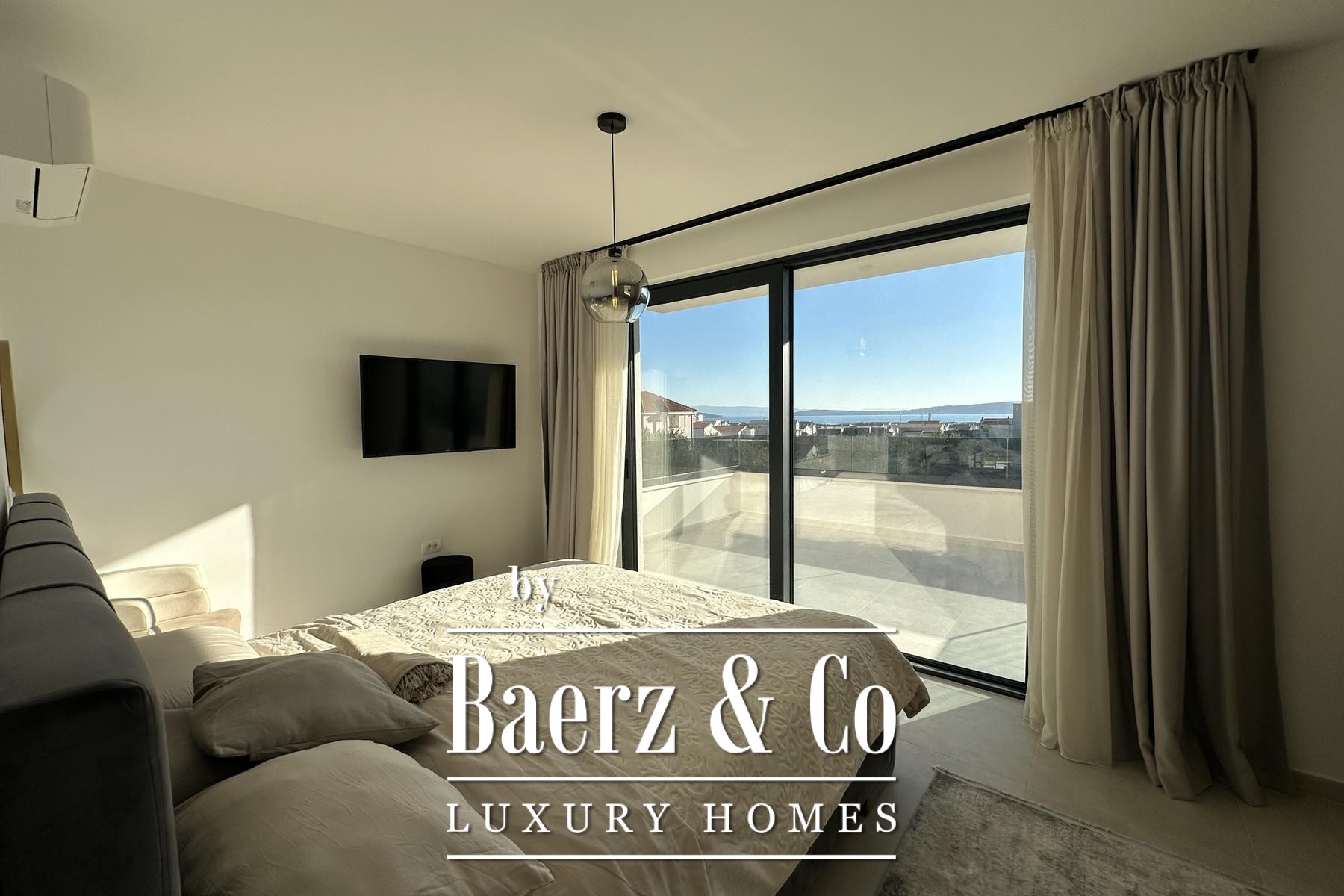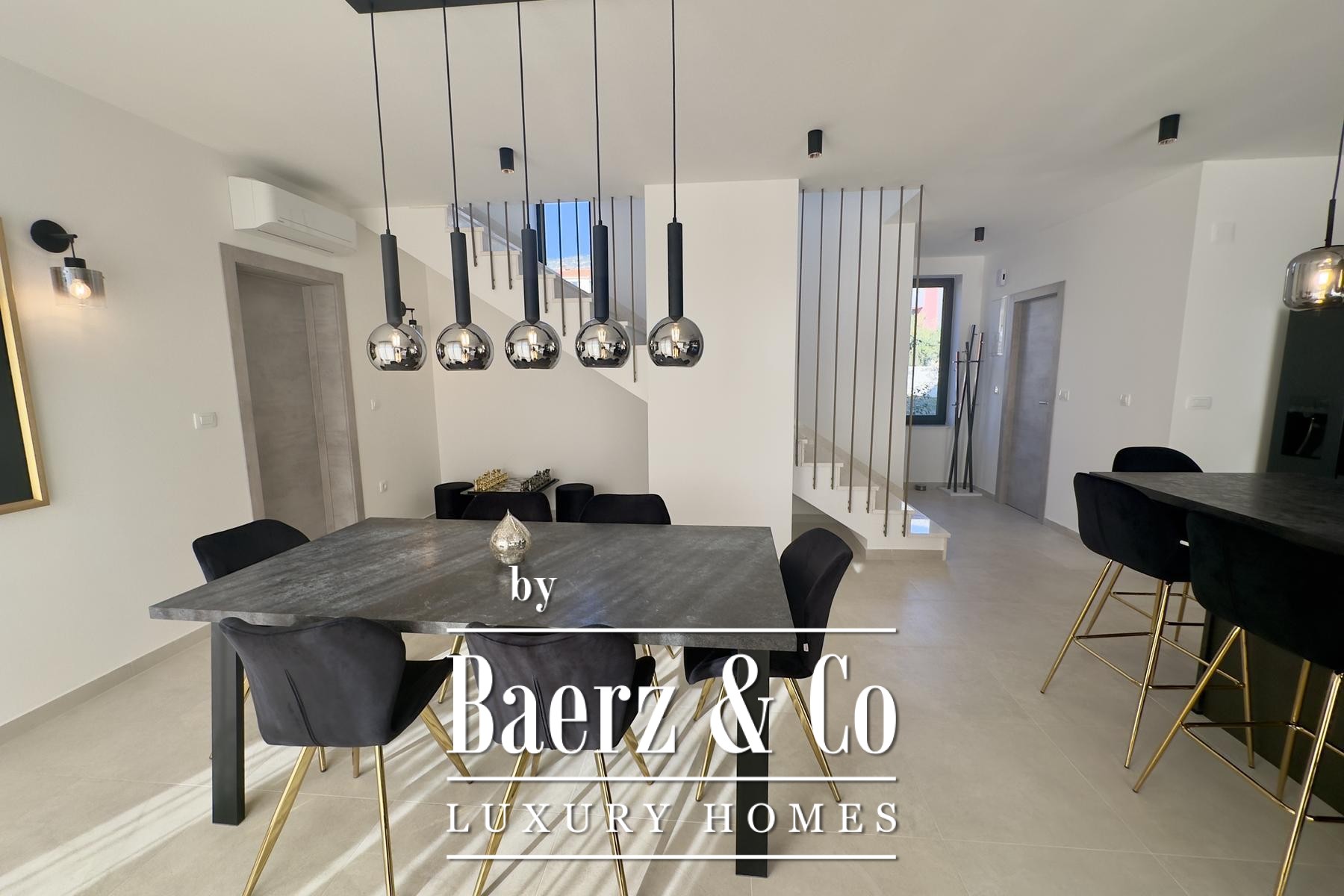 Townhouse Kaštela defines contemporary Mediterranean living with sea views, offered in a refined 245 m² villa set on a generous 938 m² plot. This recently completed townhouse Kaštela features three bedrooms and three bathrooms, its layout offering clarity and volume across two levels. On the ground floor, broad open-plan spaces form the core: a carefully crafted designer kitchen, a dining area and a living lounge that flow towards a terrace overlooking the swimming pool and sun deck. One en suite bedroom, guest bathroom and laundry complete this level, enabling ease and practicality.