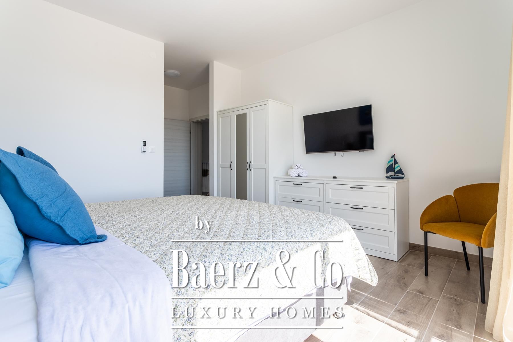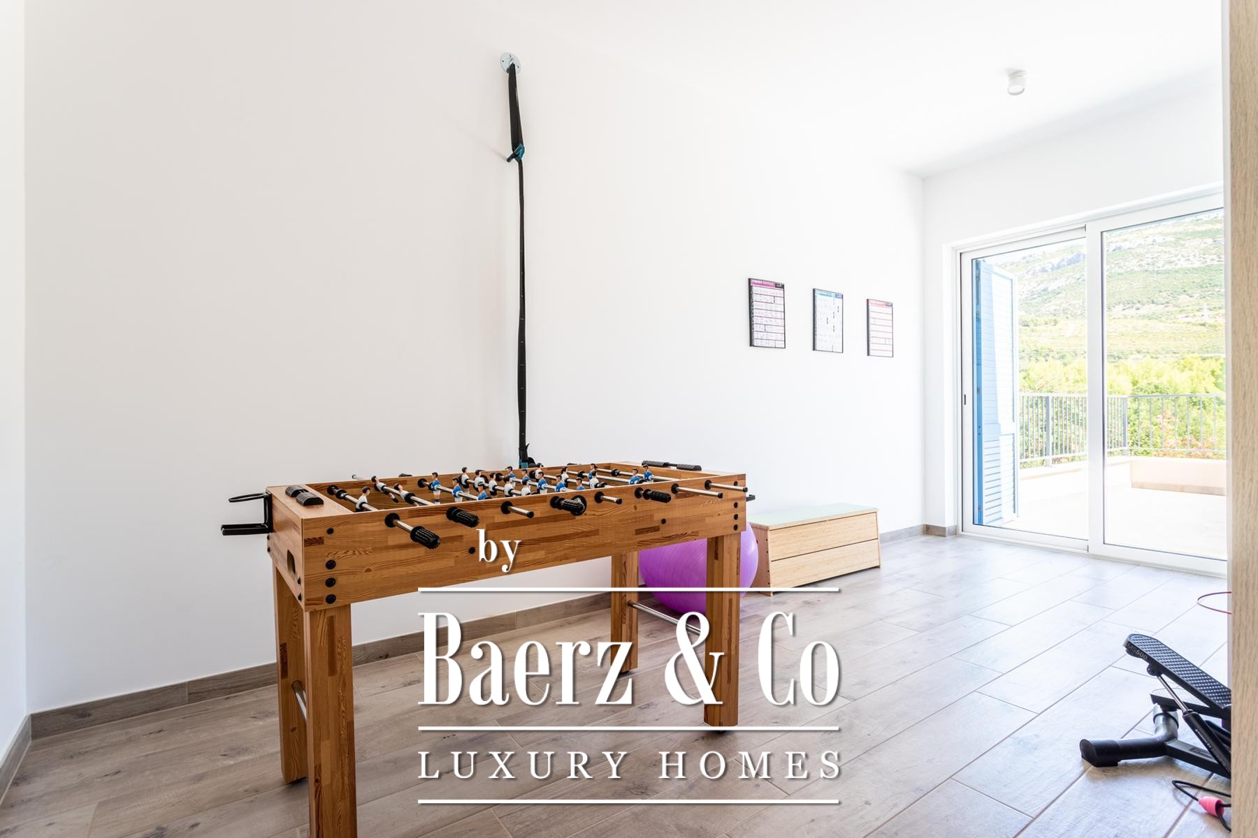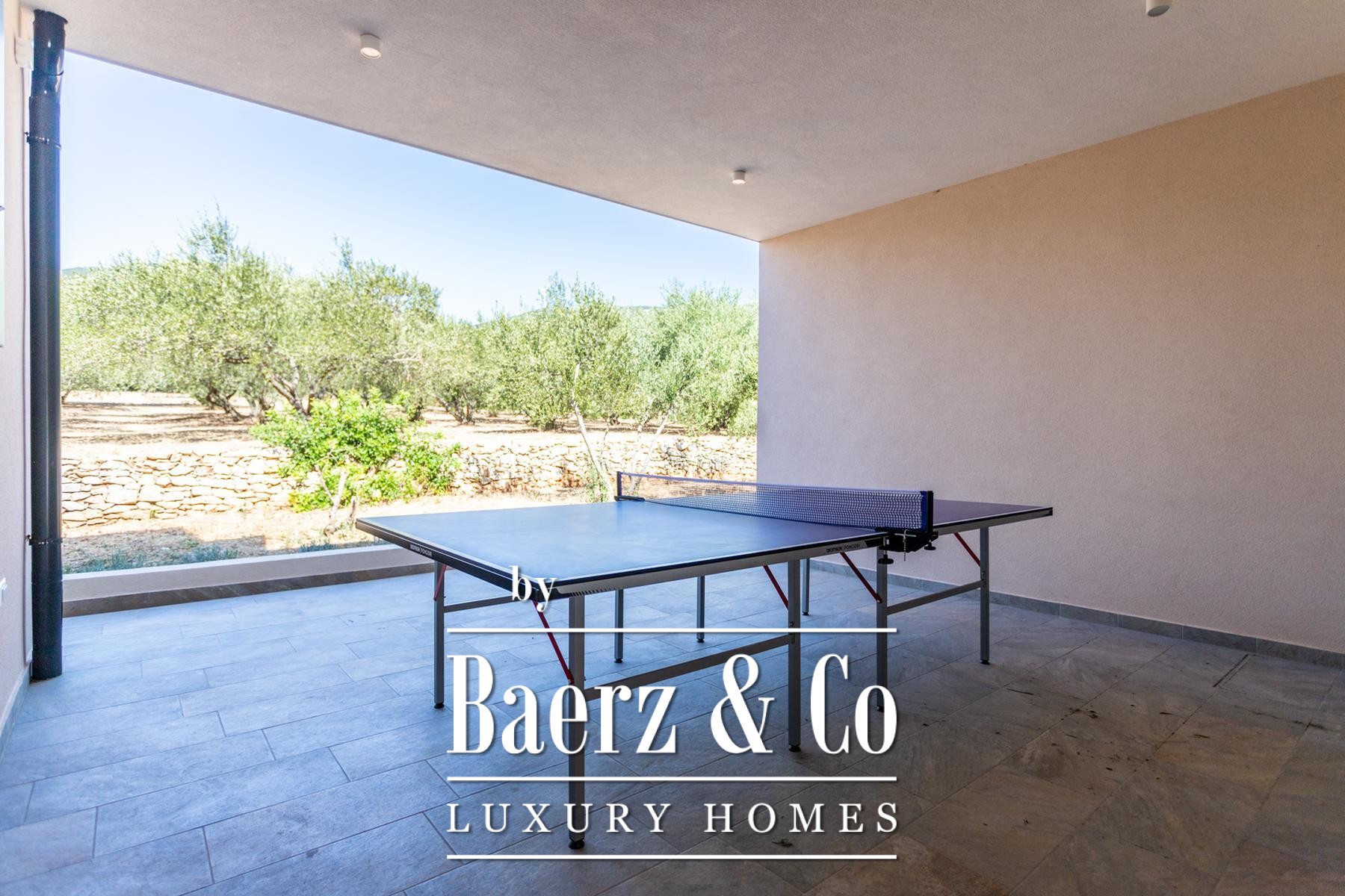Air conditioning in each room ensures year-round comfort. Outdoors, a barbecue, gathering space, table tennis, and garden complete a balanced lifestyle. Fully furnished and ready for immediate occupancy, this villa for sale in Kaštela balances privacy, function, and Mediterranean clarity.