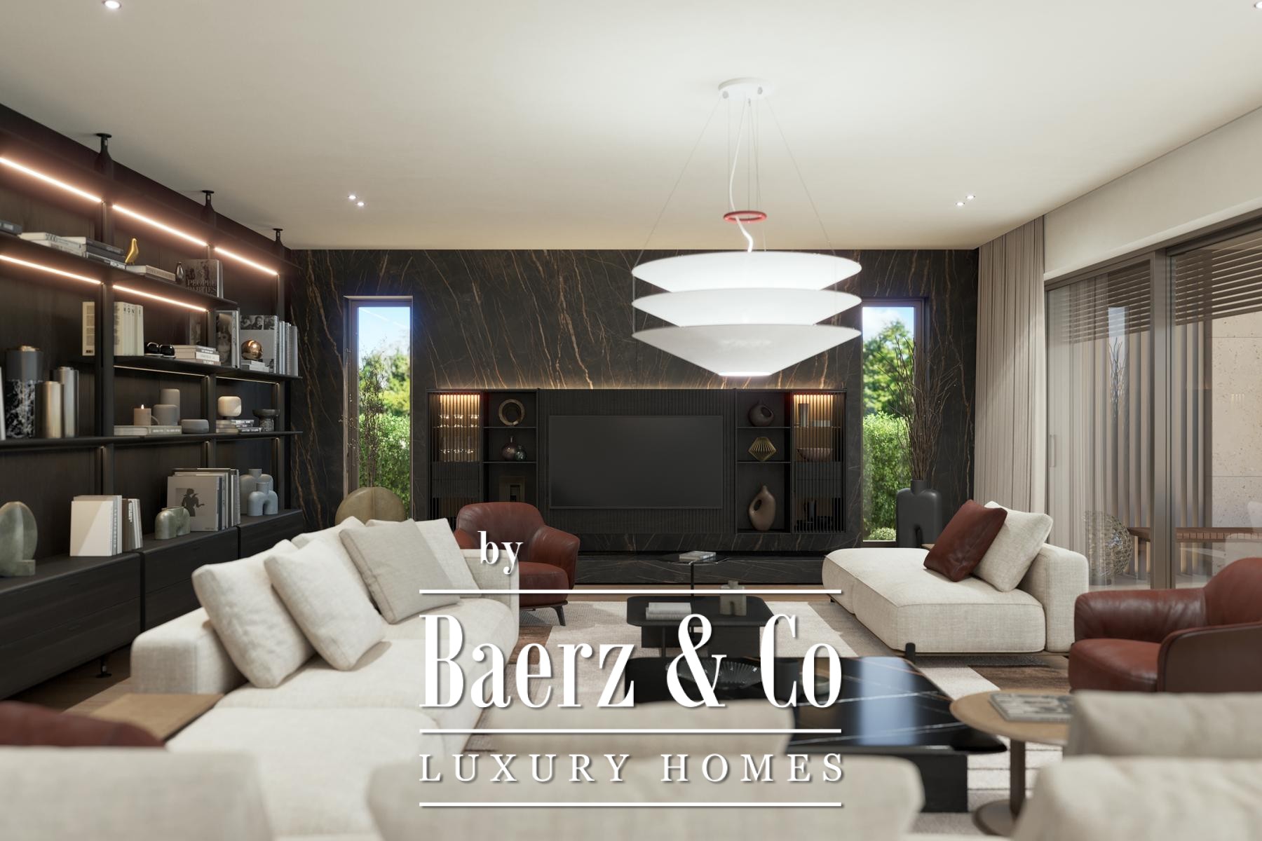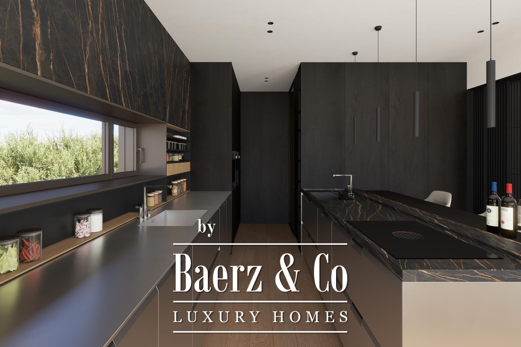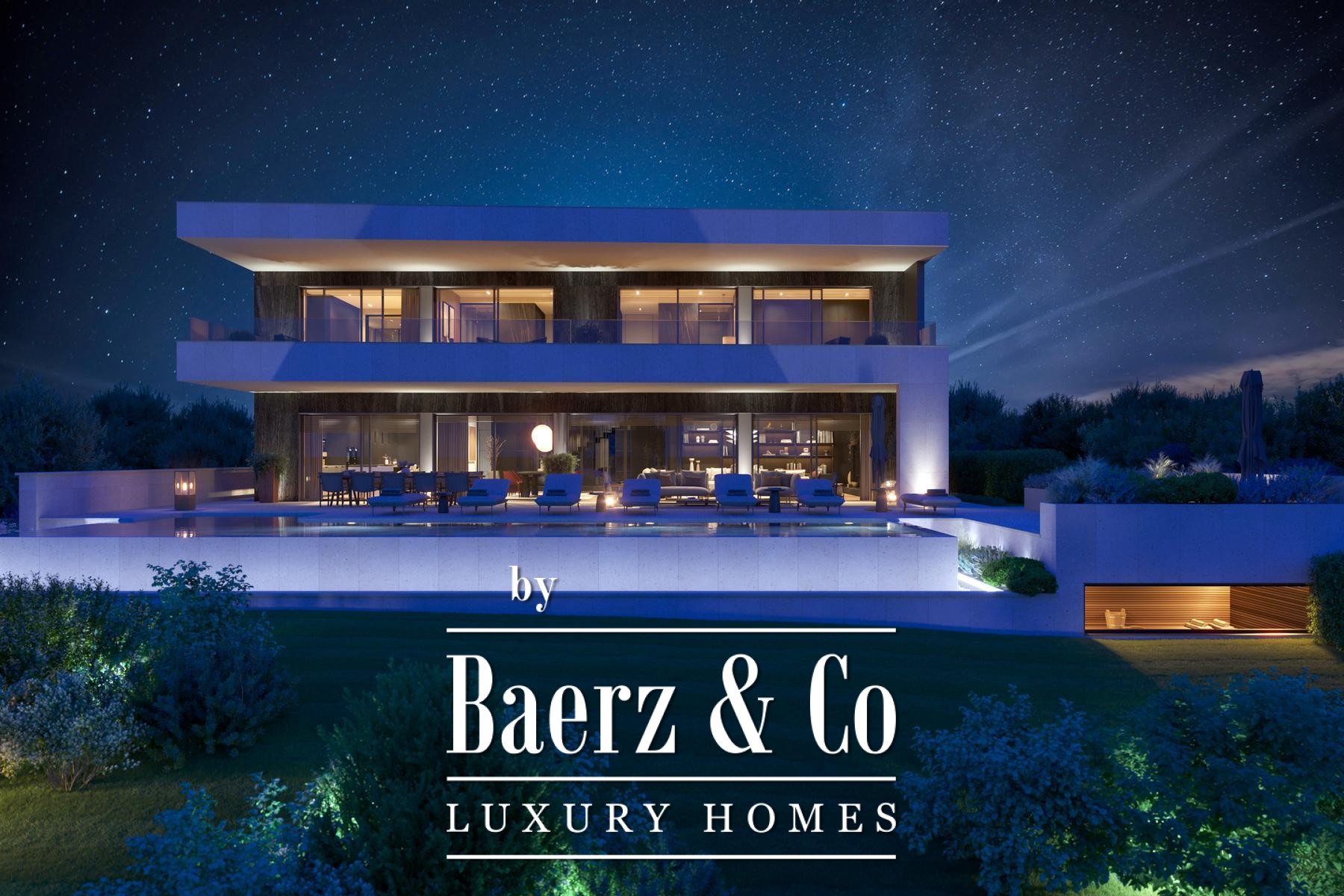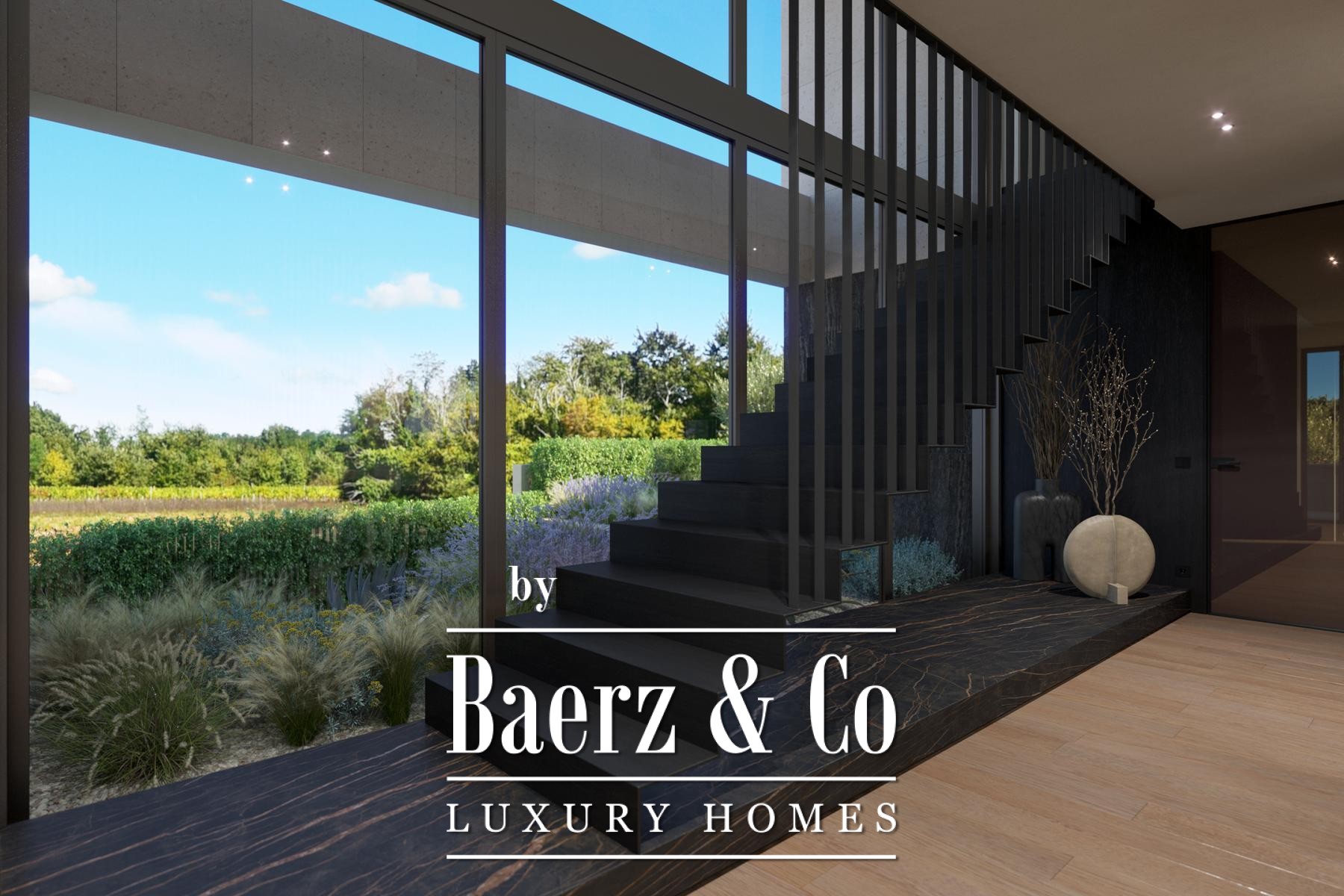 The ground floor introduces a fluid connection between the kitchen, dining, and living spaces. Expansive glass opens onto a covered terrace, sunbathing area, and a 67.04 m² infinity pool. Nearby, a sauna offers a quiet retreat, while the well-proportioned guest spaces remain perfectly suited for refined entertaining.