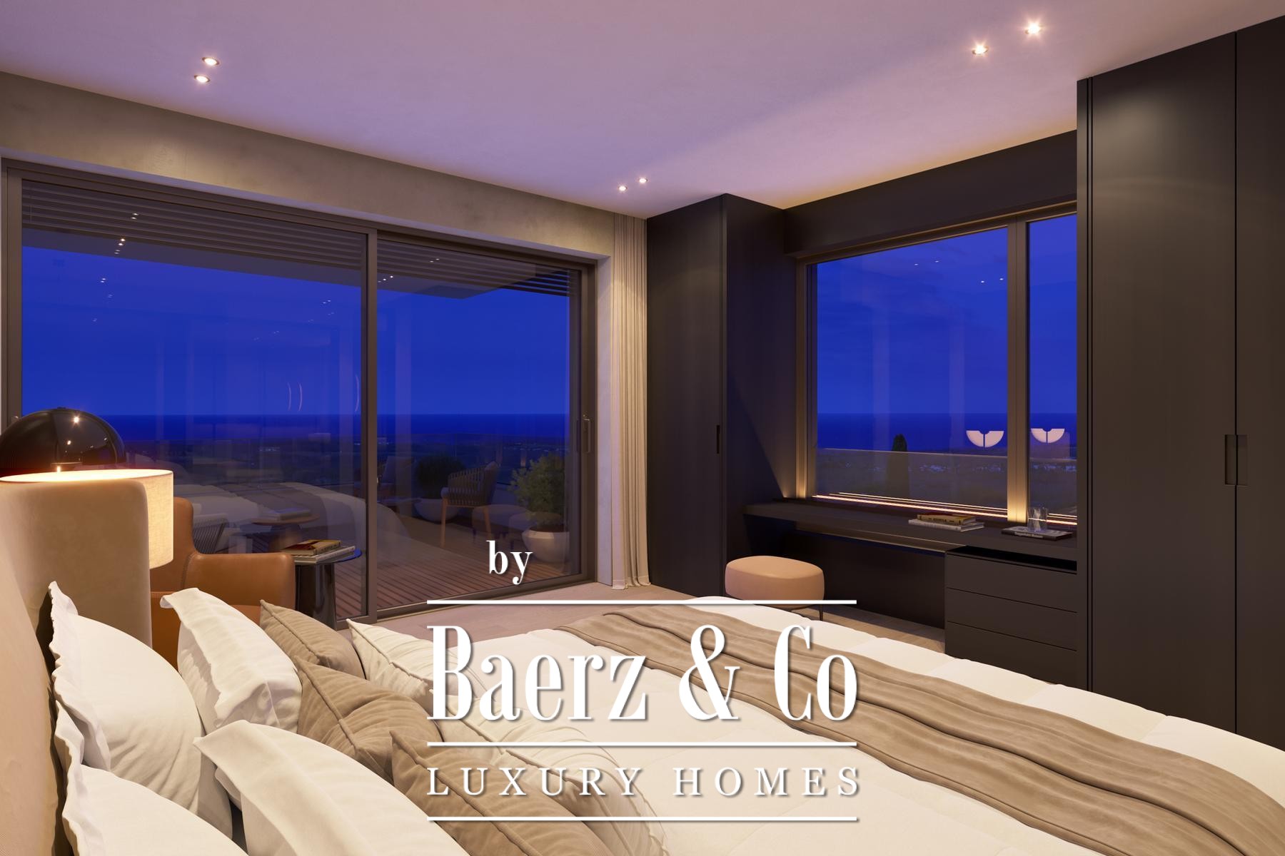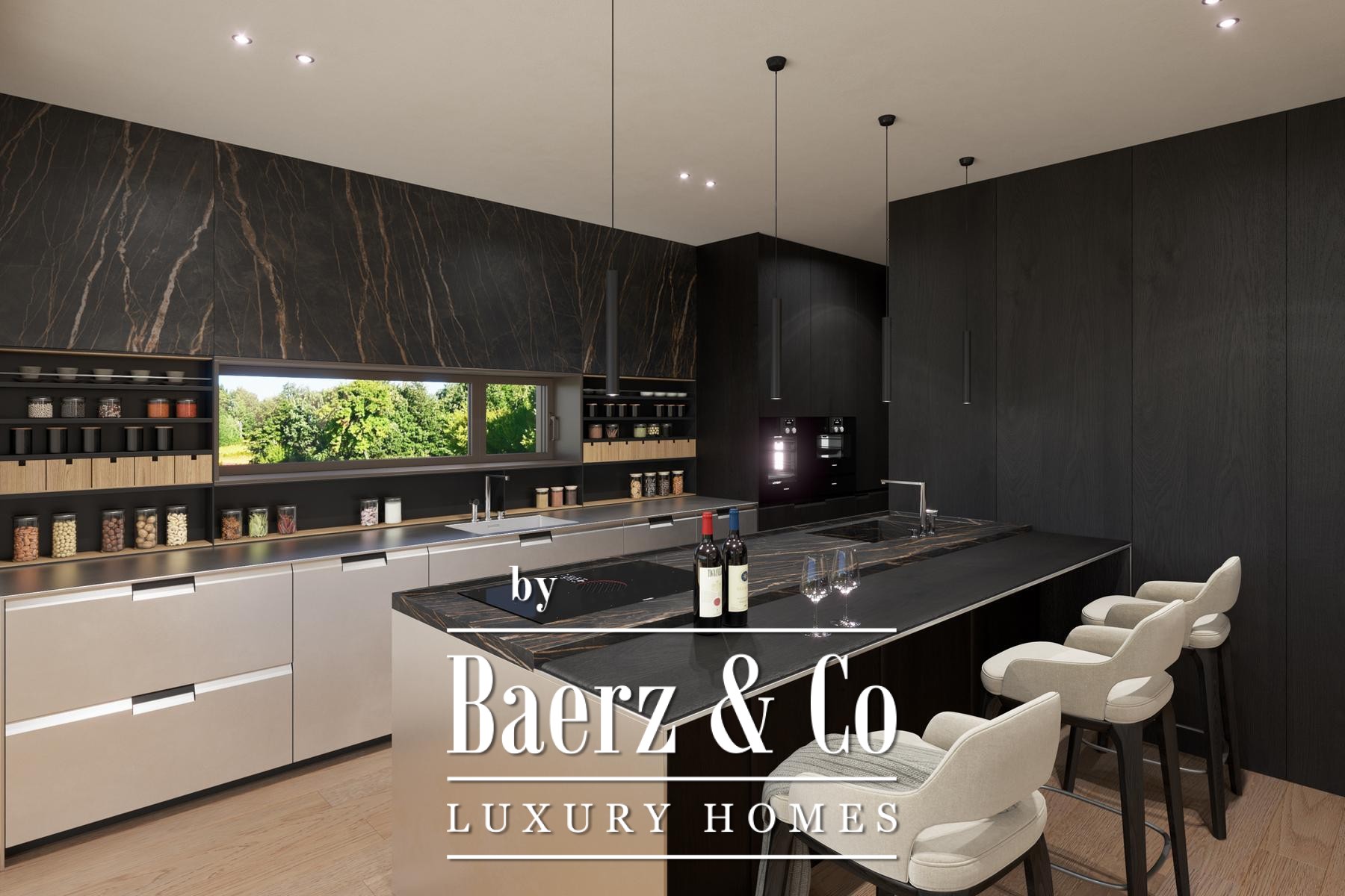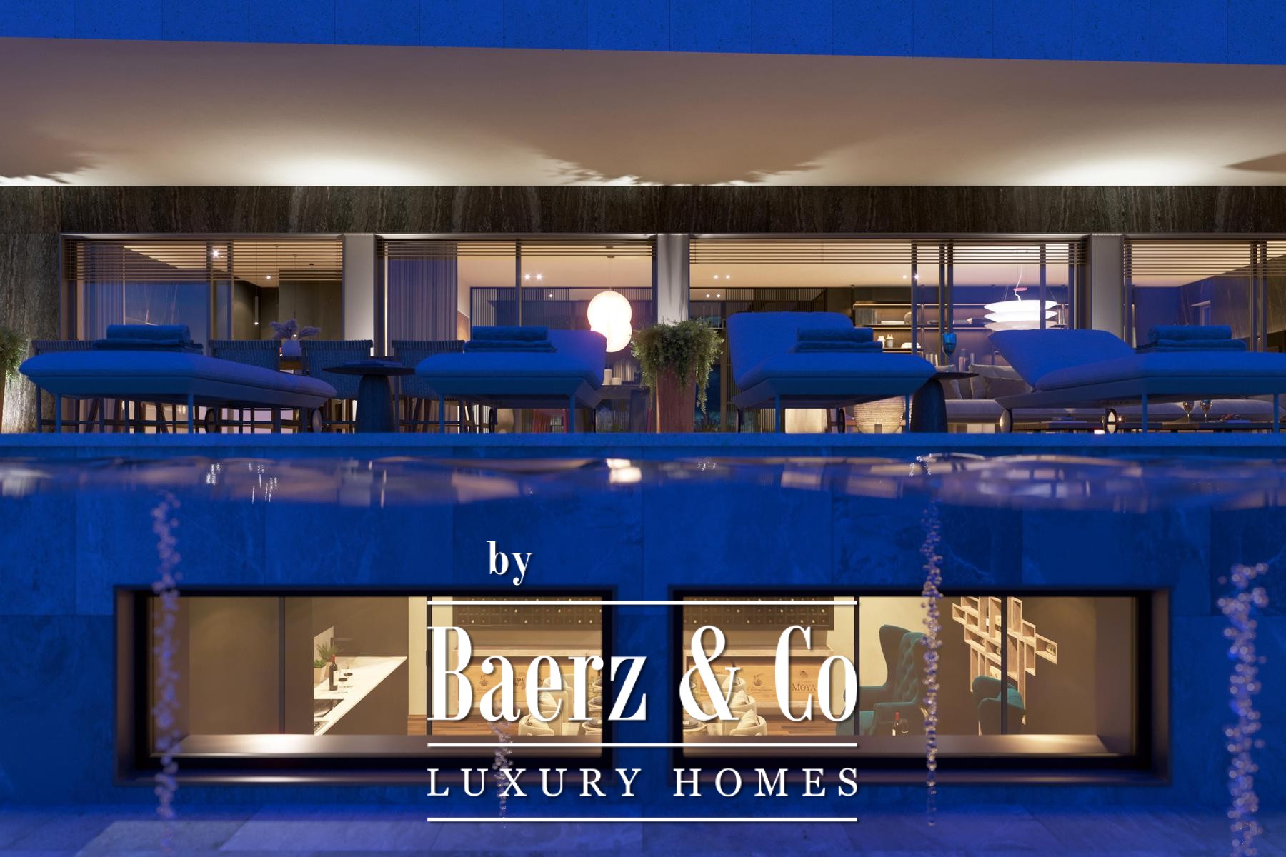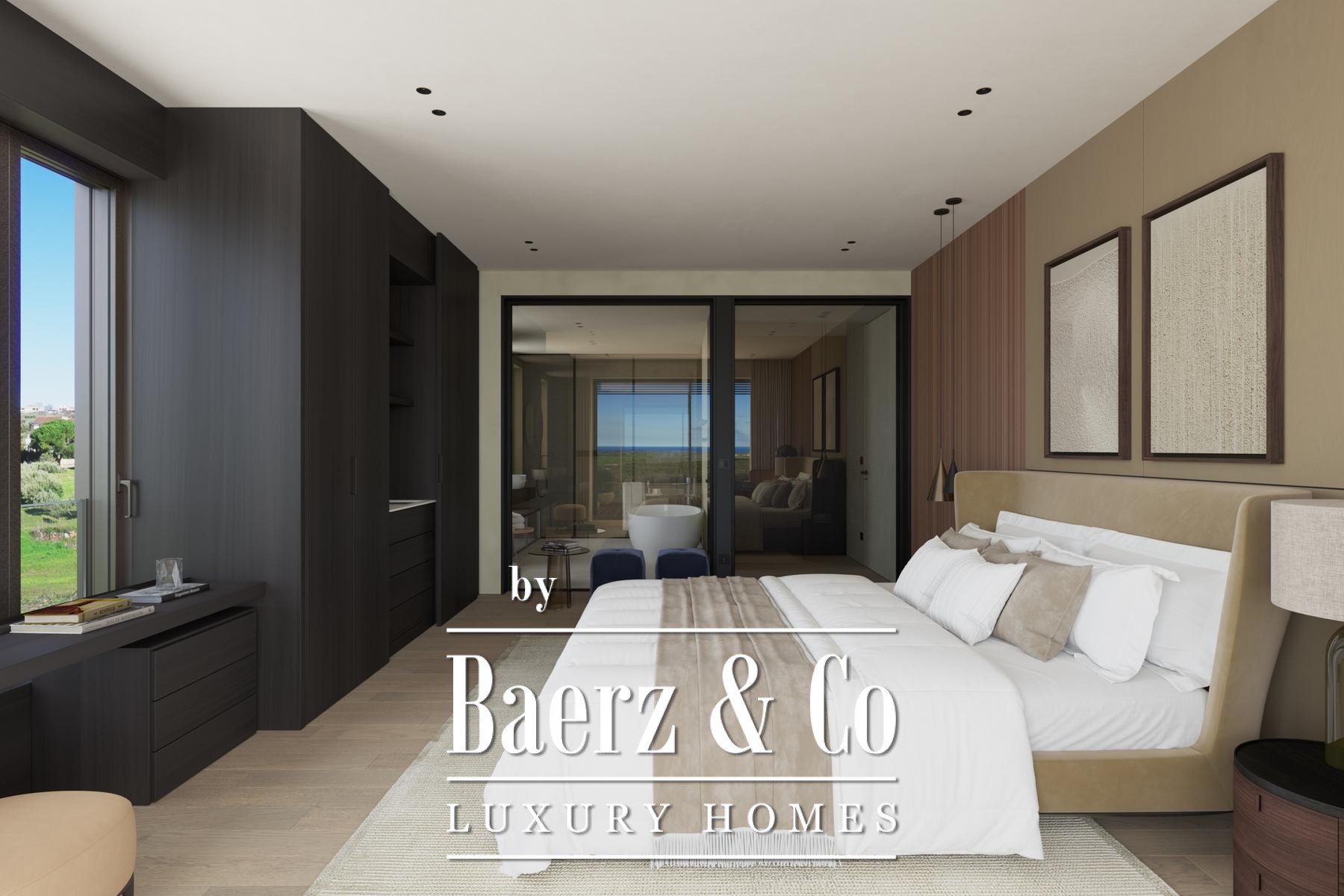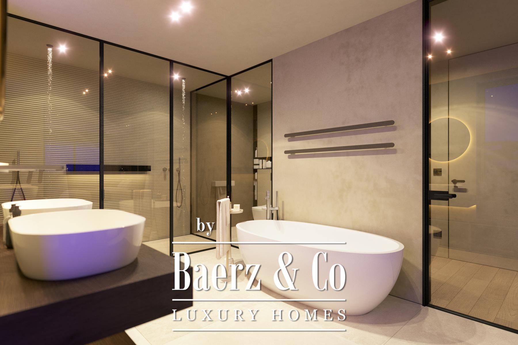 The ground floor introduces a fluid connection between the kitchen, dining, and living spaces. Expansive glass opens onto a covered terrace, sunbathing area, and a 67.04 m² infinity pool. Nearby, a sauna offers a quiet retreat, while the well-proportioned guest spaces remain perfectly suited for refined entertaining.