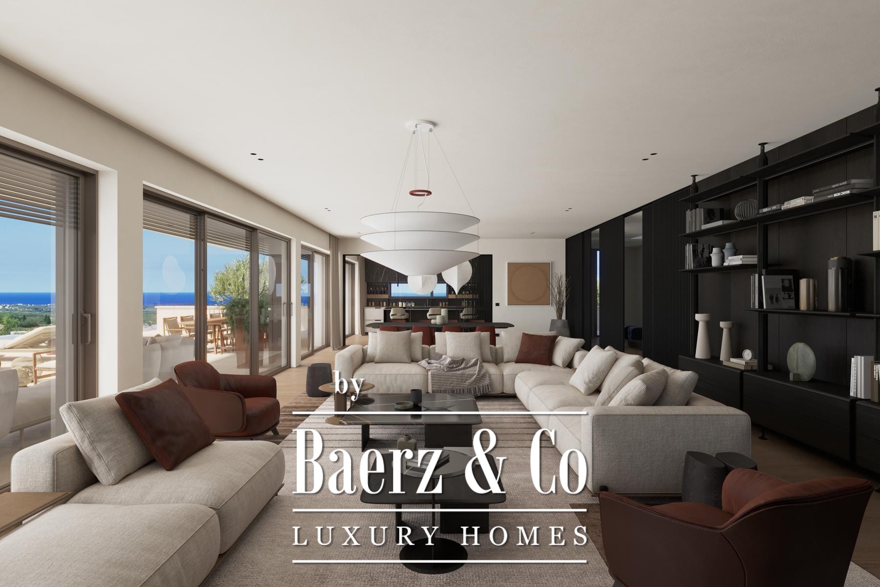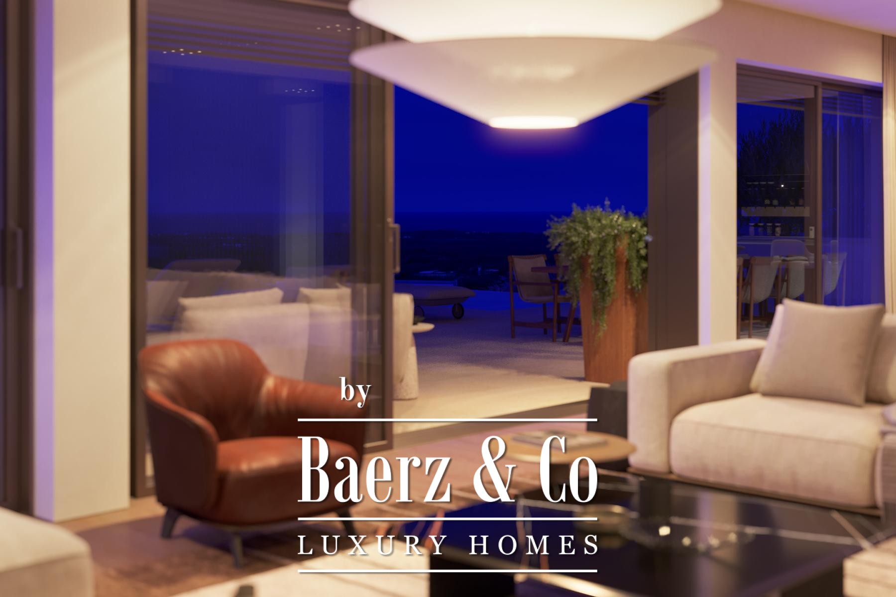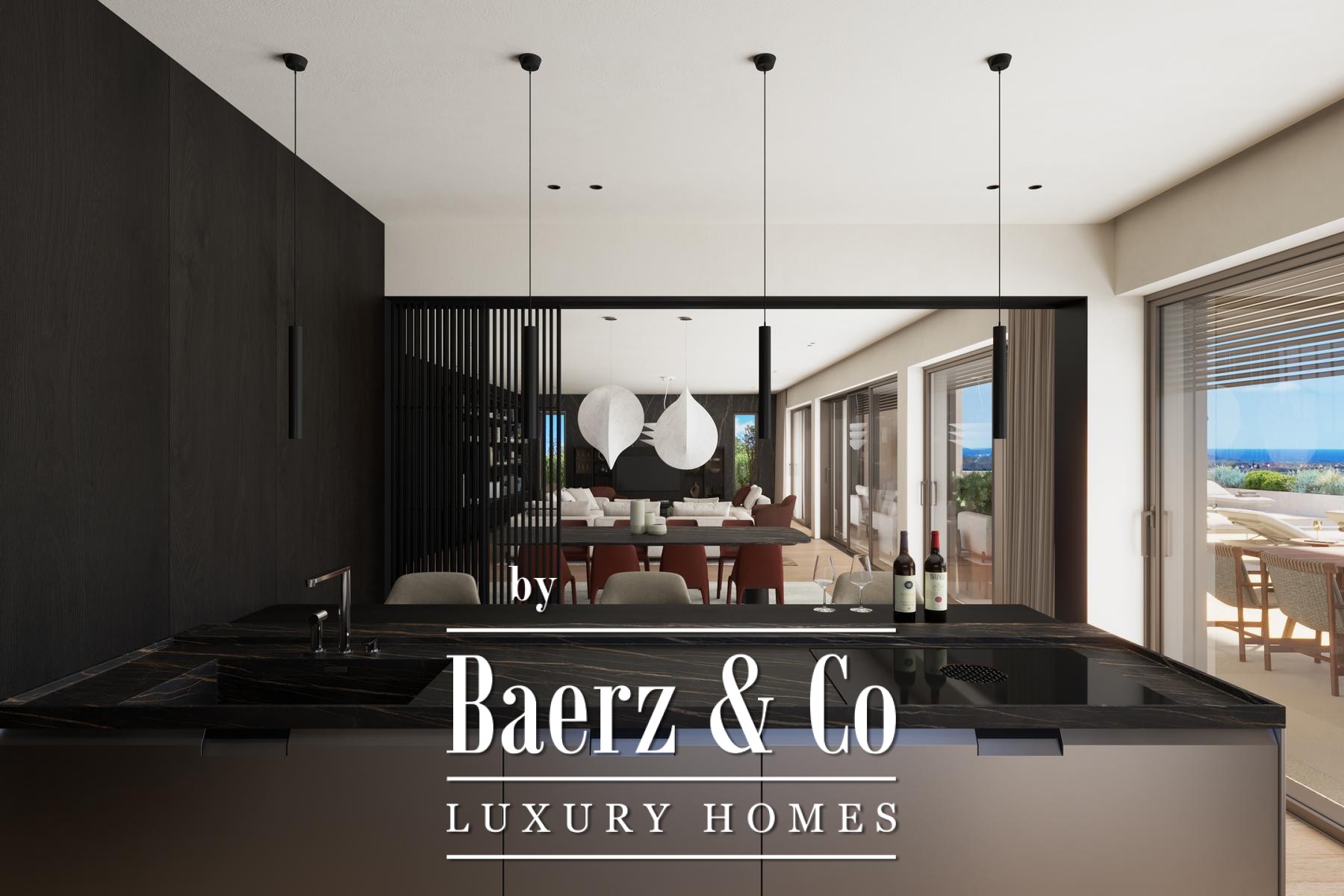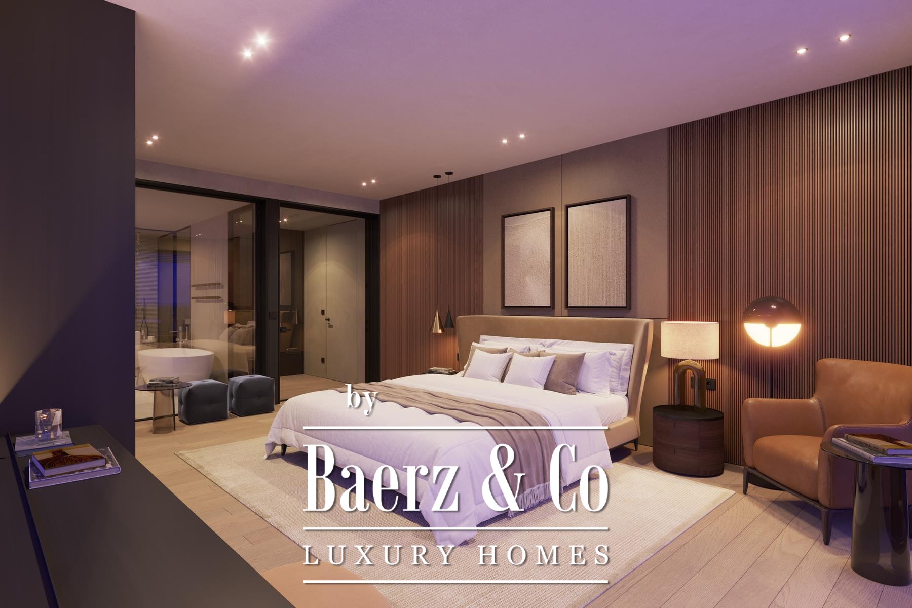 The ground floor introduces a fluid connection between the kitchen, dining, and living spaces. Expansive glass opens onto a covered terrace, sunbathing area, and a 67.04 m² infinity pool. Nearby, a sauna offers a quiet retreat, while the well-proportioned guest spaces remain perfectly suited for refined entertaining.