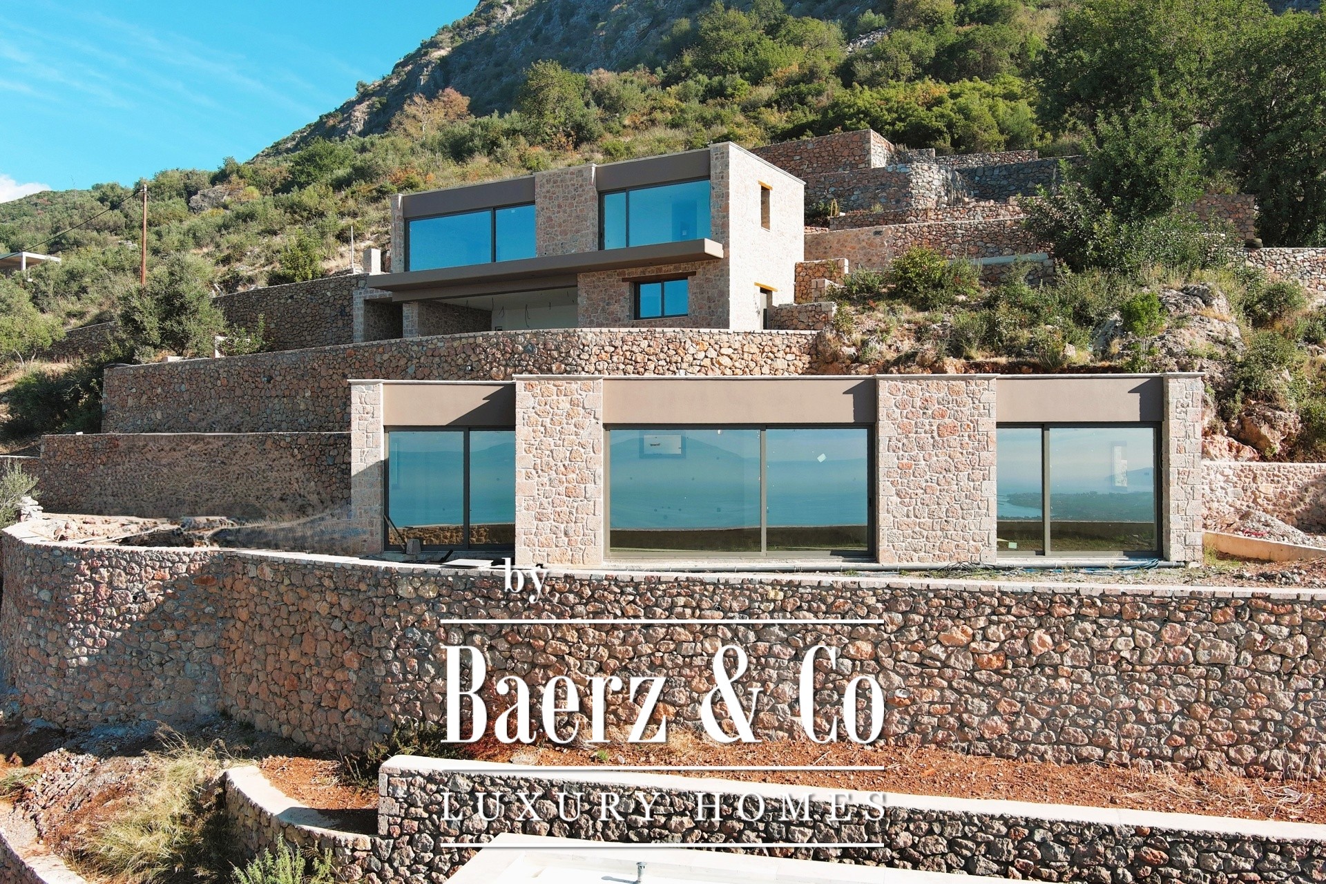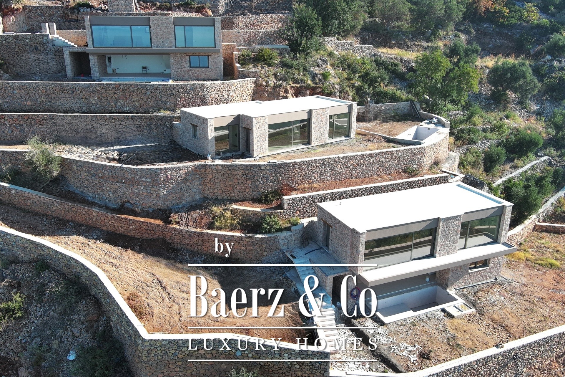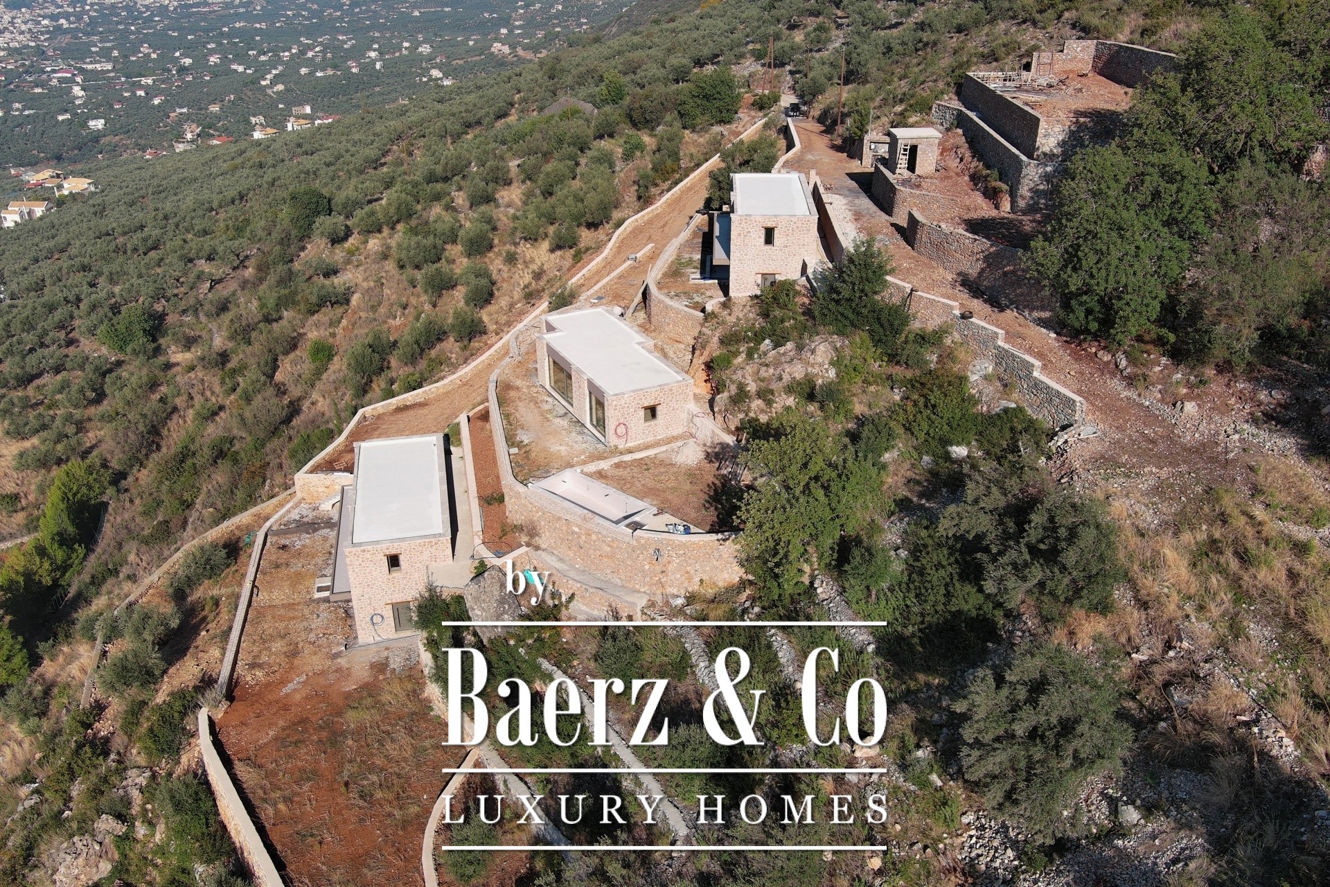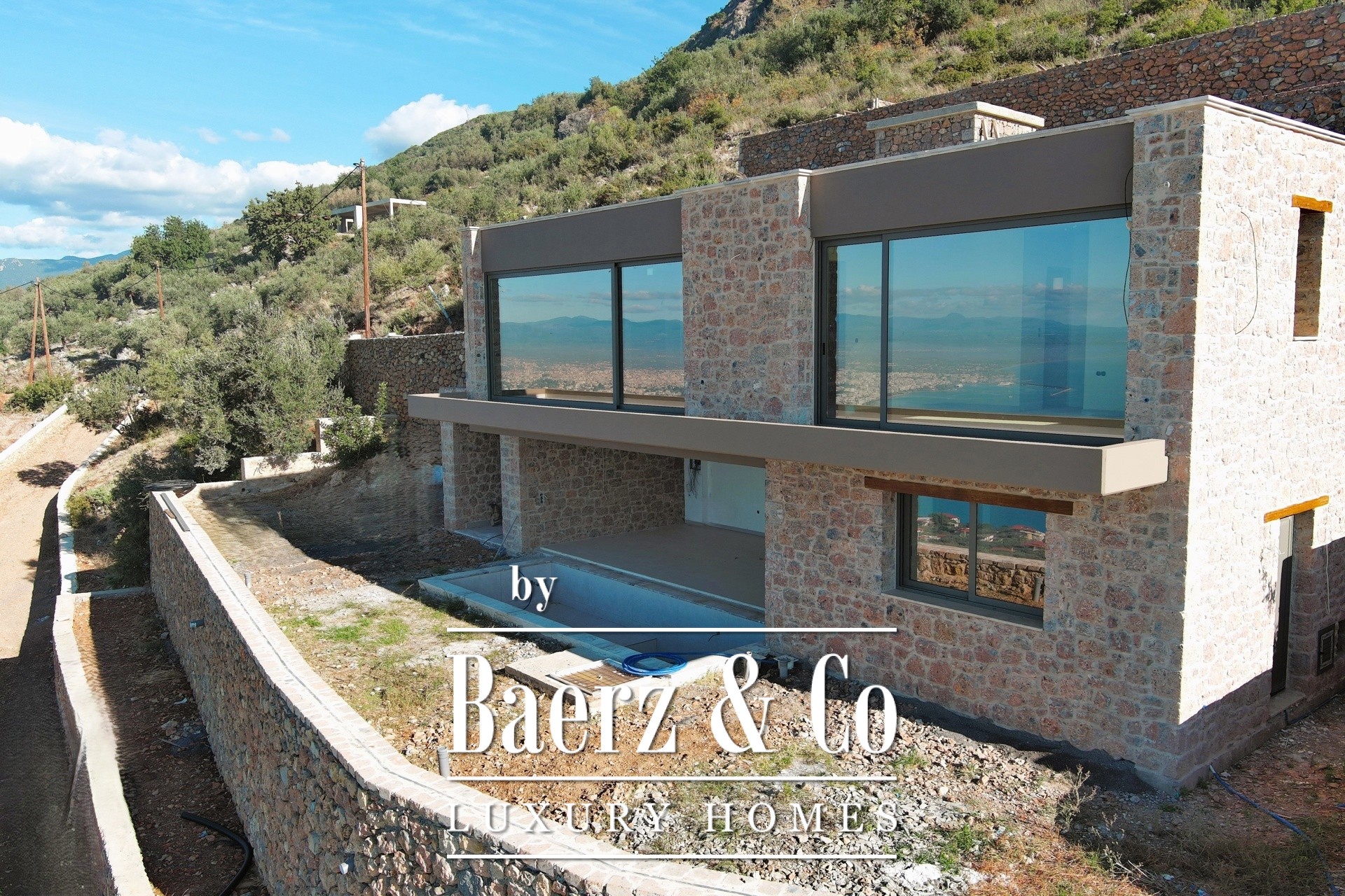 Located in one of the most breathtaking and privileged spots of Verga, Kalamata, within a 6,000 sq.m. plot, lies an exclusive complex of three ultra-luxurious stone-built villas. Two of these stunning residences, each spanning 160 sq.m., are available for sale at a price of €1,000,000 per villa. These newly built villas showcase an exceptional design that harmoniously blends natural stone with modern architecture, offering unparalleled quality and aesthetics that perfectly complement the dramatic landscape of the area. Each villa is spread across two levels. The entrance is on the first floor, where a spacious and bright open-plan living room and kitchen area welcomes you, along with a bedroom and a bathroom. An internal staircase leads to the ground floor, where you will find a second bedroom, another bathroom, and an additional space that can be configured either as a third