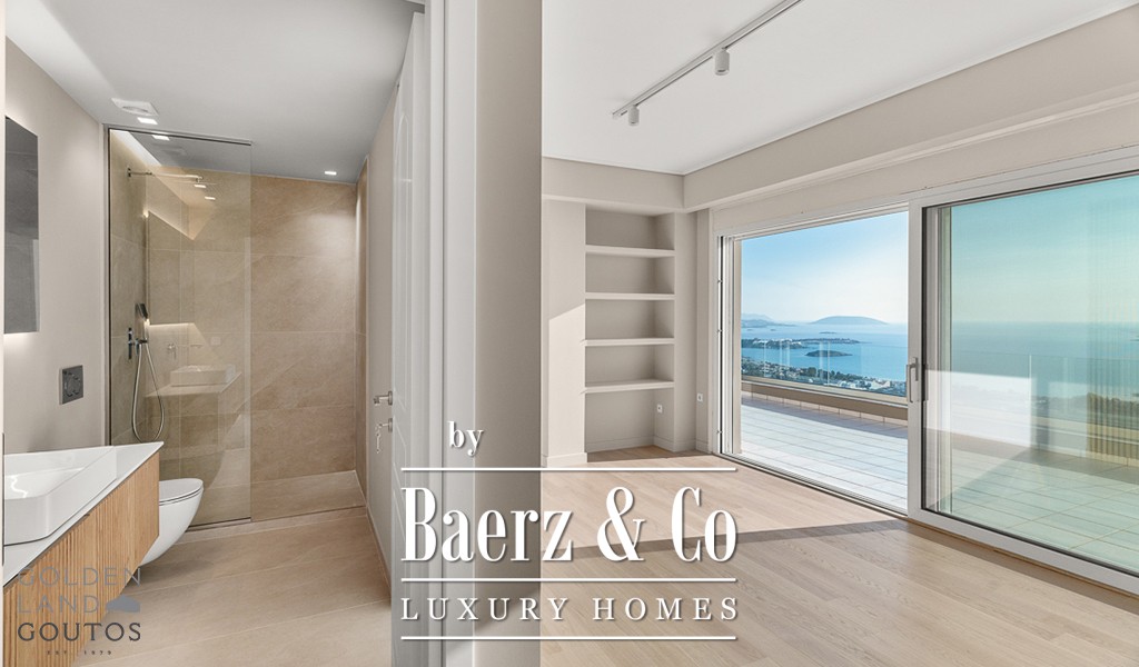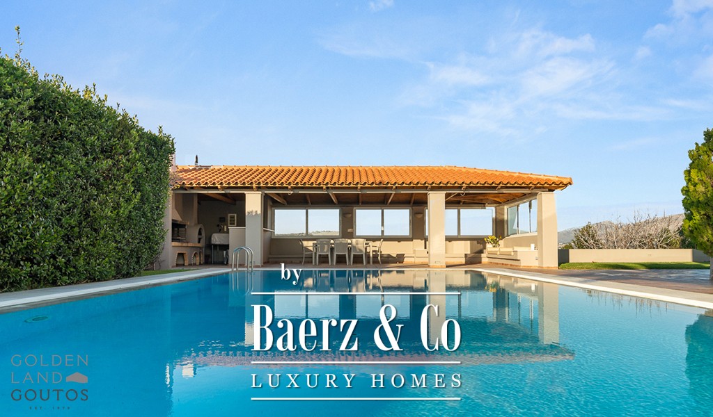 Positioned atop a scenic hill, just , this magnificent villa boasts of the Saronic Bay. The vistas stretch across the crystal-clear waters to the picturesque islands of .