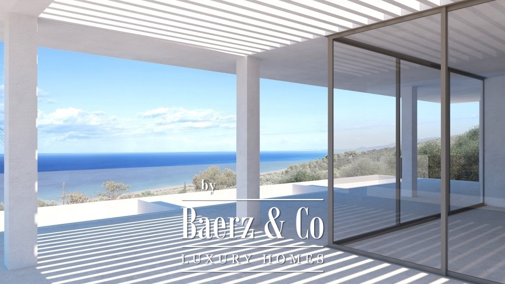 Holiday home. Available for sale a villa of unique beauty and construction with unobstructed sea and sunset views. It is a property with a total area of 349,90 sq.m. which will be built on a plot of approximately 2.000 sq.m. offering privacy and located in a unique location close to a NATURA zone. It will be made available to its owner fully finished with high quality materials and will have every provision for a comfortable and complete living. In total it consists of three levels of which one will be exclusively a living room, kitchen and a small WC with a total area of 50 sq.m. and a fireplace. From this area there is access to a very large terrace of 110 sq.m. which can offer moments of relaxation and tranquility while enjoying the endless blue. On a lower level which is accessed via an internal staircase we find another living room and the bedrooms of the villa. In total it consists
