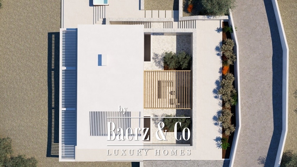 of three bedrooms, three bathrooms and a WC, while one of the bedrooms is master equipped with a walk-in closet. From this level we have access to the exceptional beauty of the outdoor area of the villa where there is an outdoor sitting area in a paved courtyard of 100 sqm, a swimming pool of 40 sqm and a BBQ area of 30 sqm with pergola. Finally, the lower level of the property will include a recreational area which will include a playroom, gym, sauna, steam room, changing rooms, storage space and sanitary facilities. Externally, there will be a lawn and ample parking space. Finally, the owner of the villa will have free access to two tennis courts which are to be built nearby. This is a unique property which meets every requirement for a permanent residence as well as for a holiday home as it combines luxury, privacy, tranquility, comfort and functionality. New construction.
