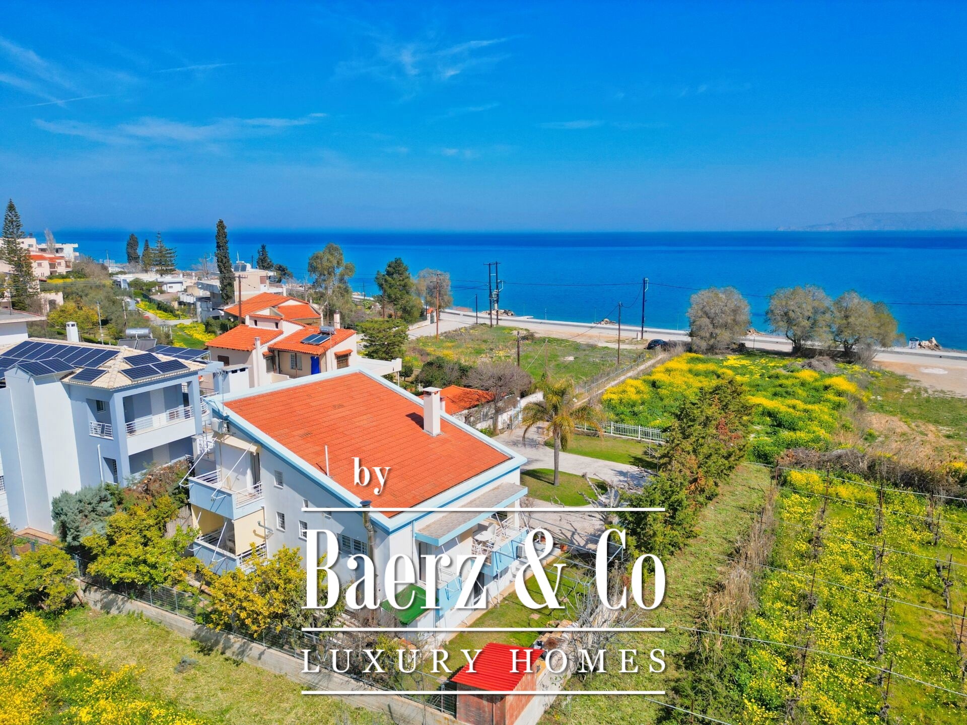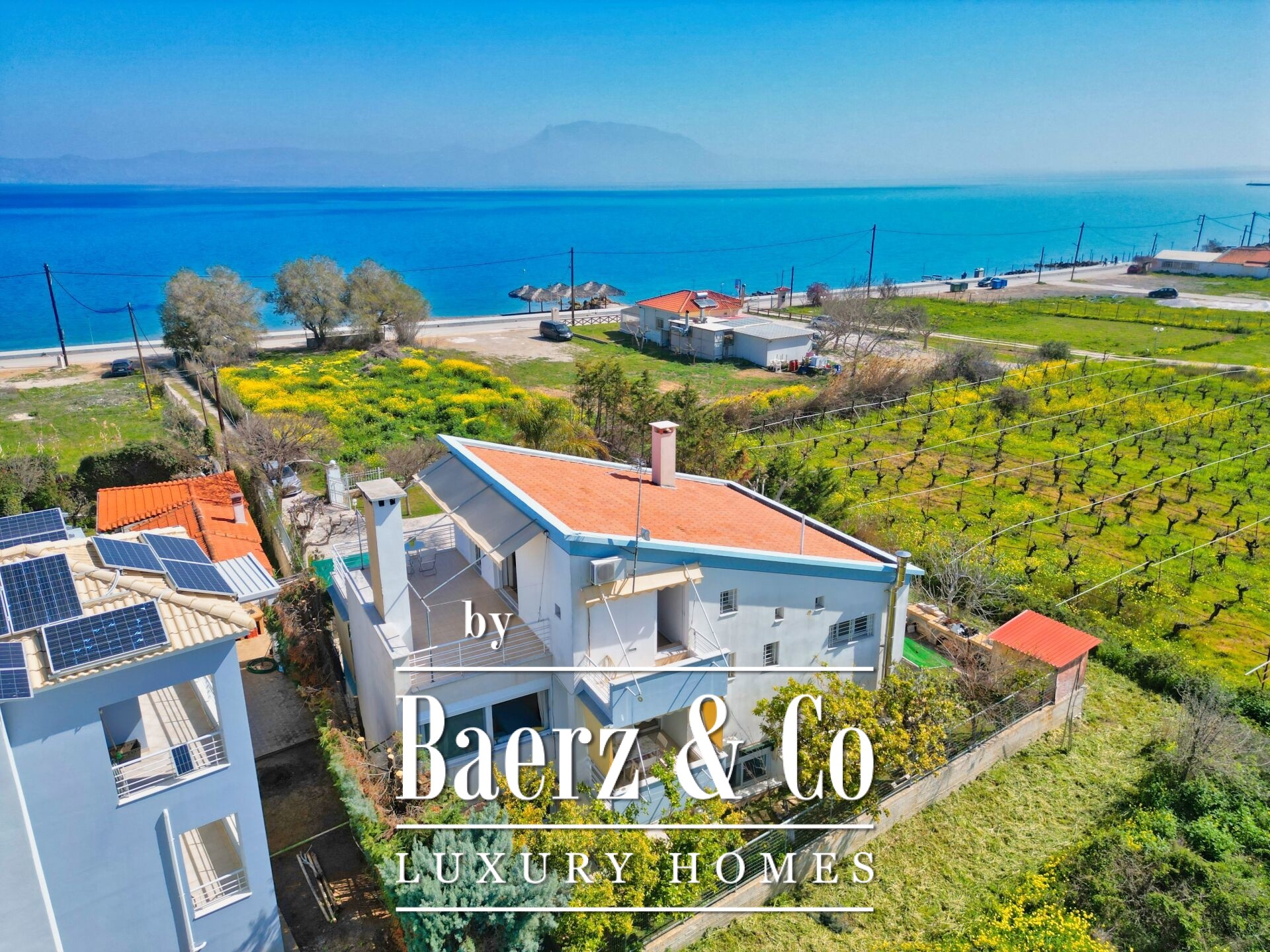 Discover this unique villa for sale in the area of Velo - Kokoni, which combines comfort with luxury and the ideal location by the sea. The property, with a total area of 200 sq.m., is situated on a 650 sq.m. plot and is spread across three levels, offering many possibilities for both family and professional use. It consists of four bedrooms, one of which is a master, and features four bathrooms, two WCs, and three fully equipped kitchens, perfect for every need. The residence also includes three open-air parking spaces and was constructed in 2007 with exceptional quality. The heating is autonomous with oil, and the property has radiators, air conditioning, aluminum frames with double glazing, and an energy performance certificate of class D. The condition of the property is excellent, and the interior spaces are bright and airy. Its northeast orientation offers unobstructed views of the sea and the open landscape. It is located in a quiet neighborhood, just 30 meters from the beach, and close to entertainment centers, making it ideal for both vacation or permanent living.