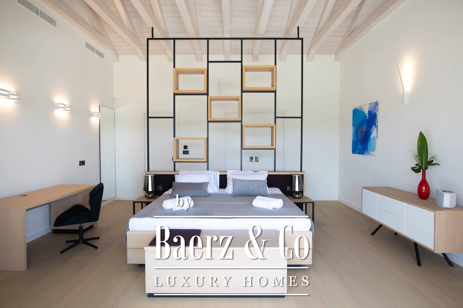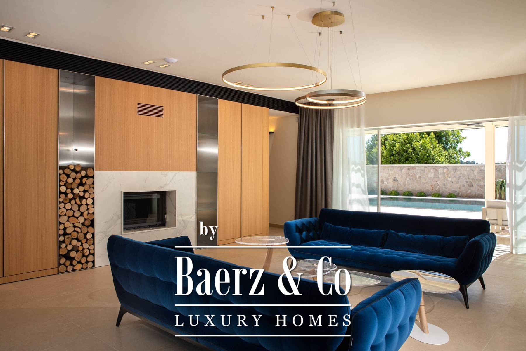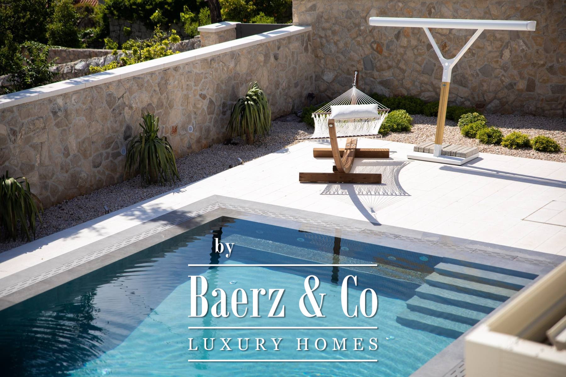 Villa B spans 375 m² over a similar three-level layout, complementing the estate with an additional three bedrooms and private retreats. Altogether, the estate offers seven bedrooms and seven bathrooms. Outdoor amenities include a swimming pool set amidst landscaped grounds. The pace of life here is attuned to the rhythm of the sea and the enduring elegance of the Adriatic.