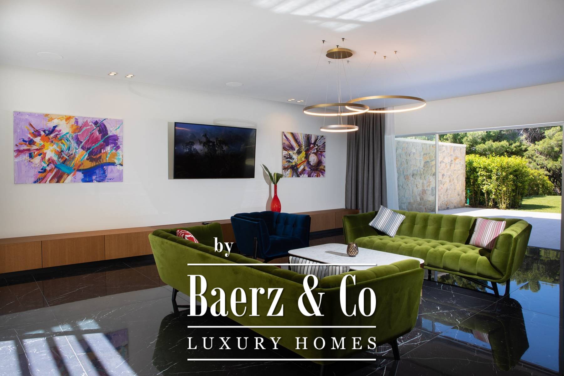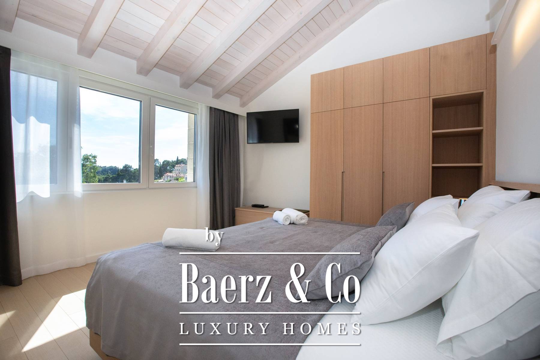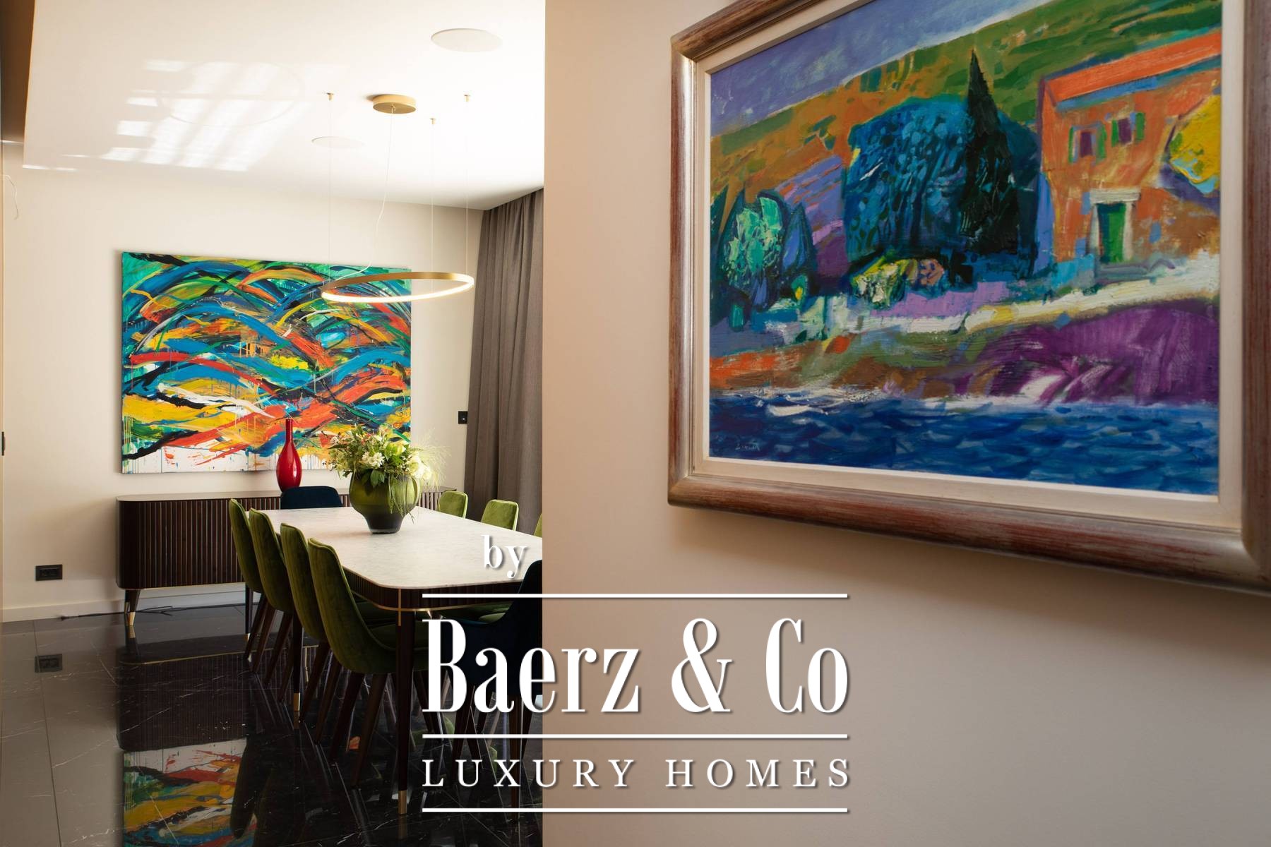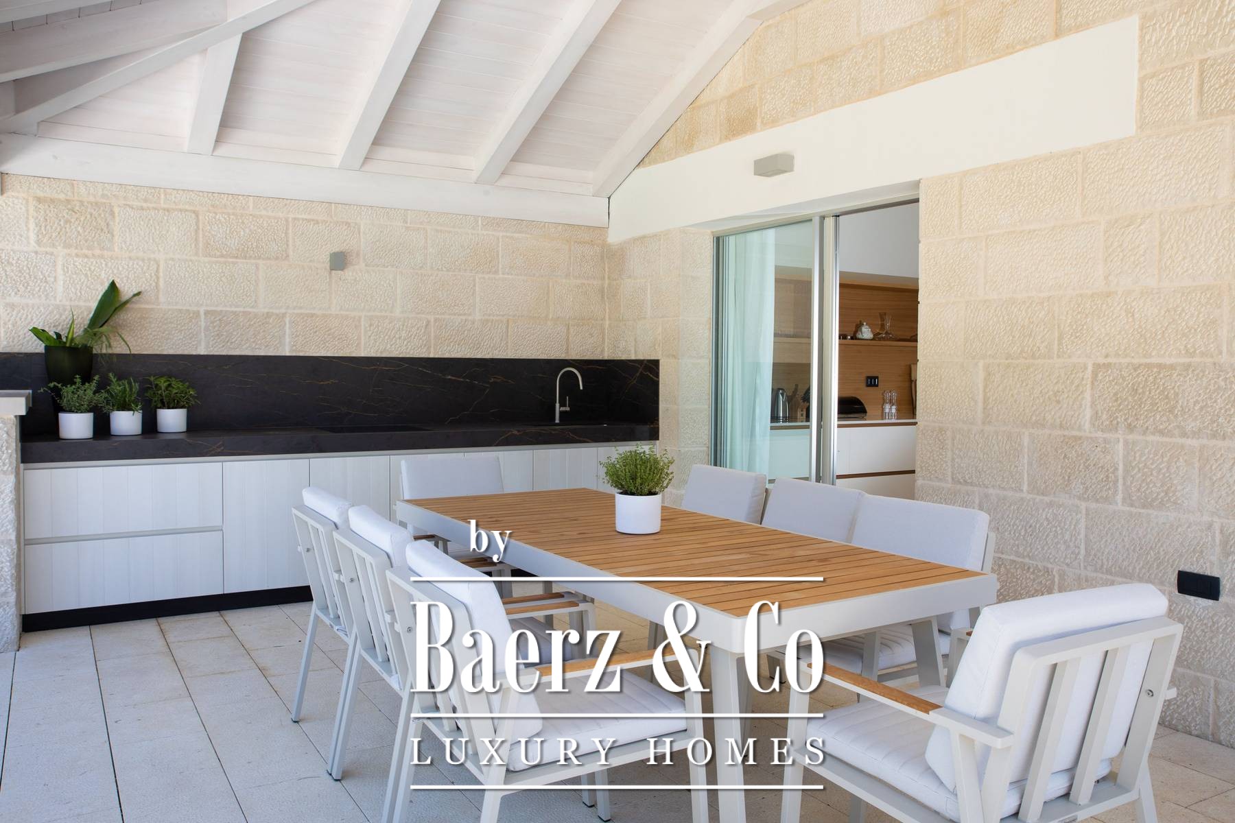 Villa B spans 375 m² over a similar three-level layout, complementing the estate with an additional three bedrooms and private retreats. Altogether, the estate offers seven bedrooms and seven bathrooms. Outdoor amenities include a swimming pool set amidst landscaped grounds. The pace of life here is attuned to the rhythm of the sea and the enduring elegance of the Adriatic.
