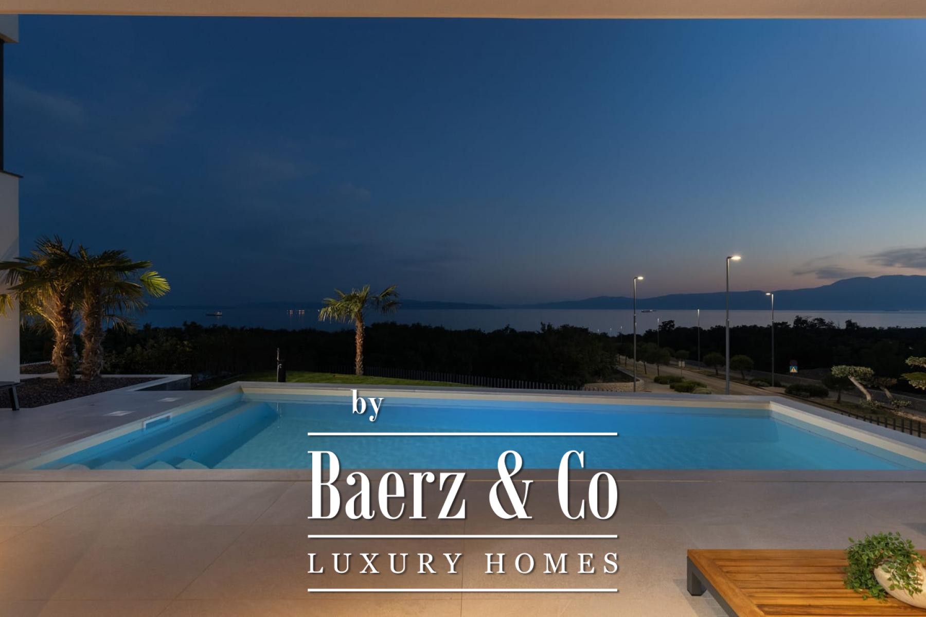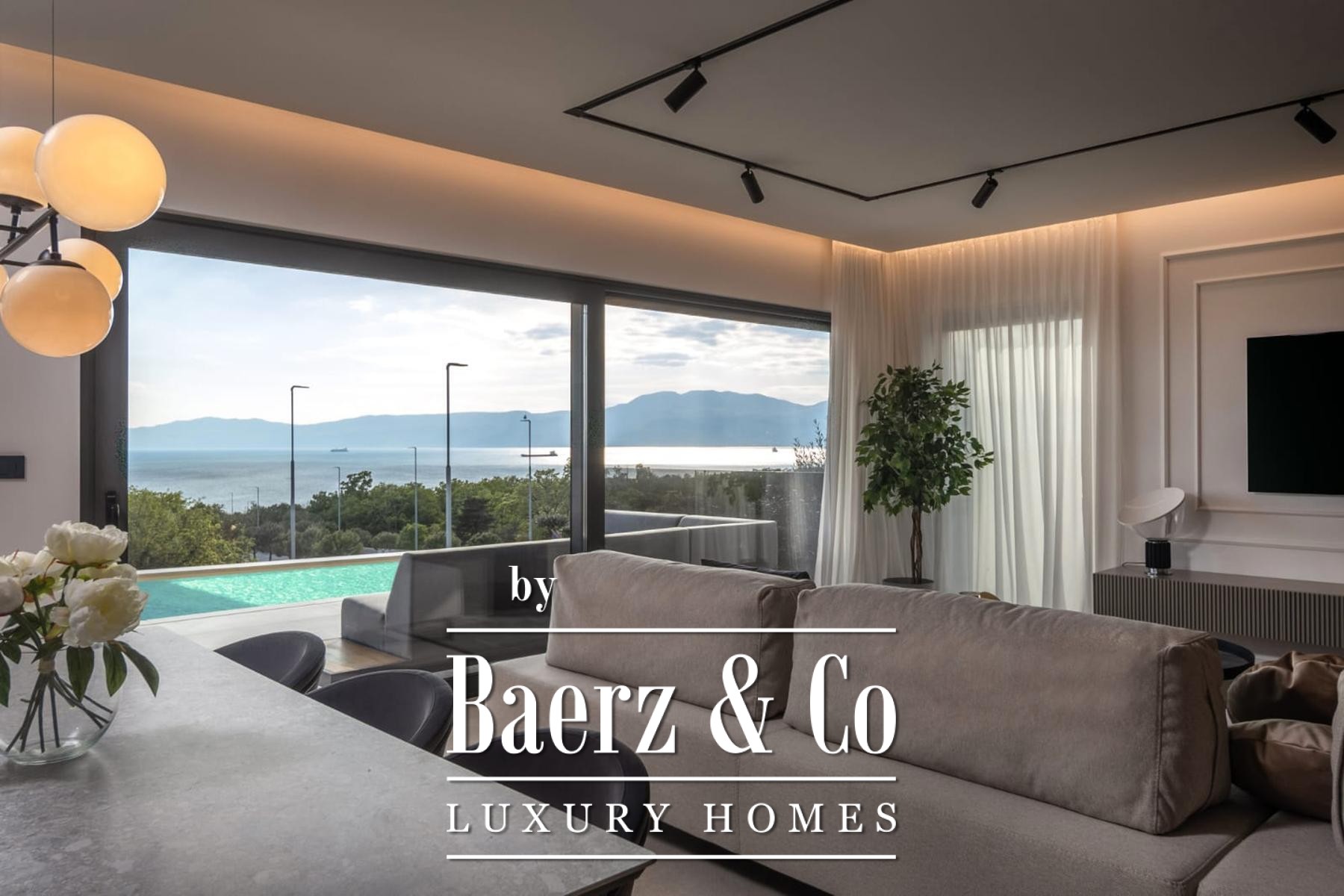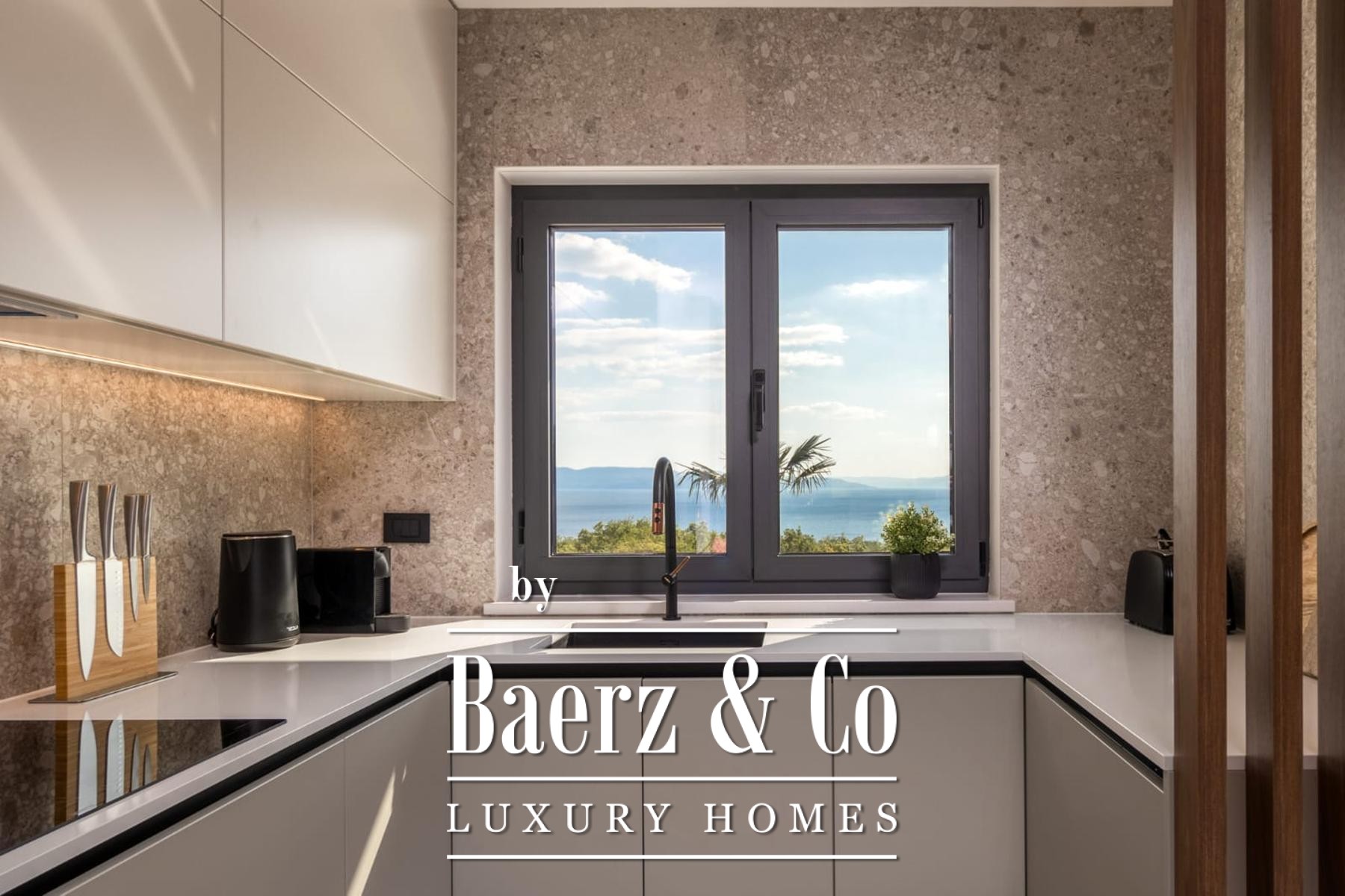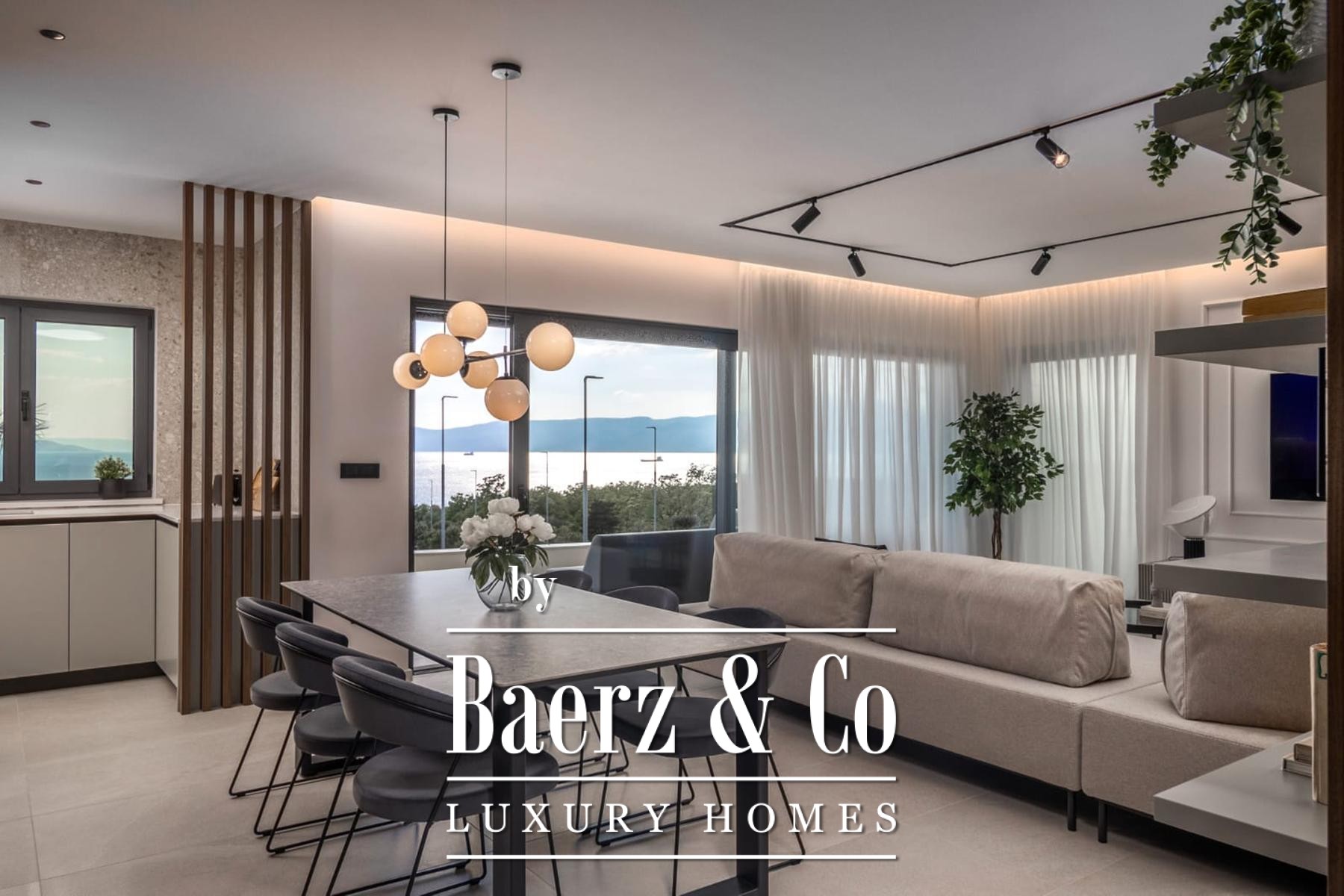 Apartment Kostrena presents an elevated approach to contemporary living, balancing a panoramic sea view with the poise of a modern layout. This ground-floor residence spans 134m² and features three bedrooms and three bathrooms, forming a rhythm of privacy and communal openness. The main living area flows into a kitchen and dining space, opening onto a terrace with a private pool, sunbathing area, and lounge furniture, offering an uninterrupted vista of the Adriatic.
