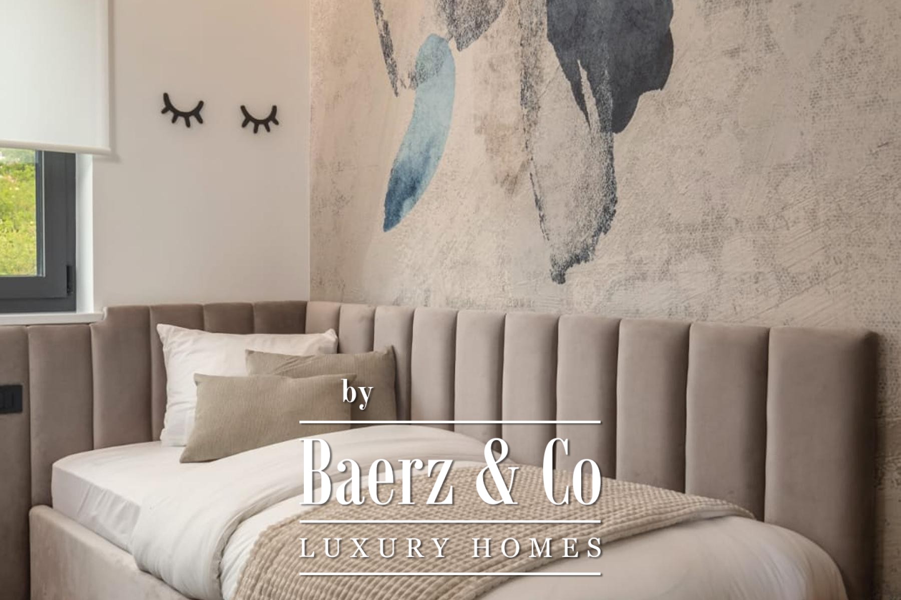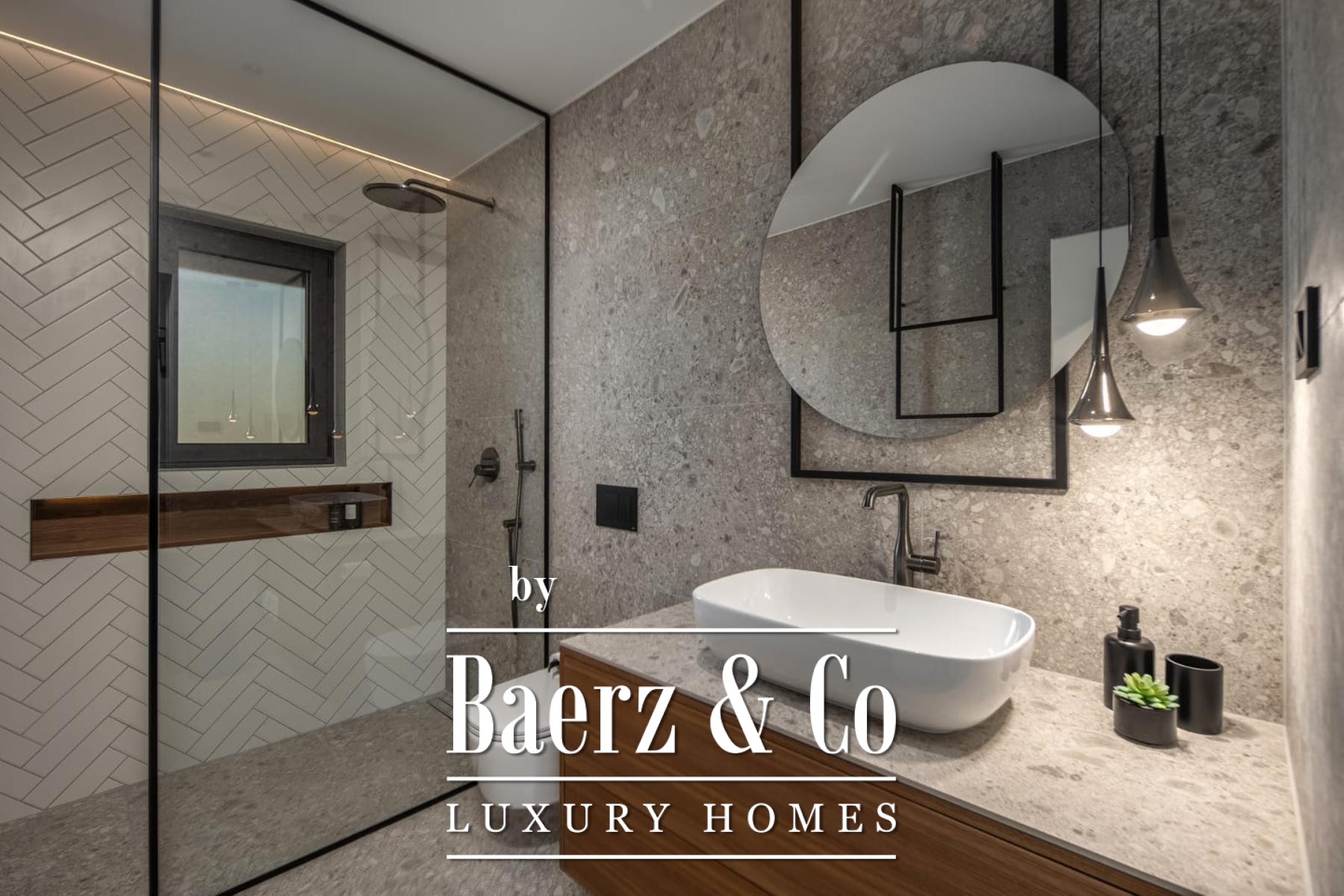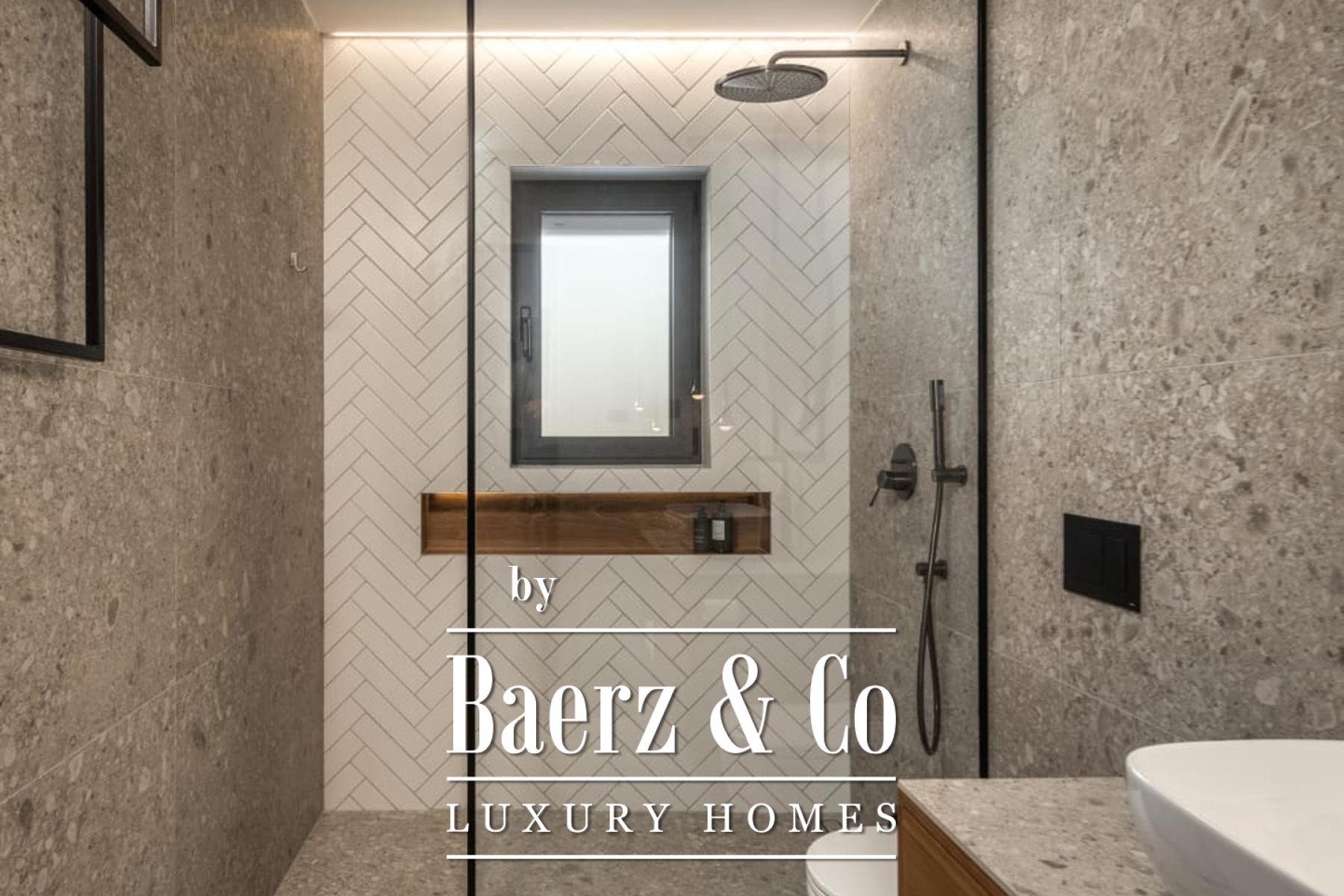Luxury designer furnishings enhance every room, while the apartment’s smart system ensures comfort through fan-coil heating and cooling, complemented by alarm and video surveillance for peace of mind. A private garden with an outdoor shower embodies intelligent use of space. The apartment includes a 12.5m² garage, 6m² basement storage, and an additional outdoor parking space.