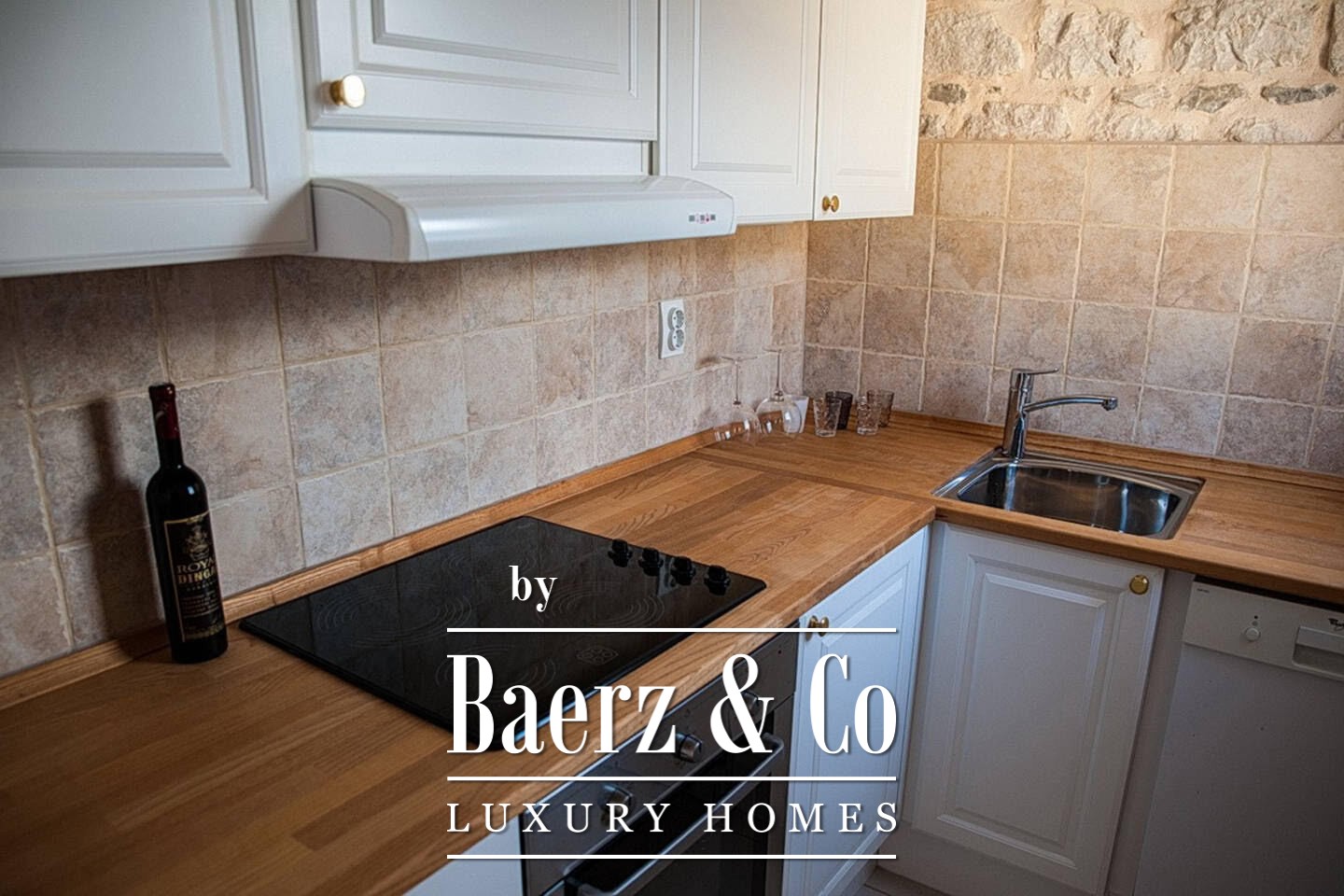 Structure of the apartment: a hallway, a living room with kitchen and dining table, a bedroom, a bathroom and a terrace. It also has a shared 100m2 terrace. The apartment has a panoramic view of the sea, Boka Bay and the mountains that surround it. It is fully furnished and ready to move in.