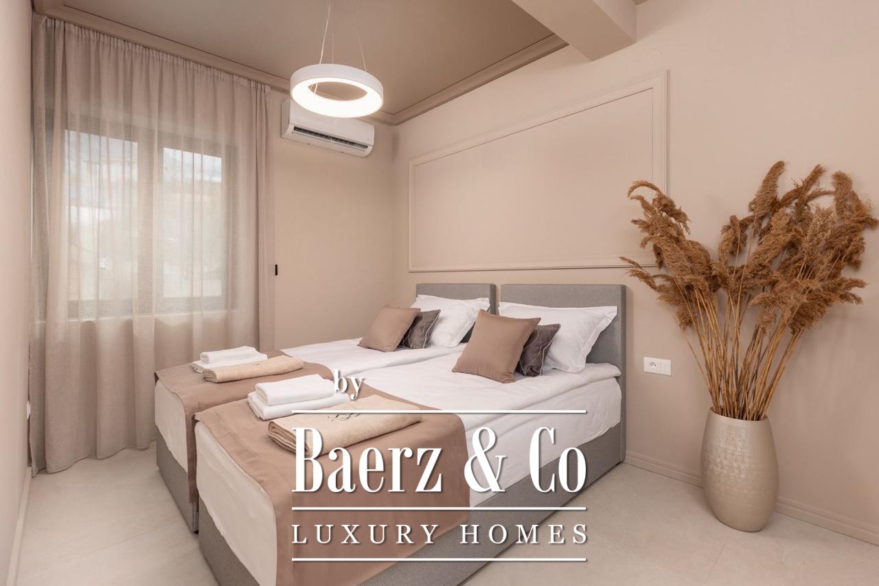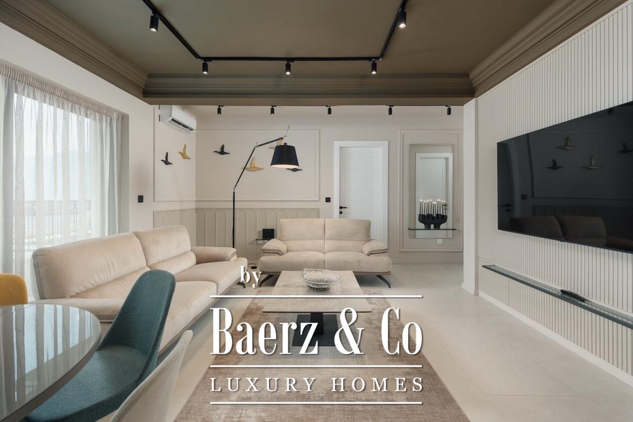 Structure of the apartment: hallway, 3 bedrooms, a bathroom, a toilet, 2 terraces, a green terrace and a pool. The apartment has a panoramic sea view and the view of the mountains that surround it. It is fully furnished and ready for moving in.